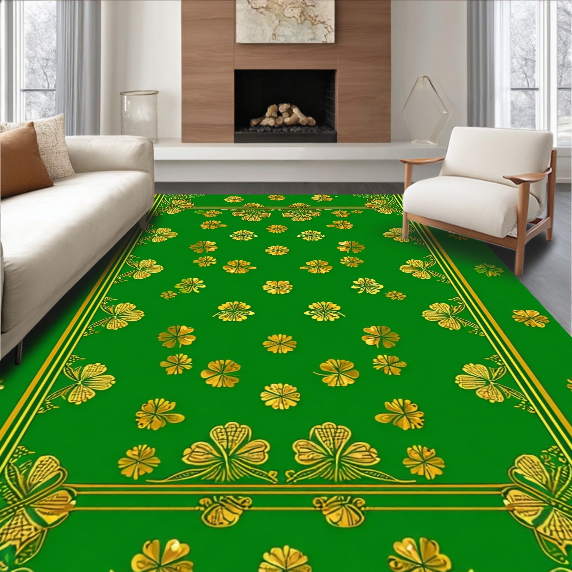Flatwoven High Traffic Area Rug, Charming Rustic Motif, Non Slip, Stain Resistant, Washable Area Rugs for Living Room, Bedroom (Green) Overview: