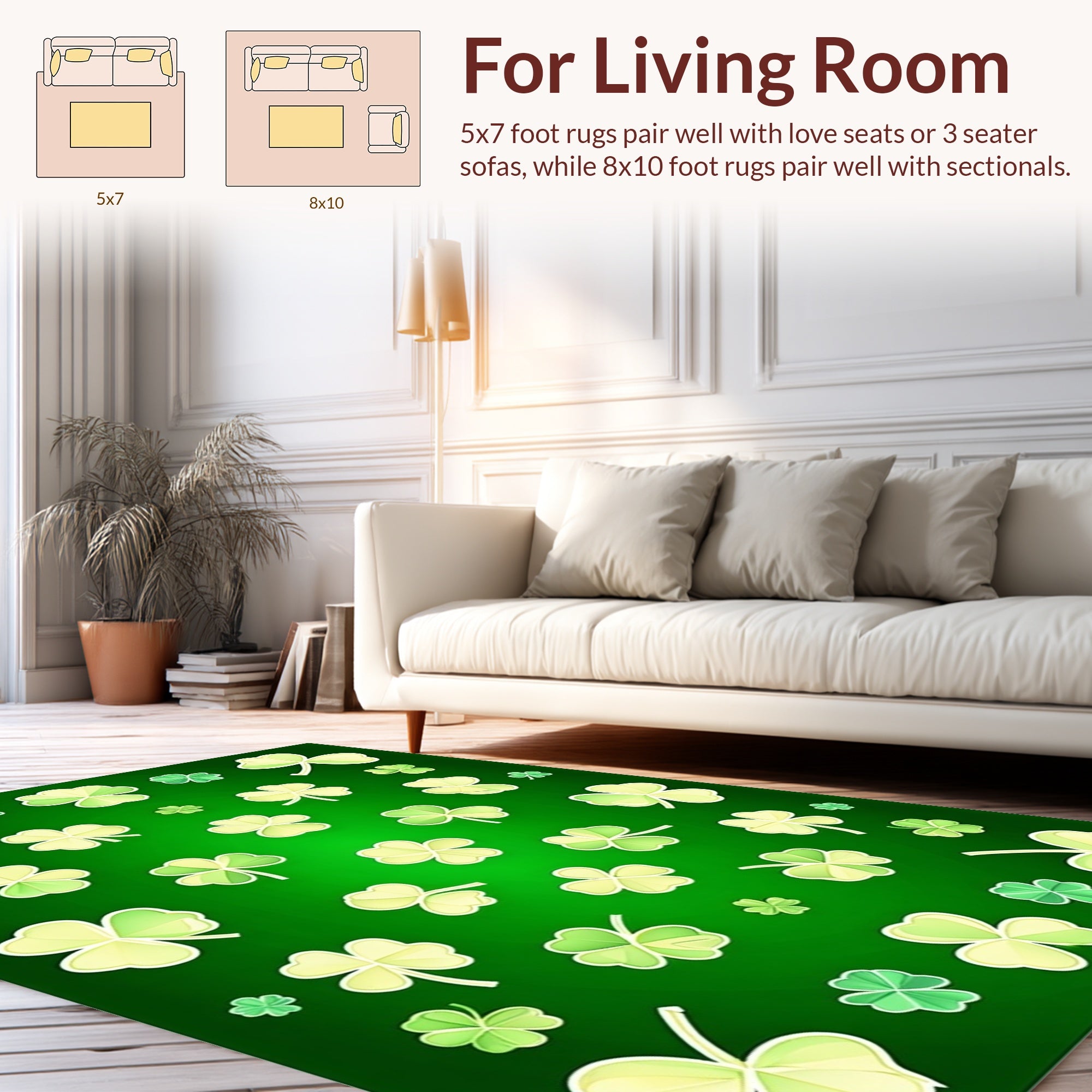 Flatwoven High Traffic Area Rug, Charming Rustic Shamrock Motif, Non Slip, Stain Resistant, Washable Area Rugs for Living Room, Bedroom (Green) Overview: