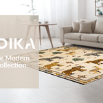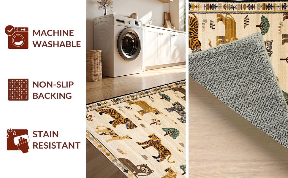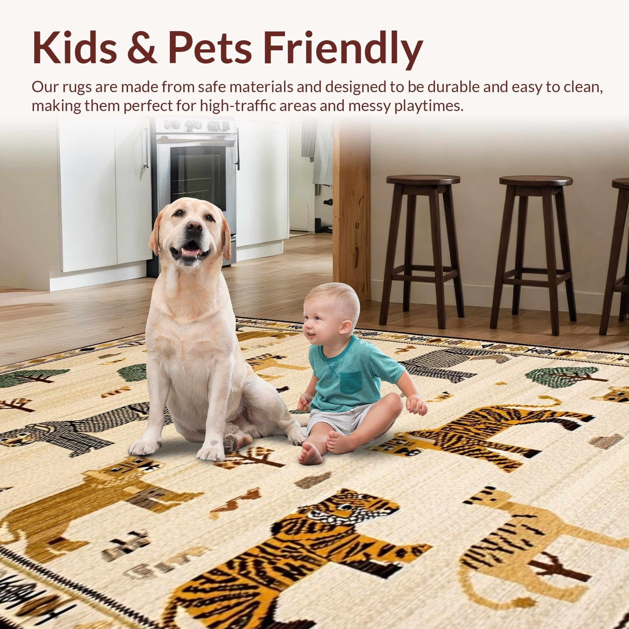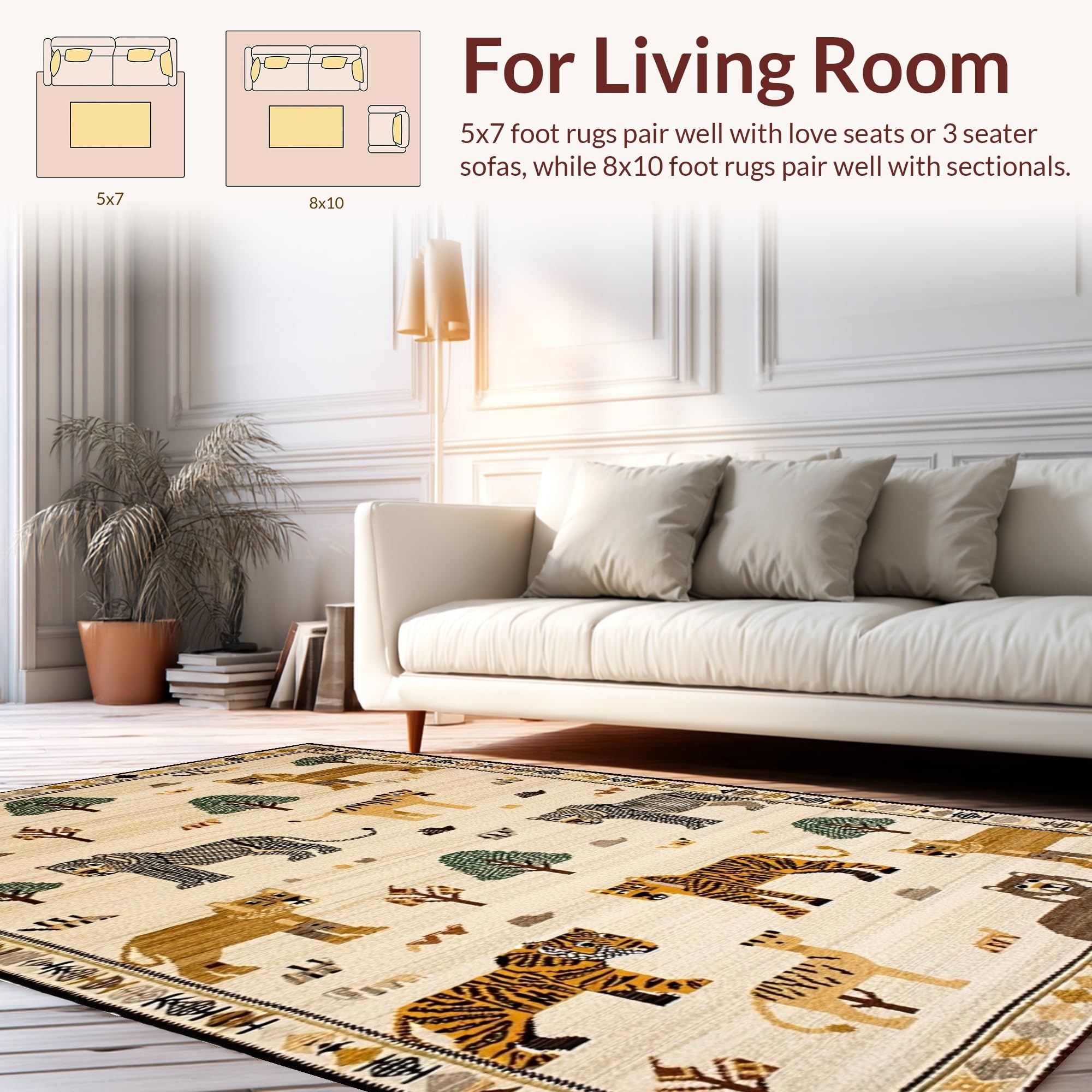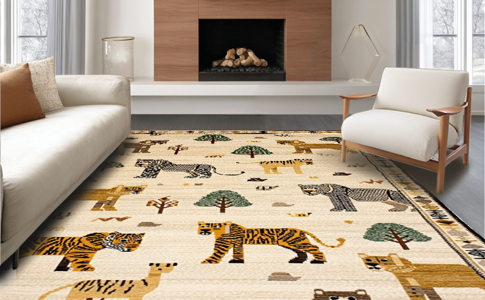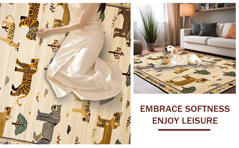 Ultra Soft Area Rug, Non Slip, Stain Resistant, Washable Area Rugs for Living Room, Bedroom, Charming Safari Character Patterns(Beige) Overview: