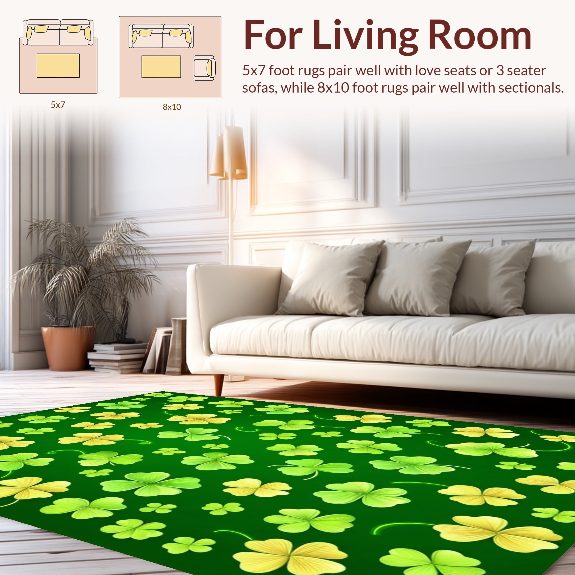 Flatwoven High Traffic Area Rug, Charming Seasonal Welcome Design, Non Slip, Stain Resistant, Washable Area Rugs for Living Room, Bedroom (Green) Overview: