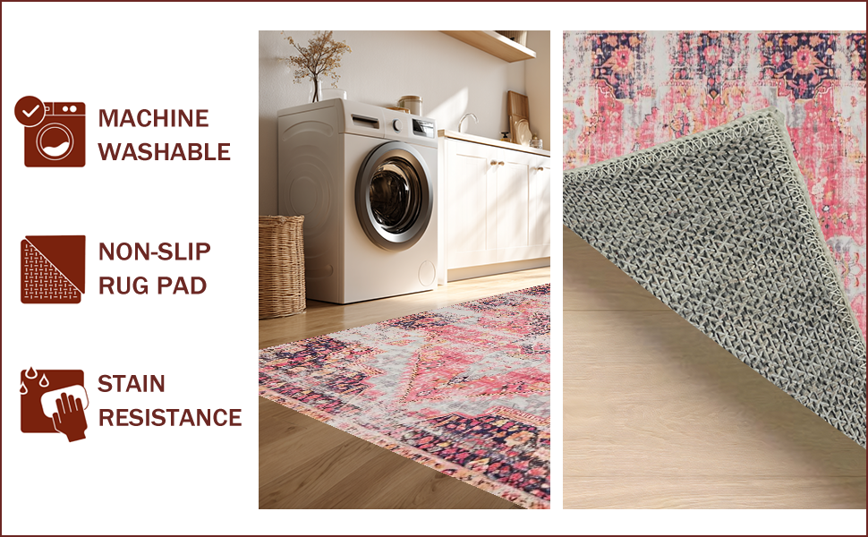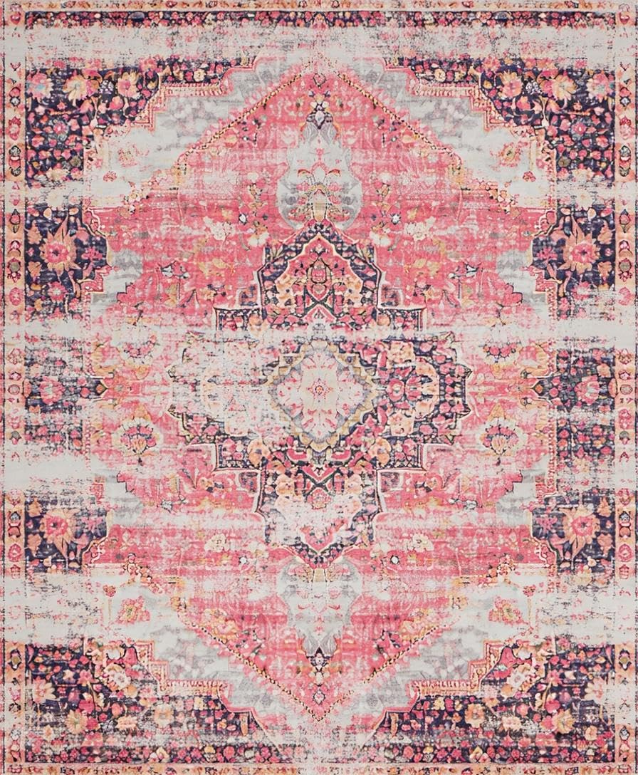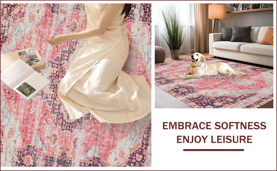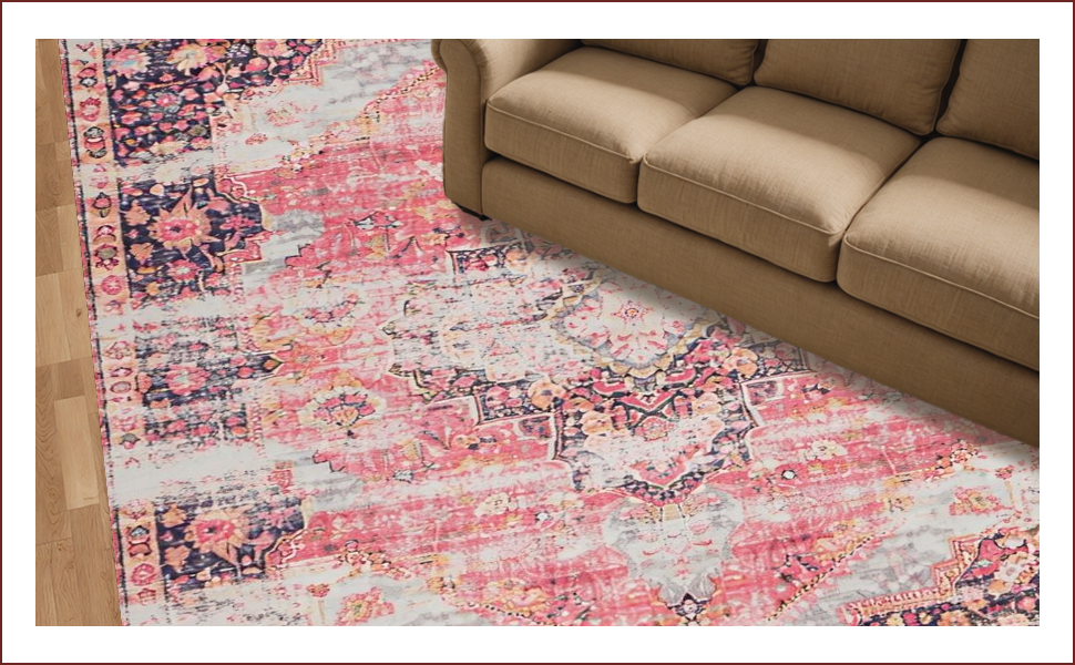 Ultra Soft Area Rug, Non Slip, Stain Resistant, Washable Area Rugs for Living Room, Bedroom, Charming Soft Pink Distressed Pattern(Pink) Overview:
