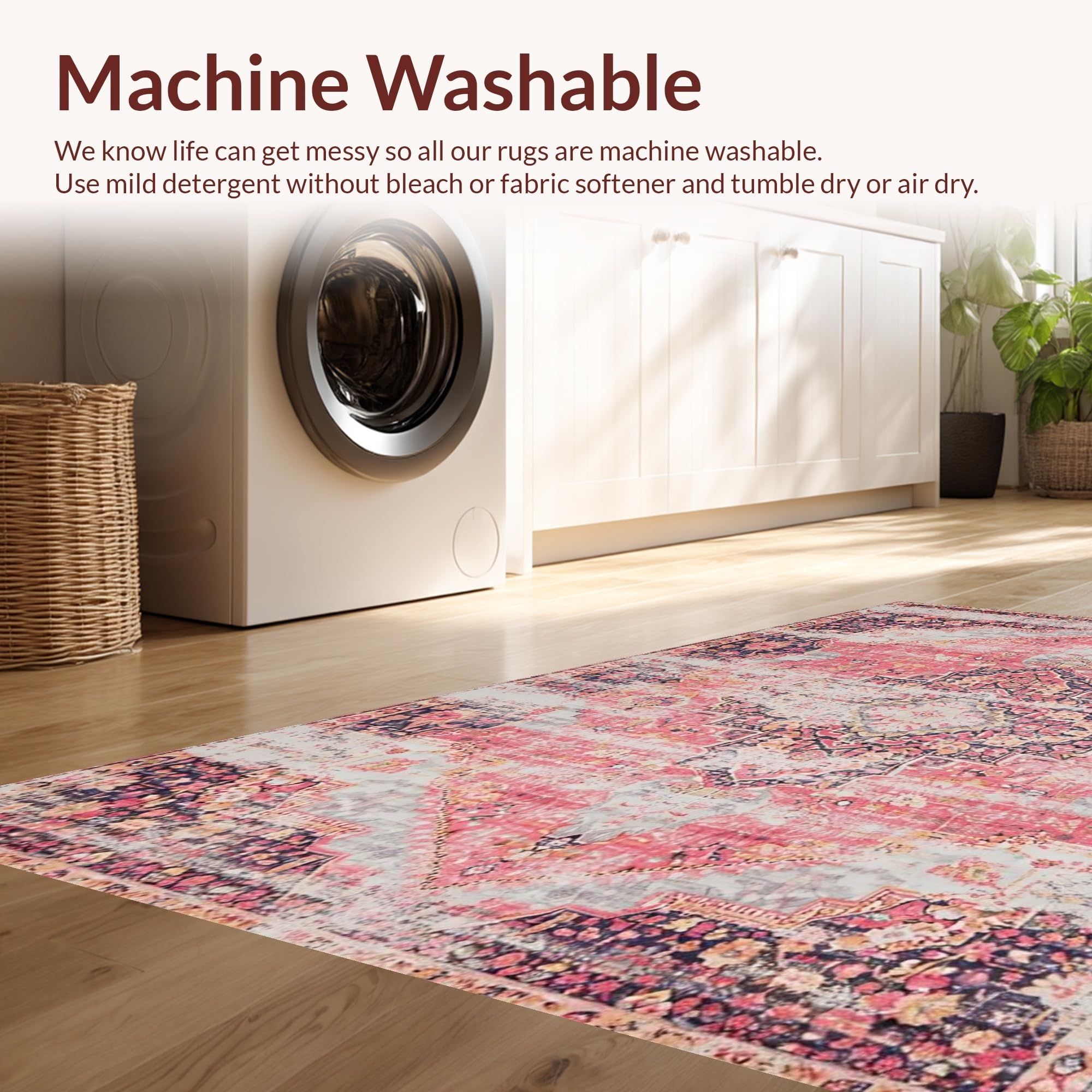 - Machine Washable: Our rugs can be easily thrown in the wash machine.