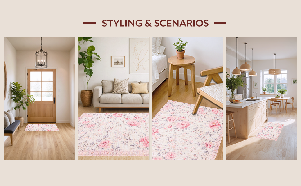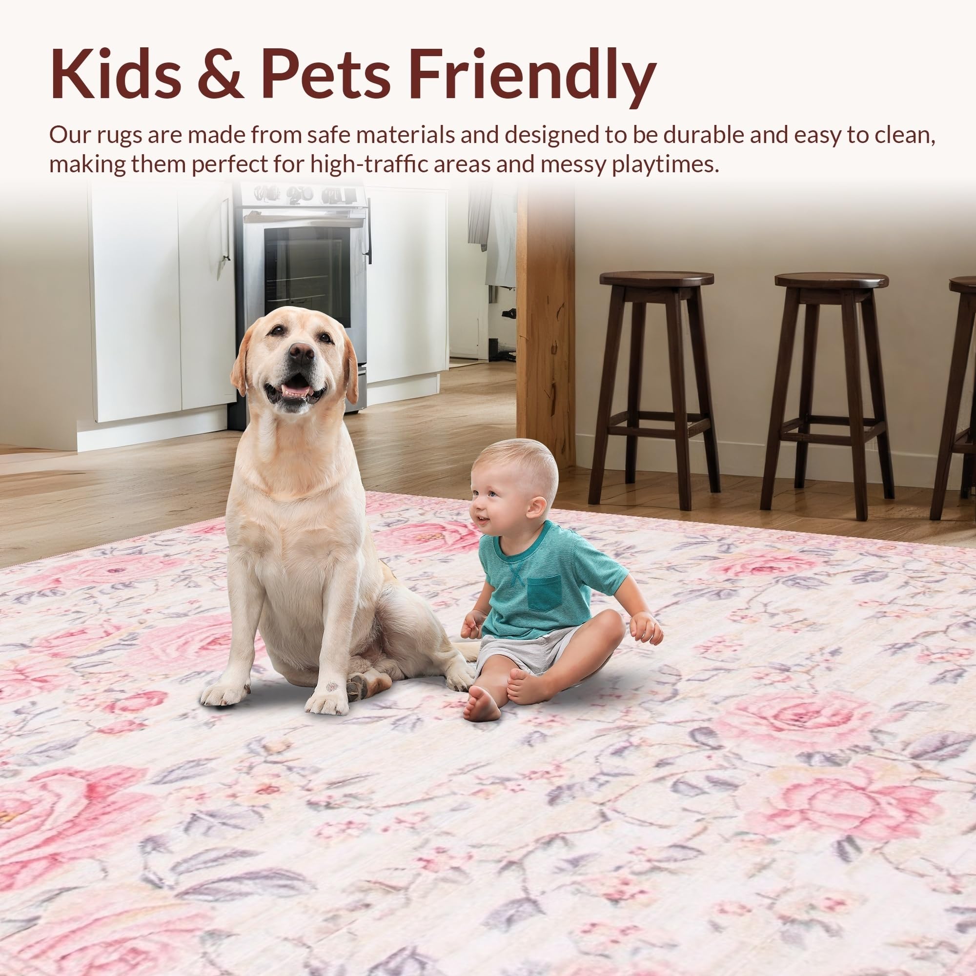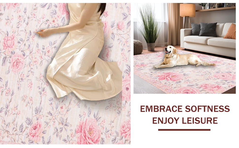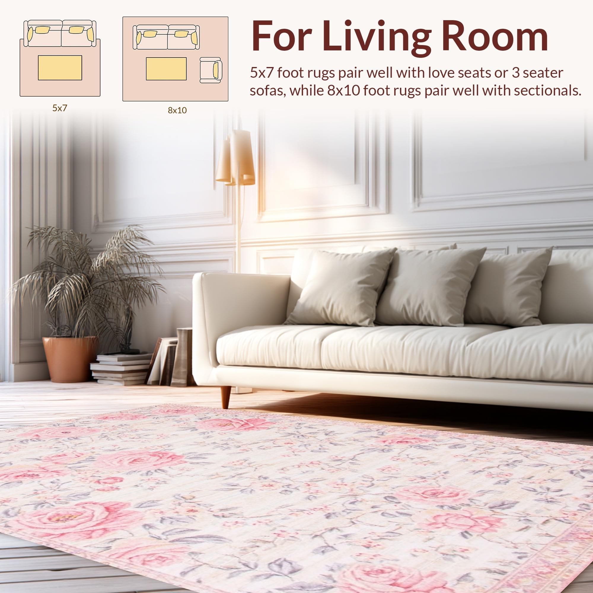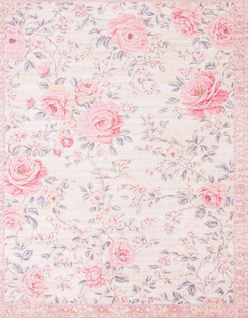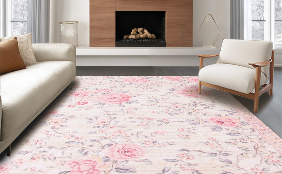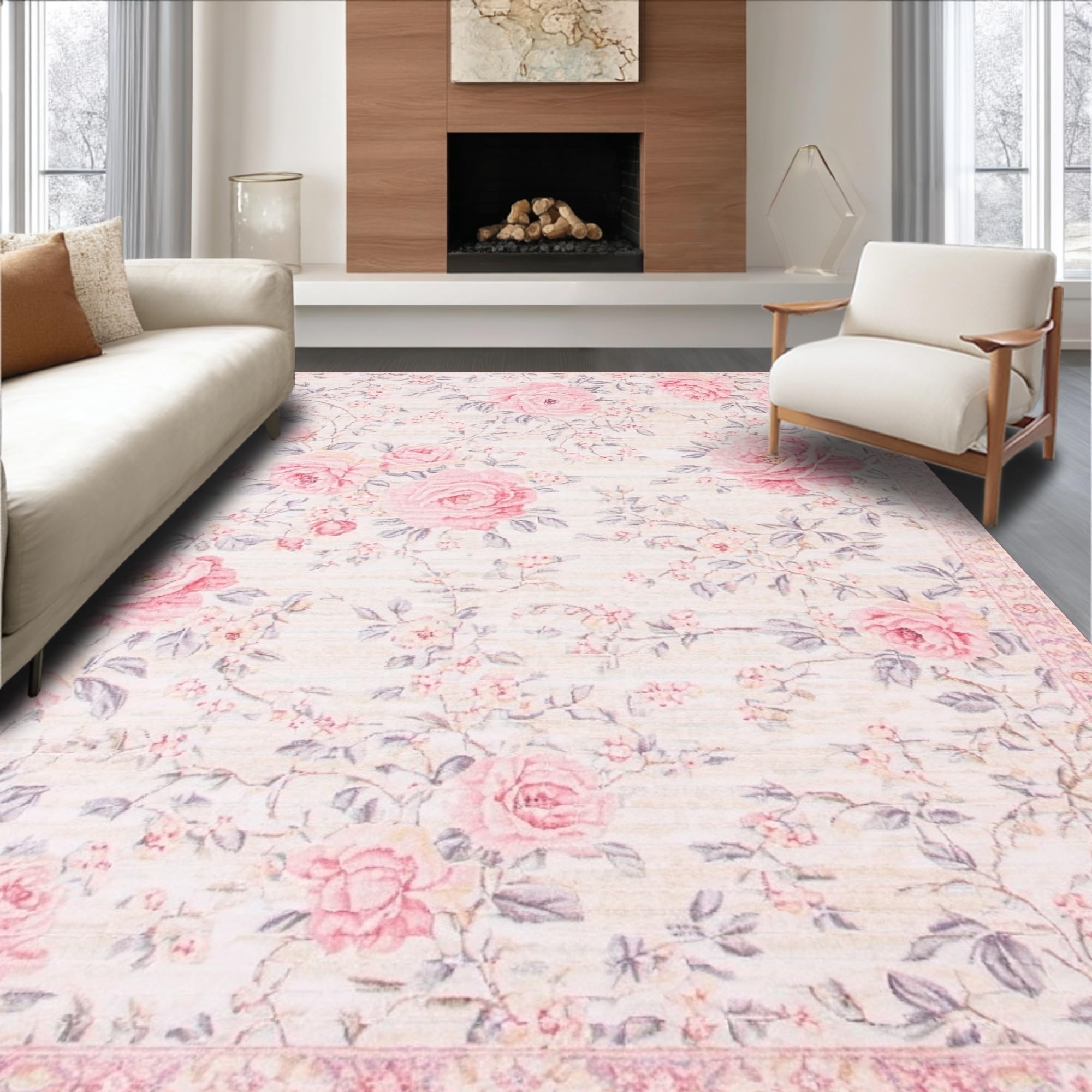 Ultra Soft Area Rug, Non Slip, Stain Resistant, Washable Area Rugs for Living Room, Bedroom, Charming Soft Pink Floral Aesthetic(Pink) Overview: