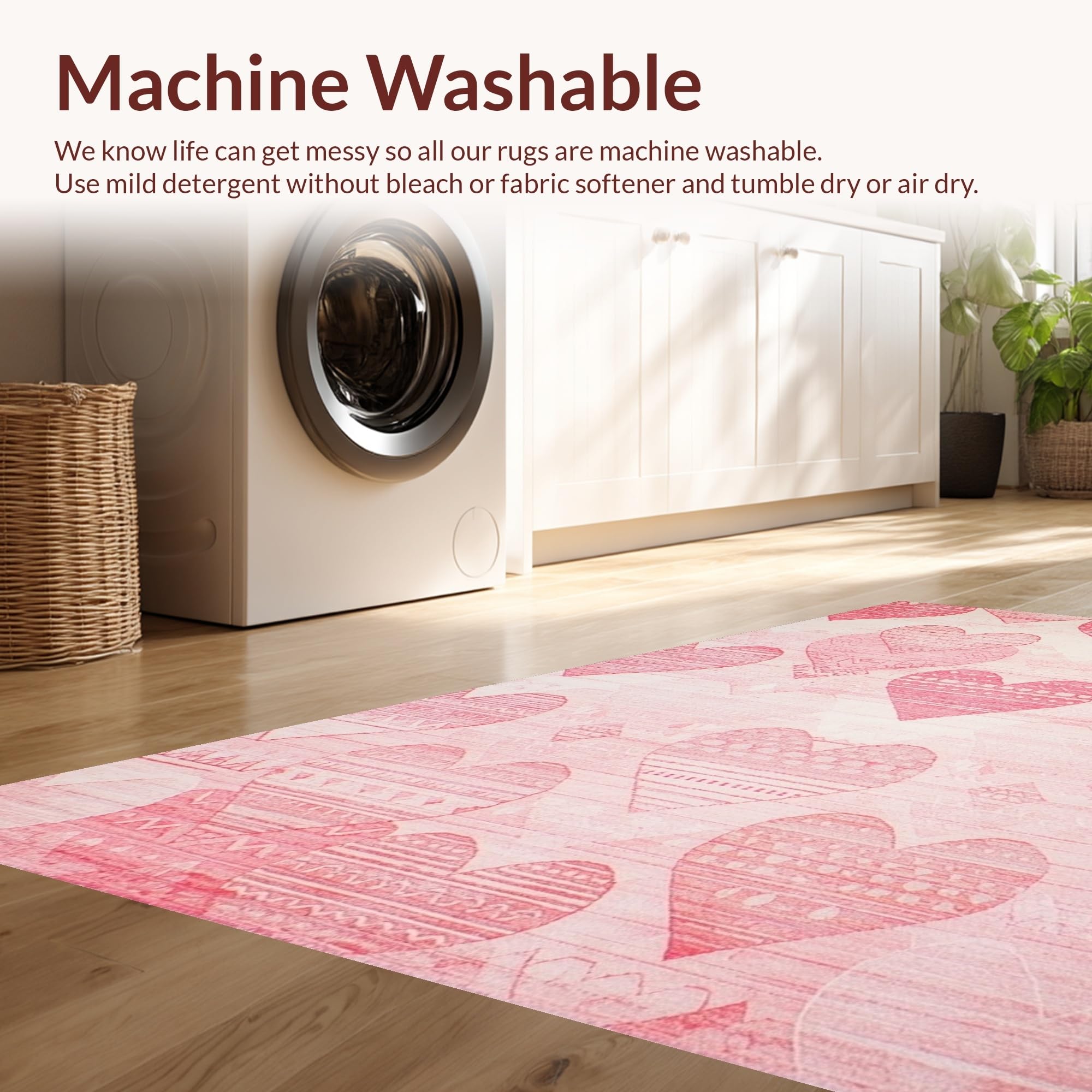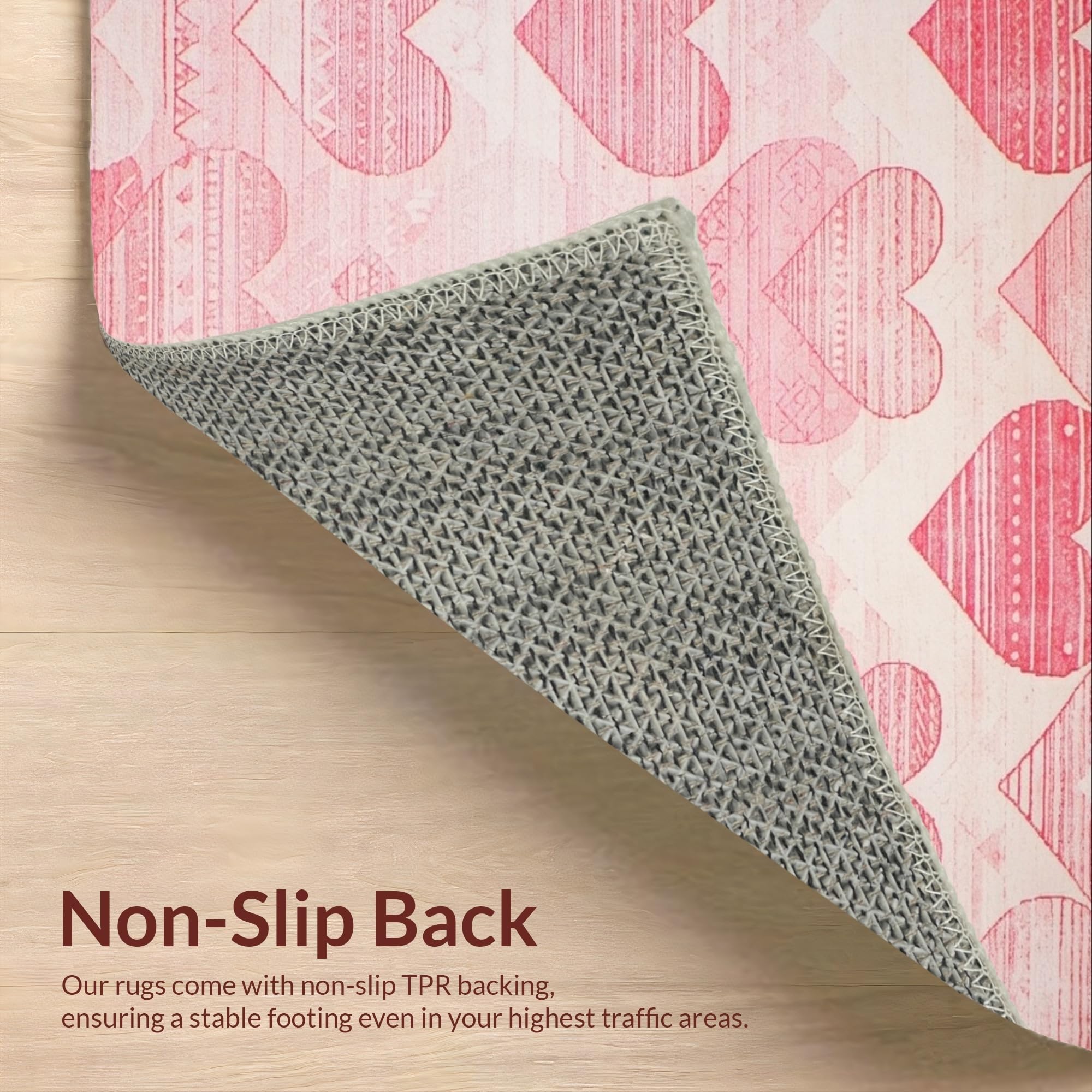 Ultra Soft Area Rug, Non Slip, Stain Resistant, Washable Area Rugs for Living Room, Bedroom, Charming Soft Pink Heart Motif(Pink) Overview: