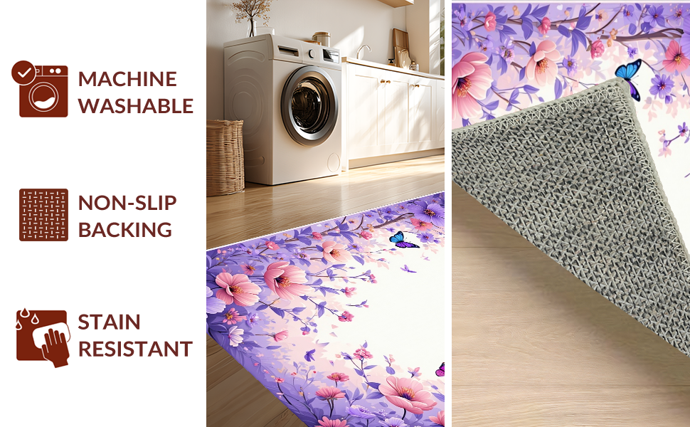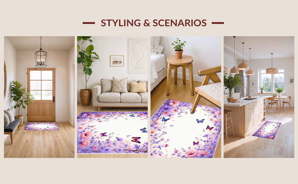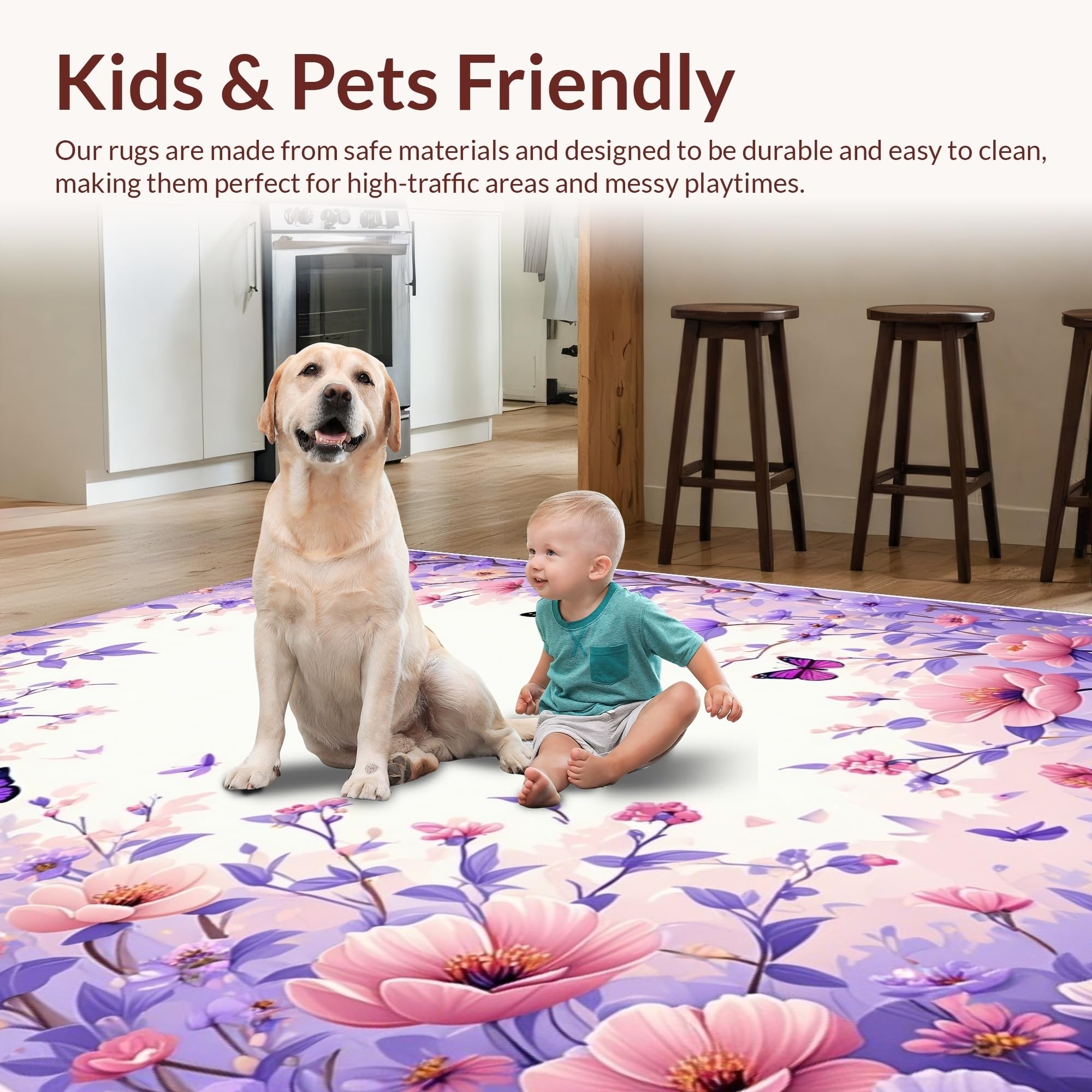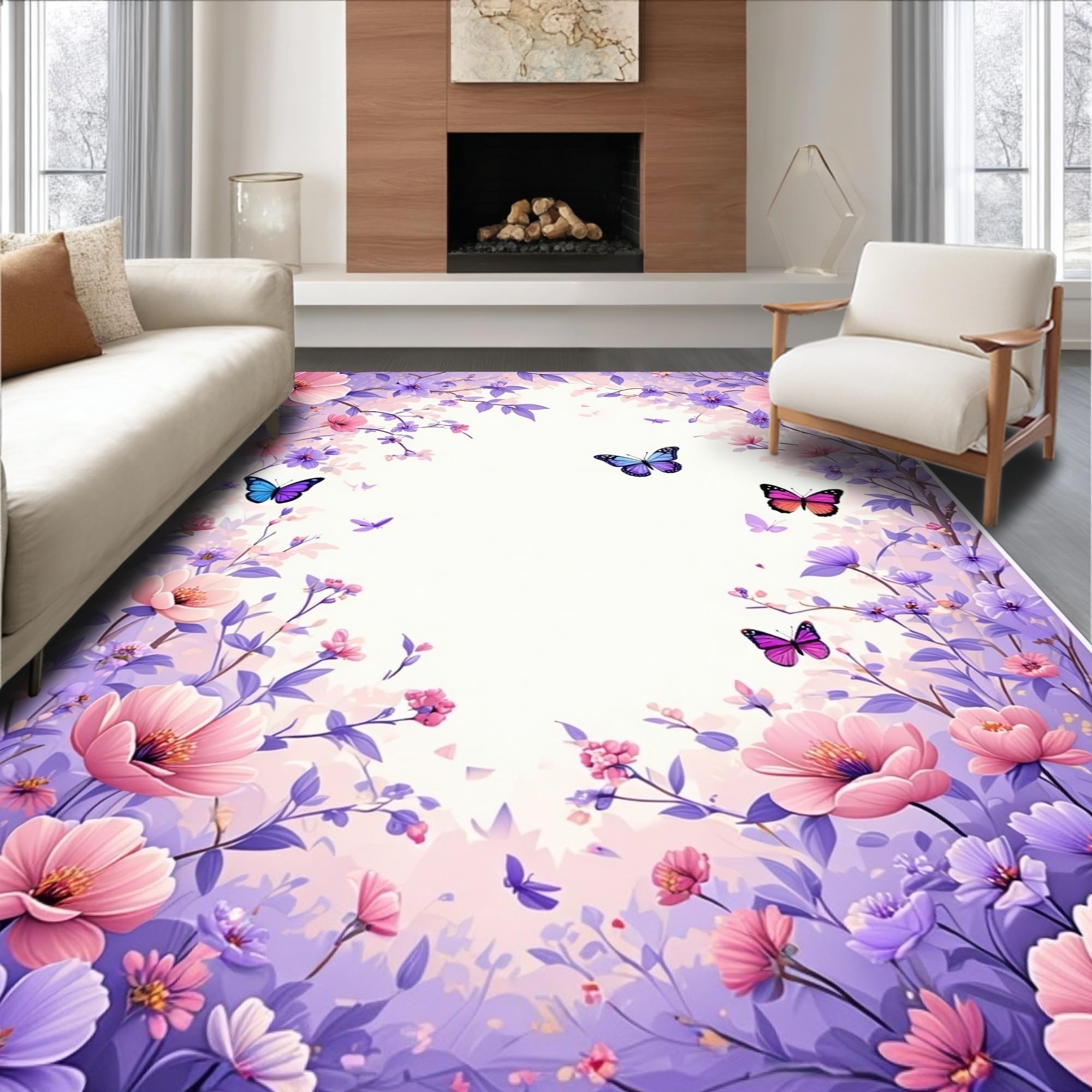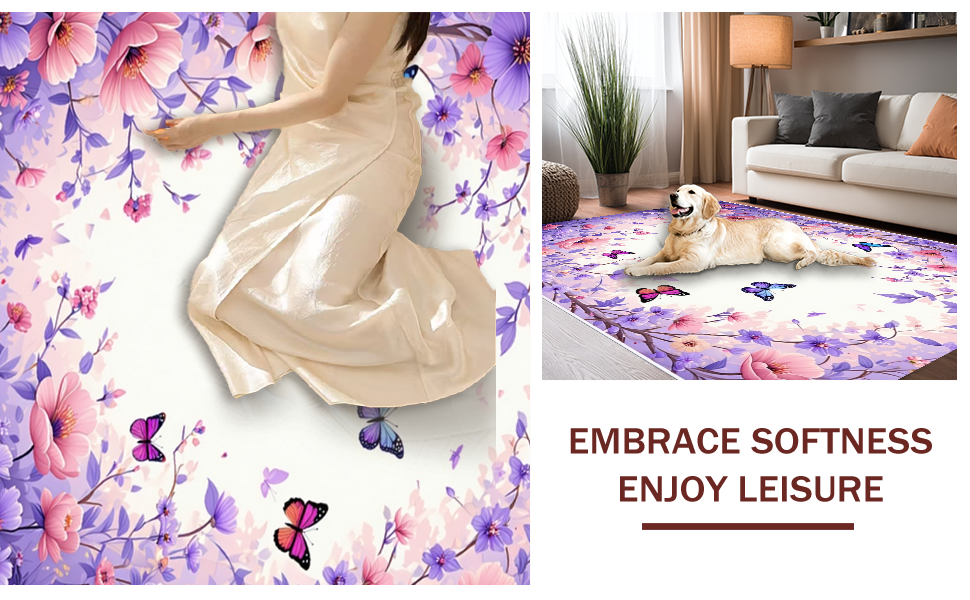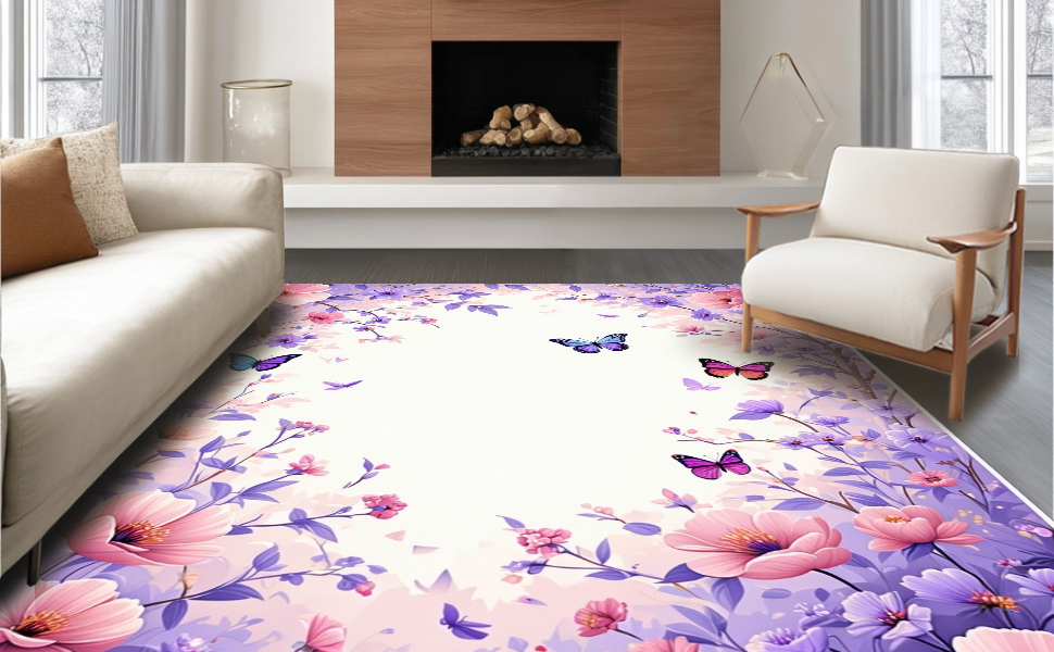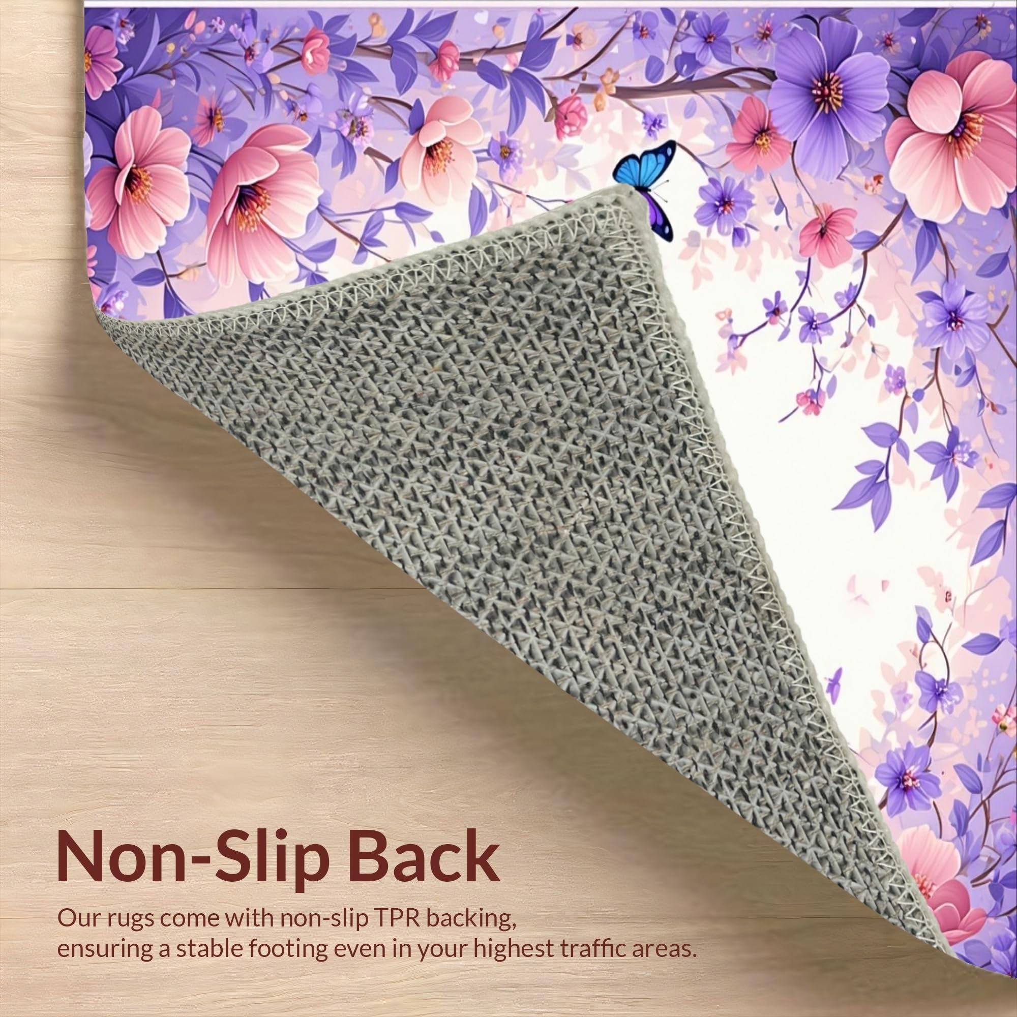 Ultra Soft Area Rug, Non Slip, Stain Resistant, Washable Area Rugs for Living Room, Bedroom, Charming Spring Floral Accents(Purple) Overview: