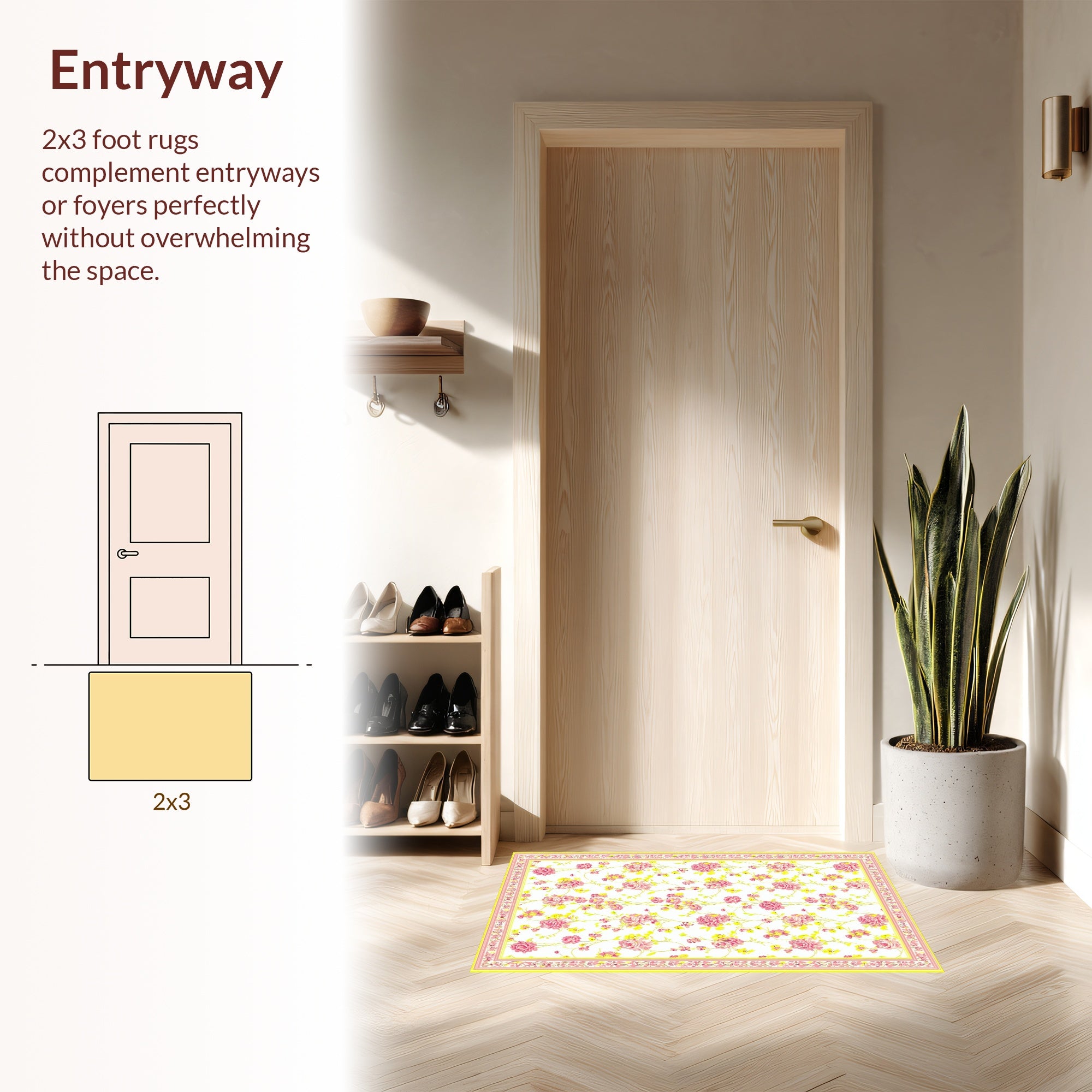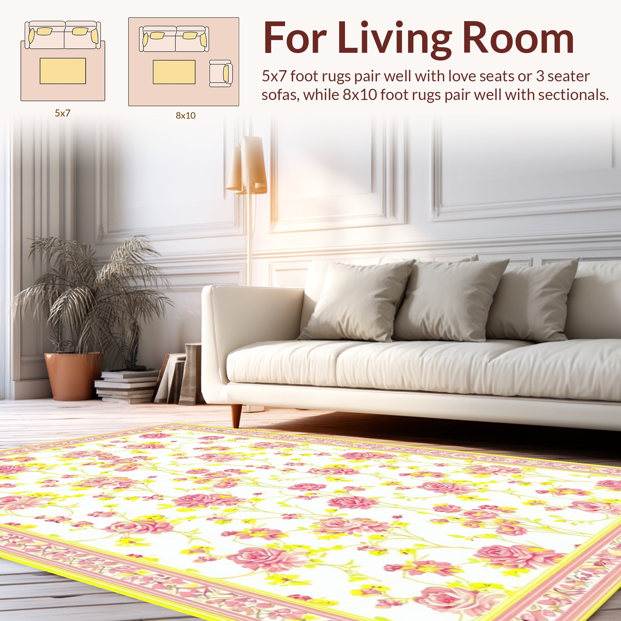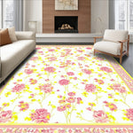 Flatwoven High Traffic Area Rug, Charming Springtime Floral Arrangement, Non Slip, Stain Resistant, Washable Area Rugs for Living Room, Bedroom (Pink) Overview: