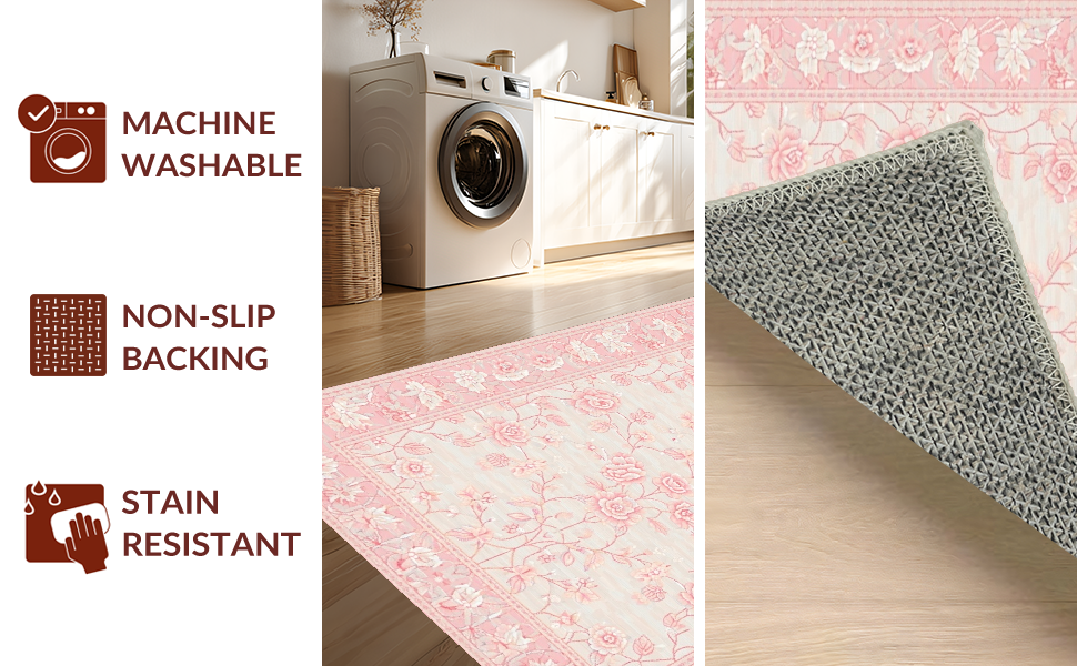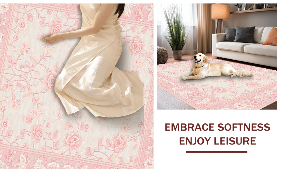 Ultra Soft Area Rug, Non Slip, Stain Resistant, Washable Area Rugs for Living Room, Bedroom, Charming Textured Pastel Vibe(Pink) Overview: