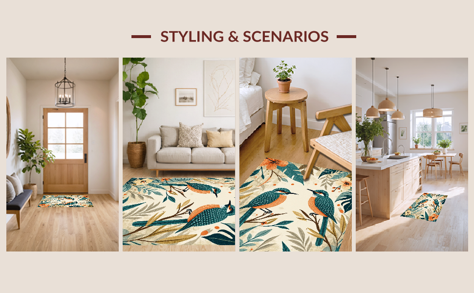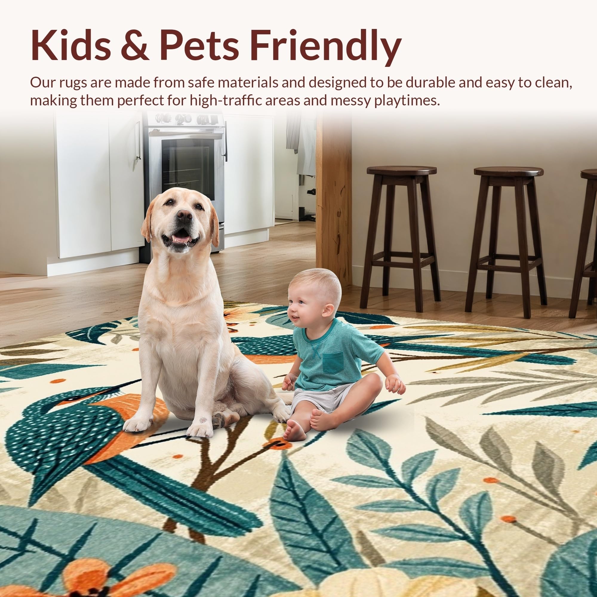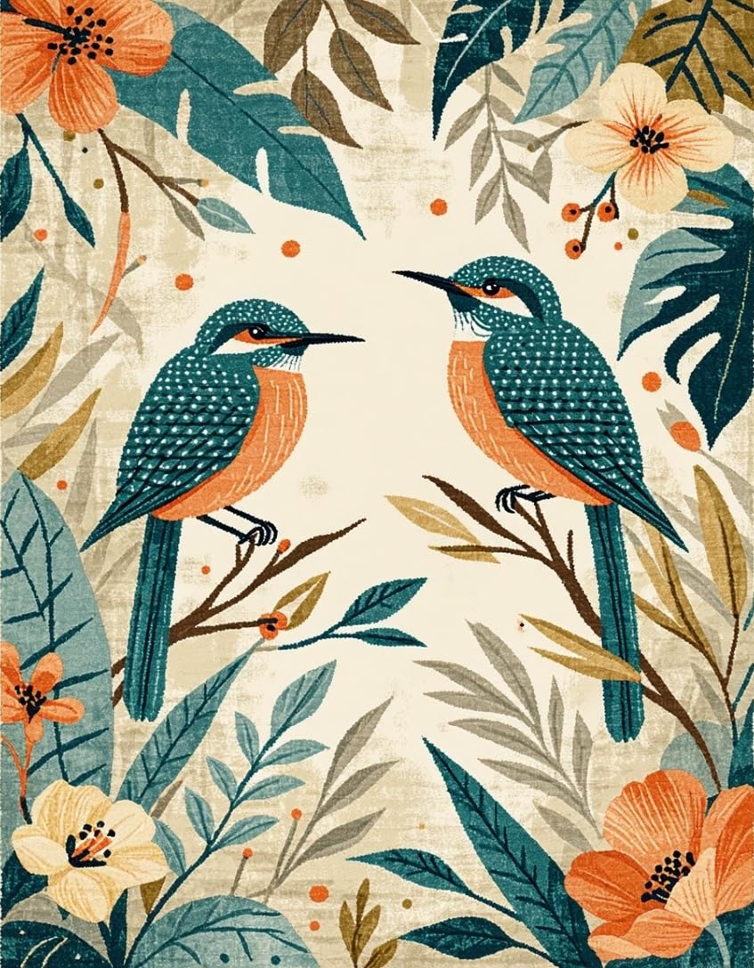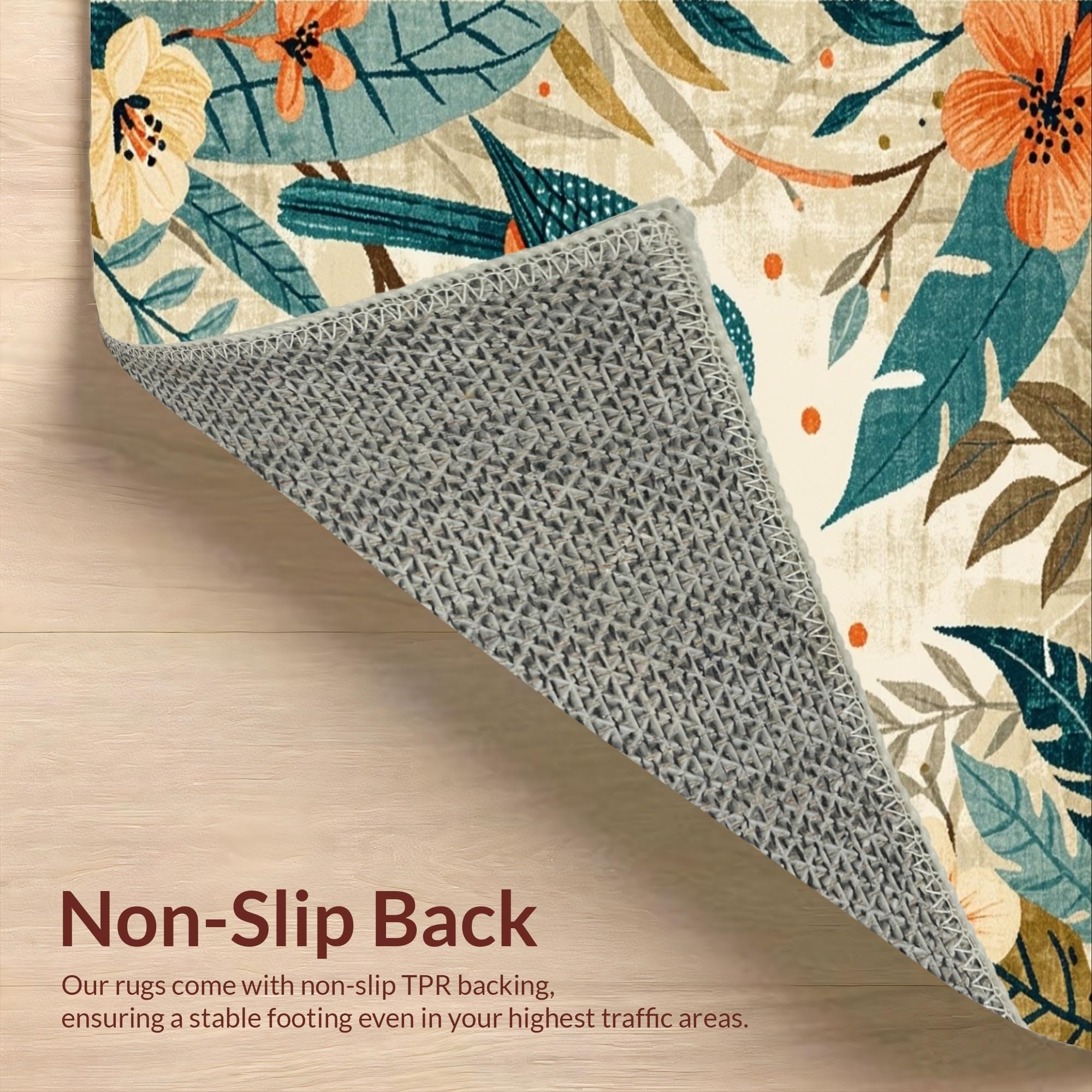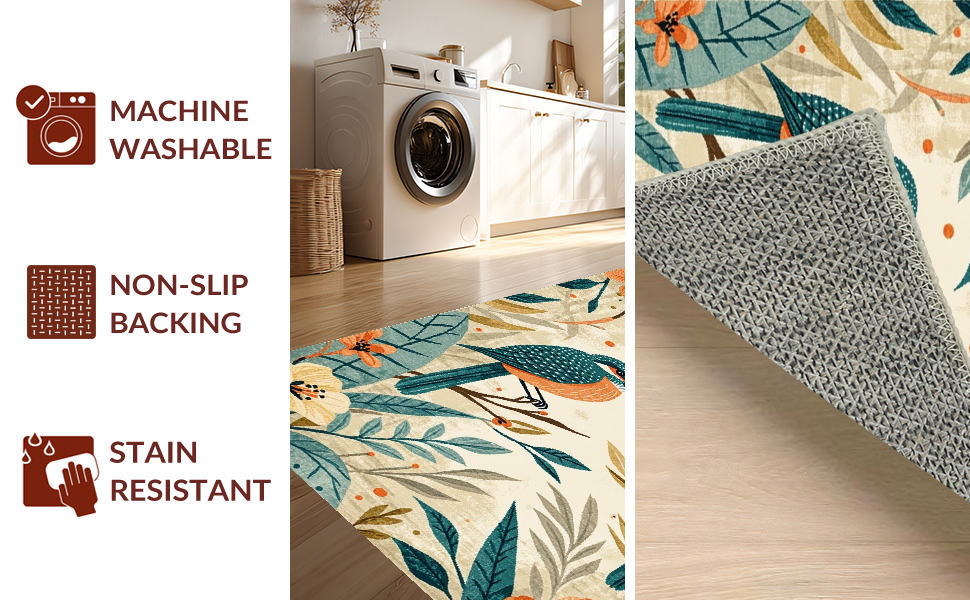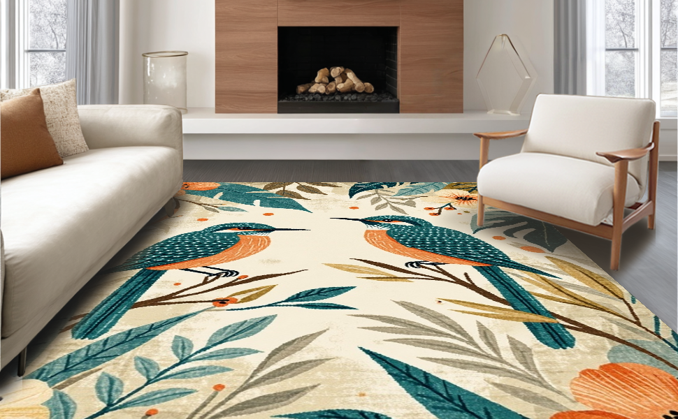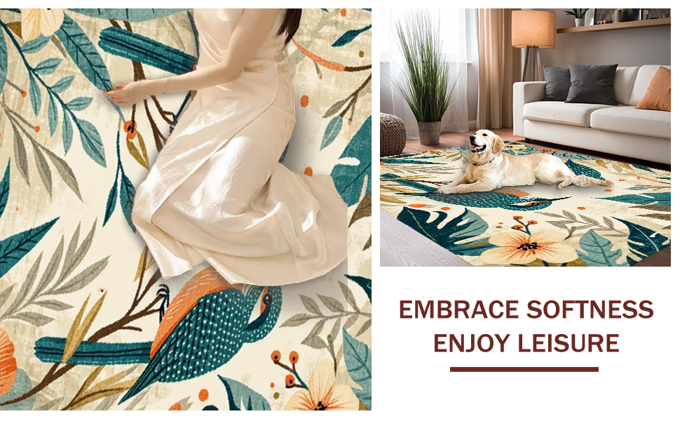Ultra Soft Area Rug, Non Slip, Stain Resistant, Washable Area Rugs for Living Room, Bedroom, Charming Tropical Floral Fusion(Beige) Overview: