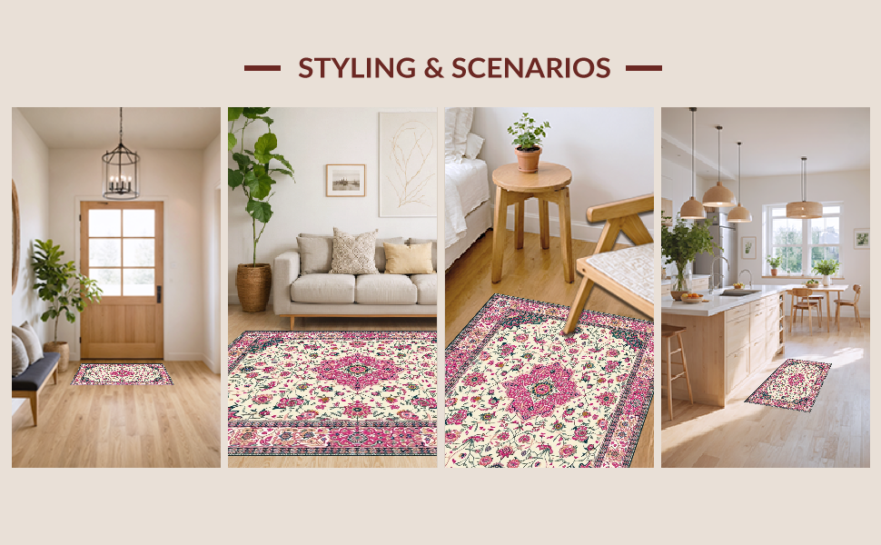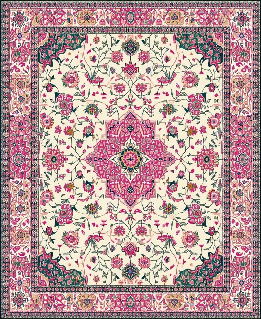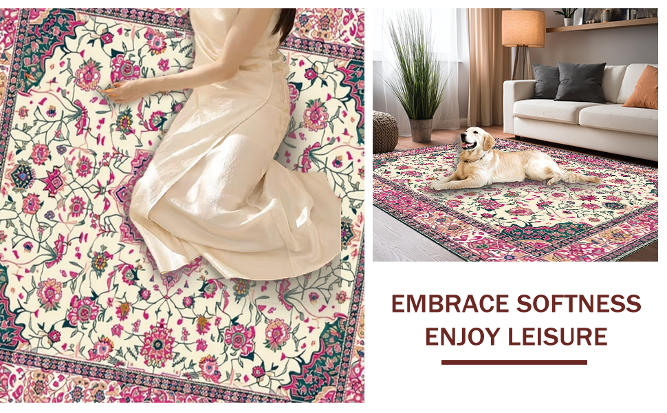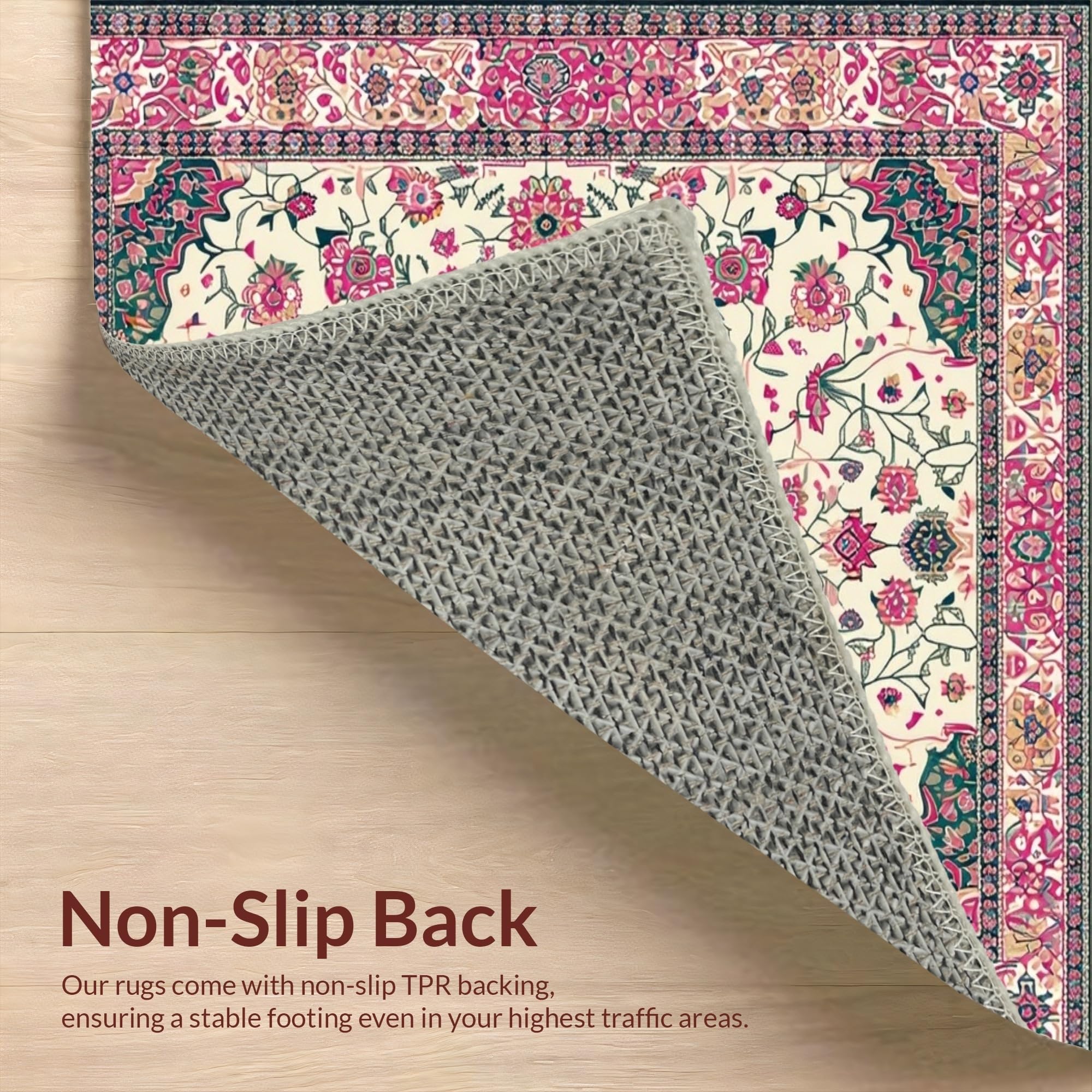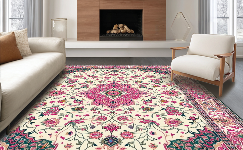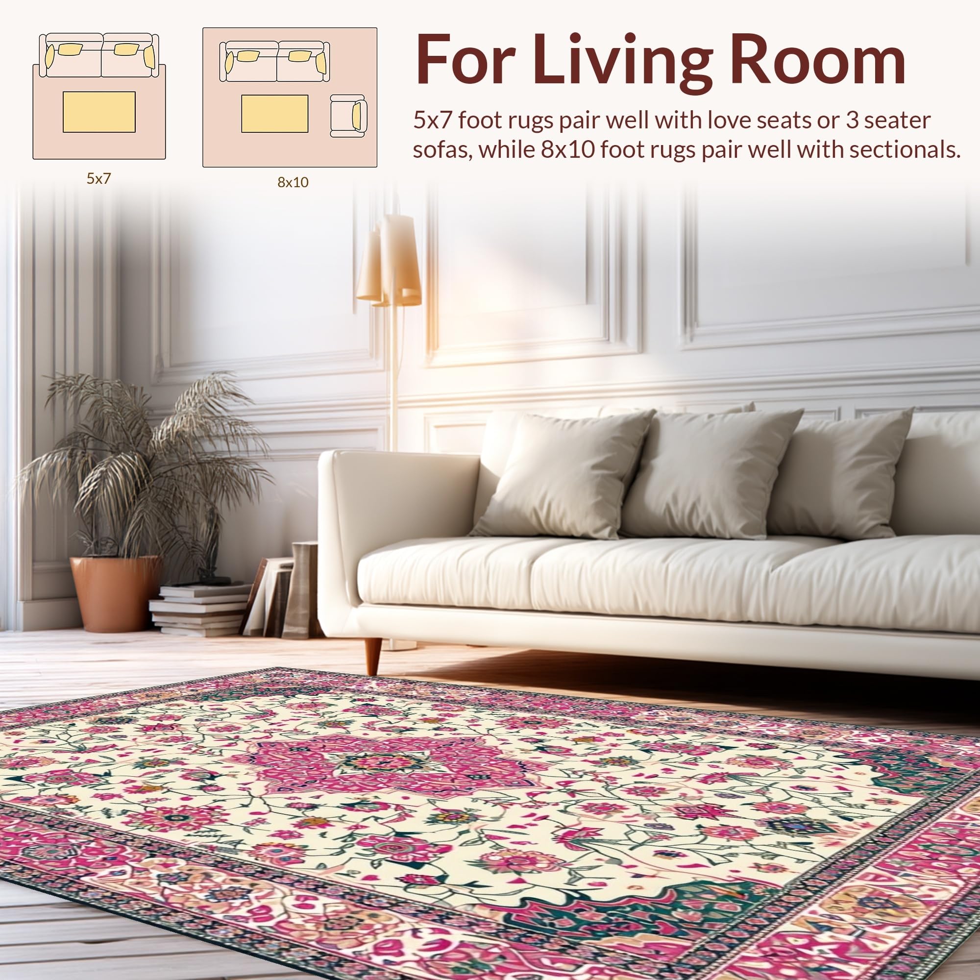 Ultra Soft Area Rug, Non Slip, Stain Resistant, Washable Area Rugs for Living Room, Bedroom, Charming Whimsical Floral Motif(Ivory) Overview:
