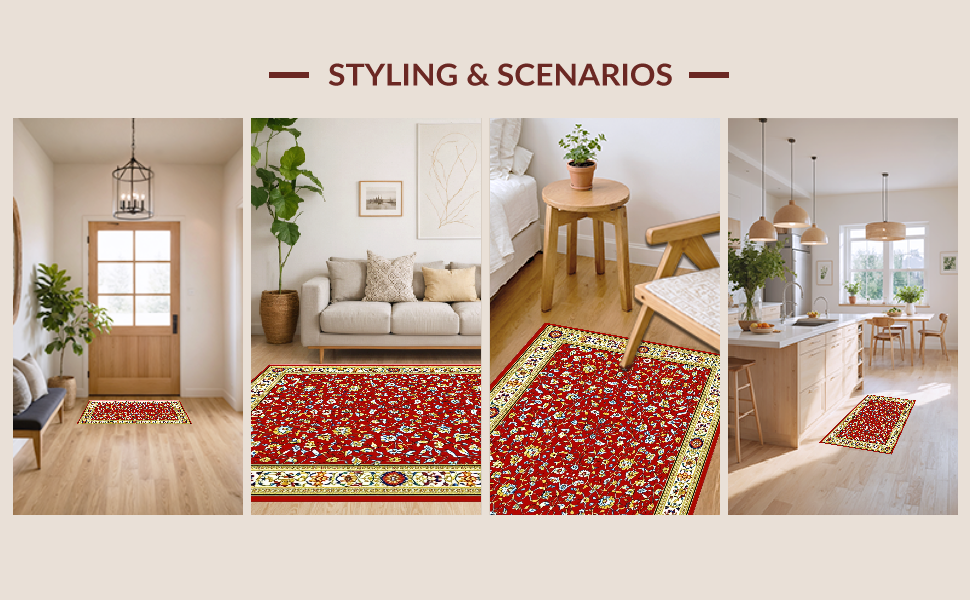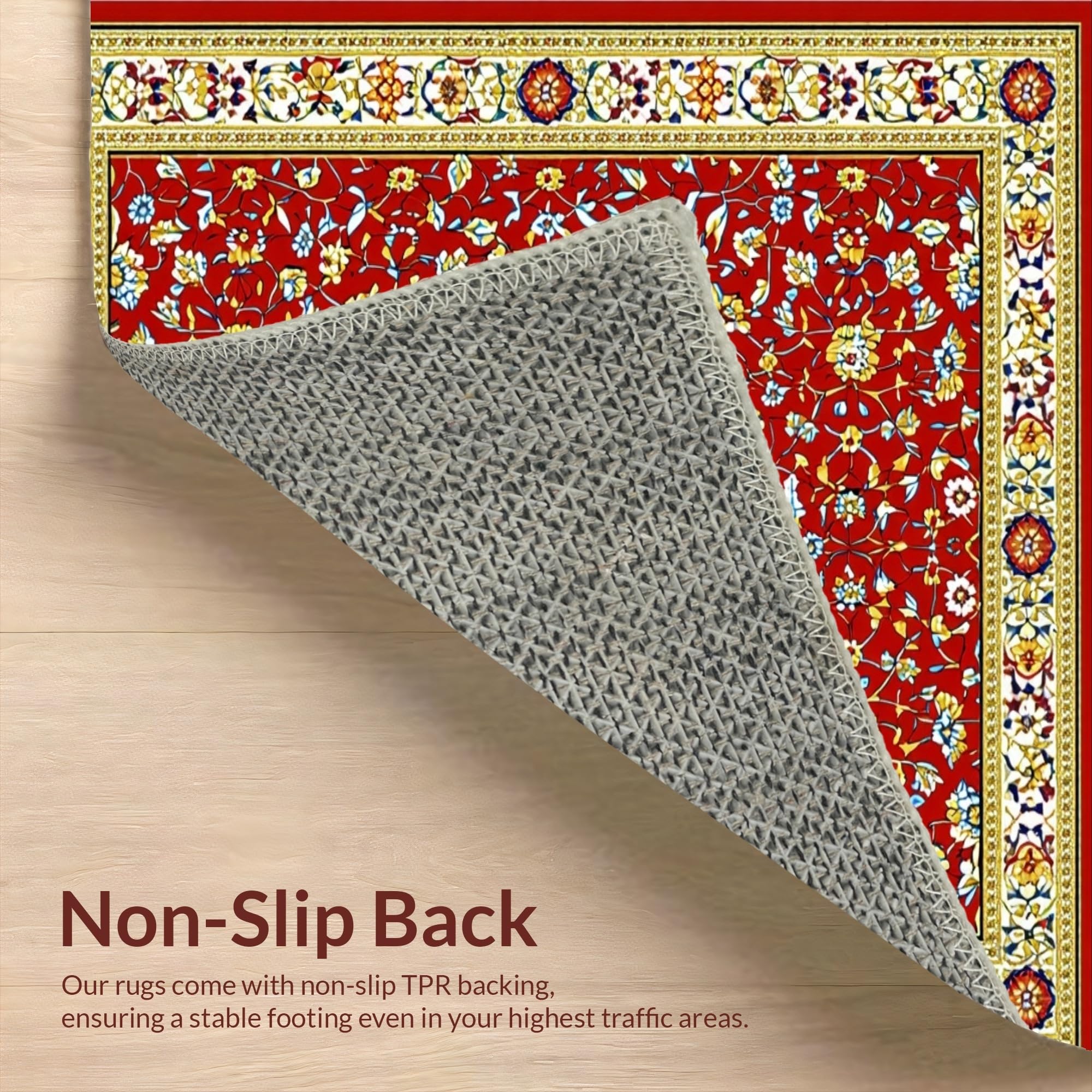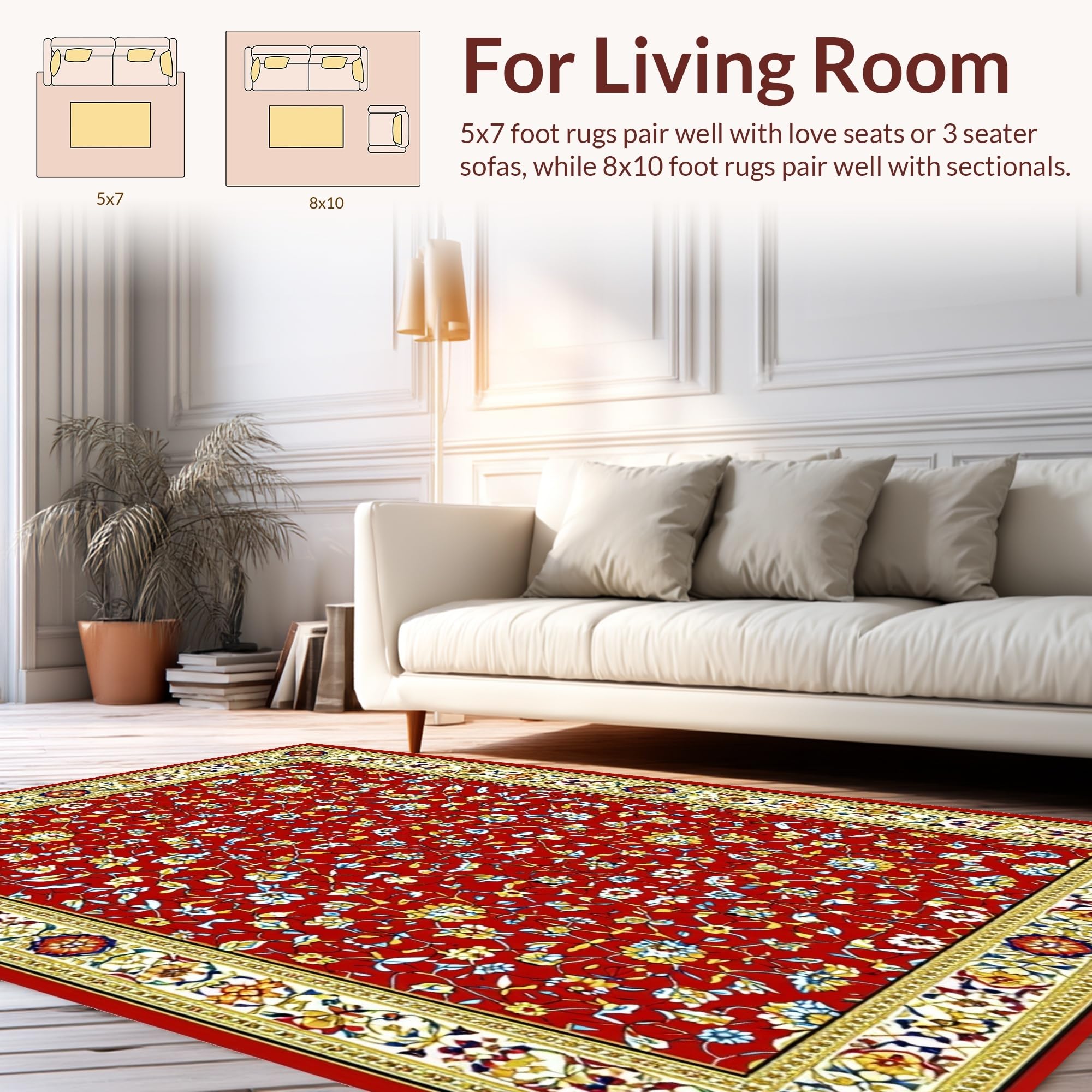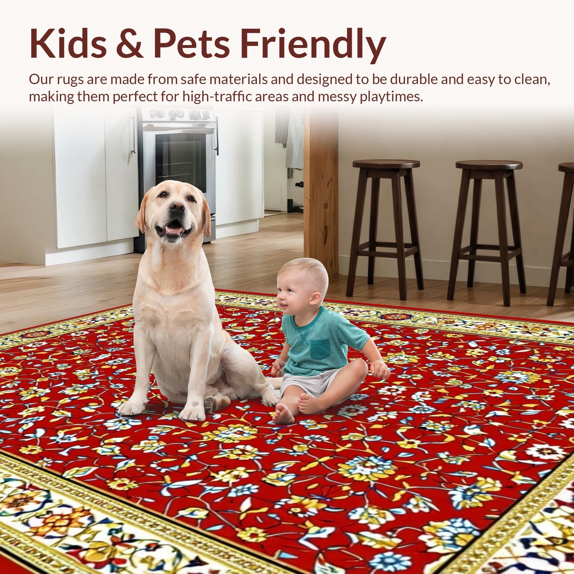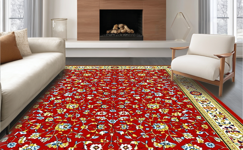 Ultra Soft Area Rug, Non Slip, Stain Resistant, Washable Area Rugs for Living Room, Bedroom, Charming Whimsical Floral Touch(Red) Overview: