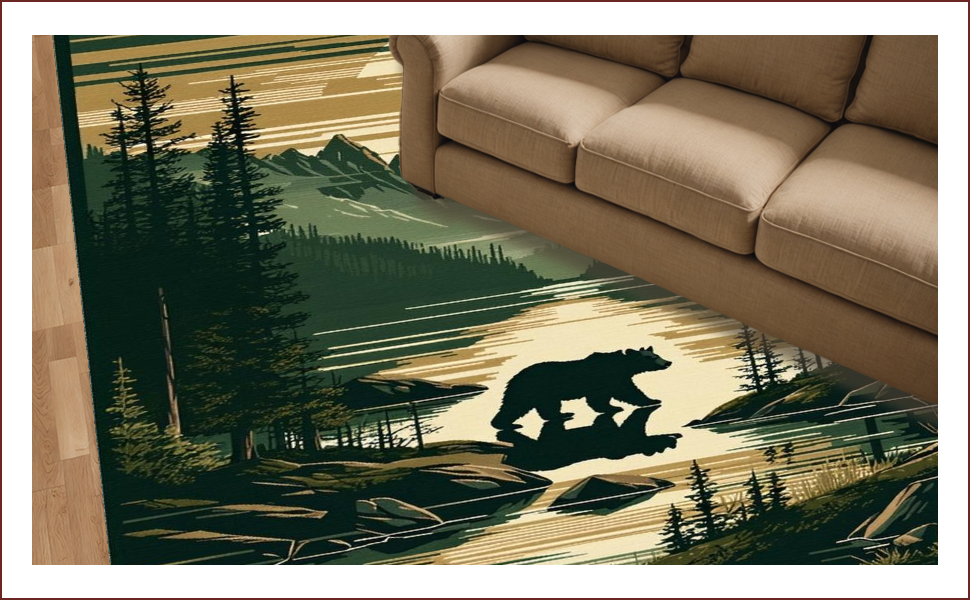 Ultra Soft Area Rug, Non Slip, Stain Resistant, Washable Area Rugs for Living Room, Bedroom, Charming Wildlife Motif Cabin Flair(Brown) Overview: