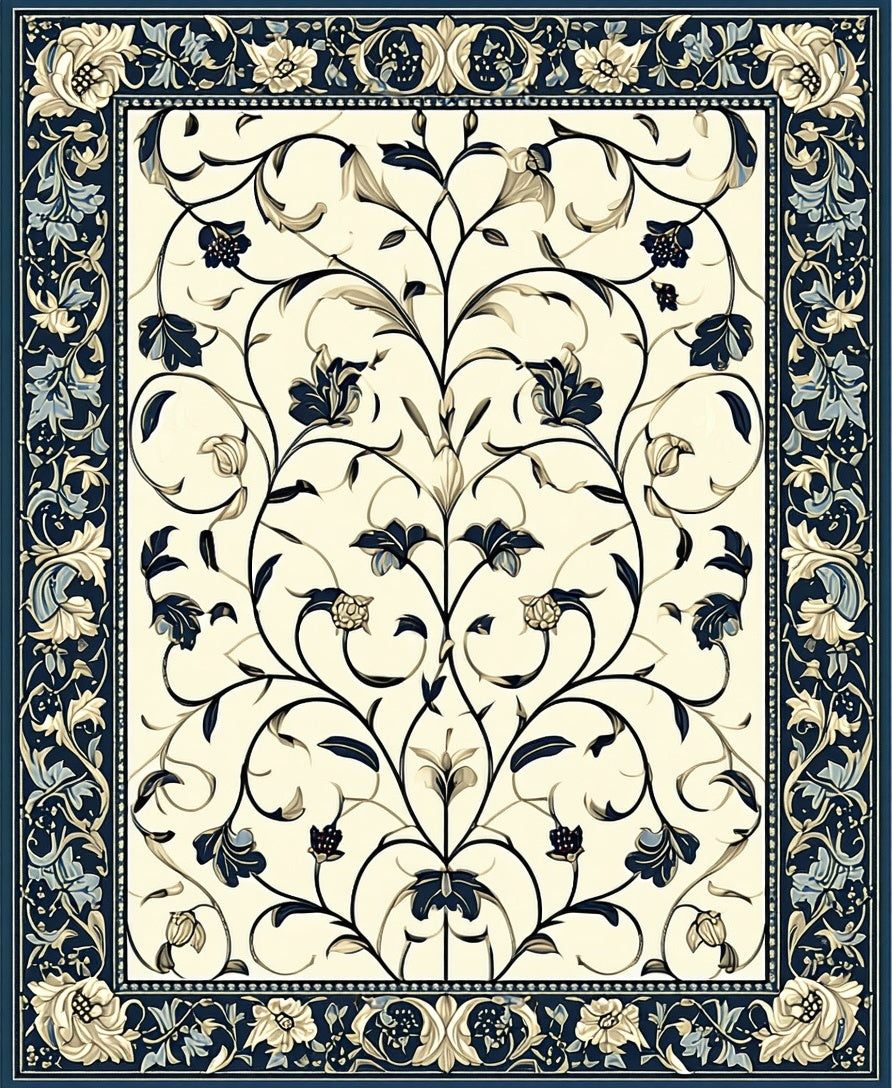 Chateau Collection Azure Bloom Dark Beige Botanical Scrollwork(Ivory)