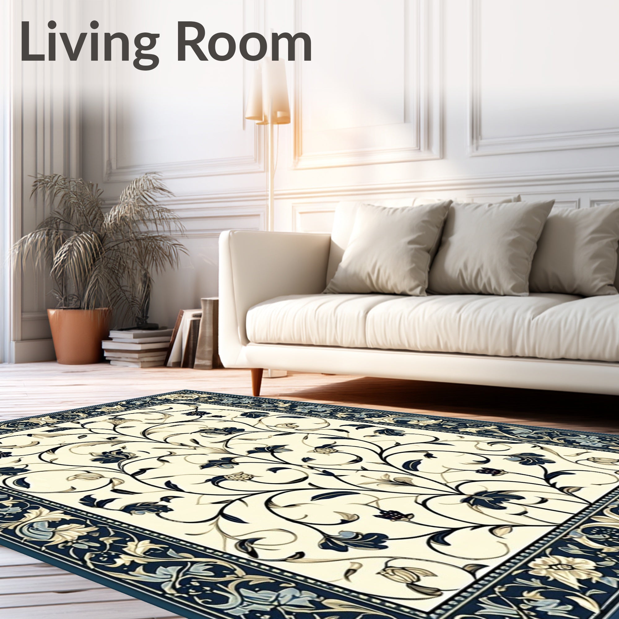 Flatwoven High Traffic Area Rug, Chateau Collection Azure Bloom Dark Beige Botanical Scrollwork, Non Slip, Stain Resistant, Washable Area Rugs for Living Room, Bedroom (Ivory) Overview: