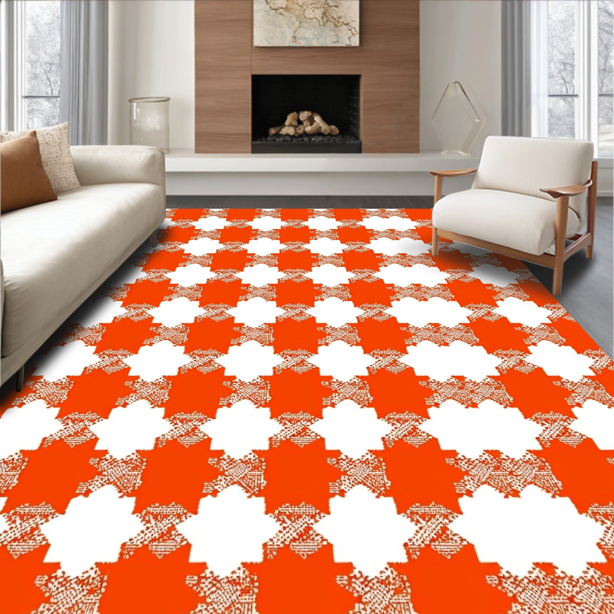 Ultra Soft Area Rug, Non Slip, Stain Resistant, Washable Area Rugs for Living Room, Bedroom, Checkered Buffalo Plaid with Rustic Farmhouse Charm(Orange) Overview: