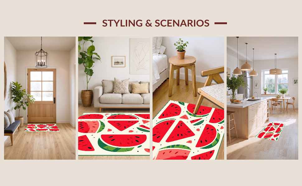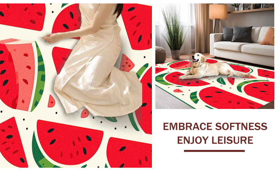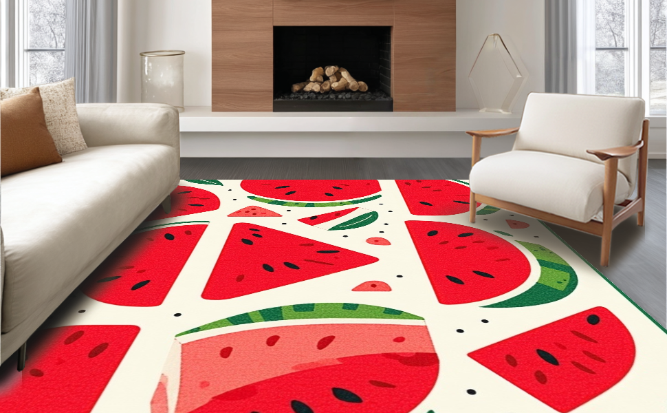 Ultra Soft Area Rug, Non Slip, Stain Resistant, Washable Area Rugs for Living Room, Bedroom, Cheerful Juicy Tropical Vibes(Red) Overview: