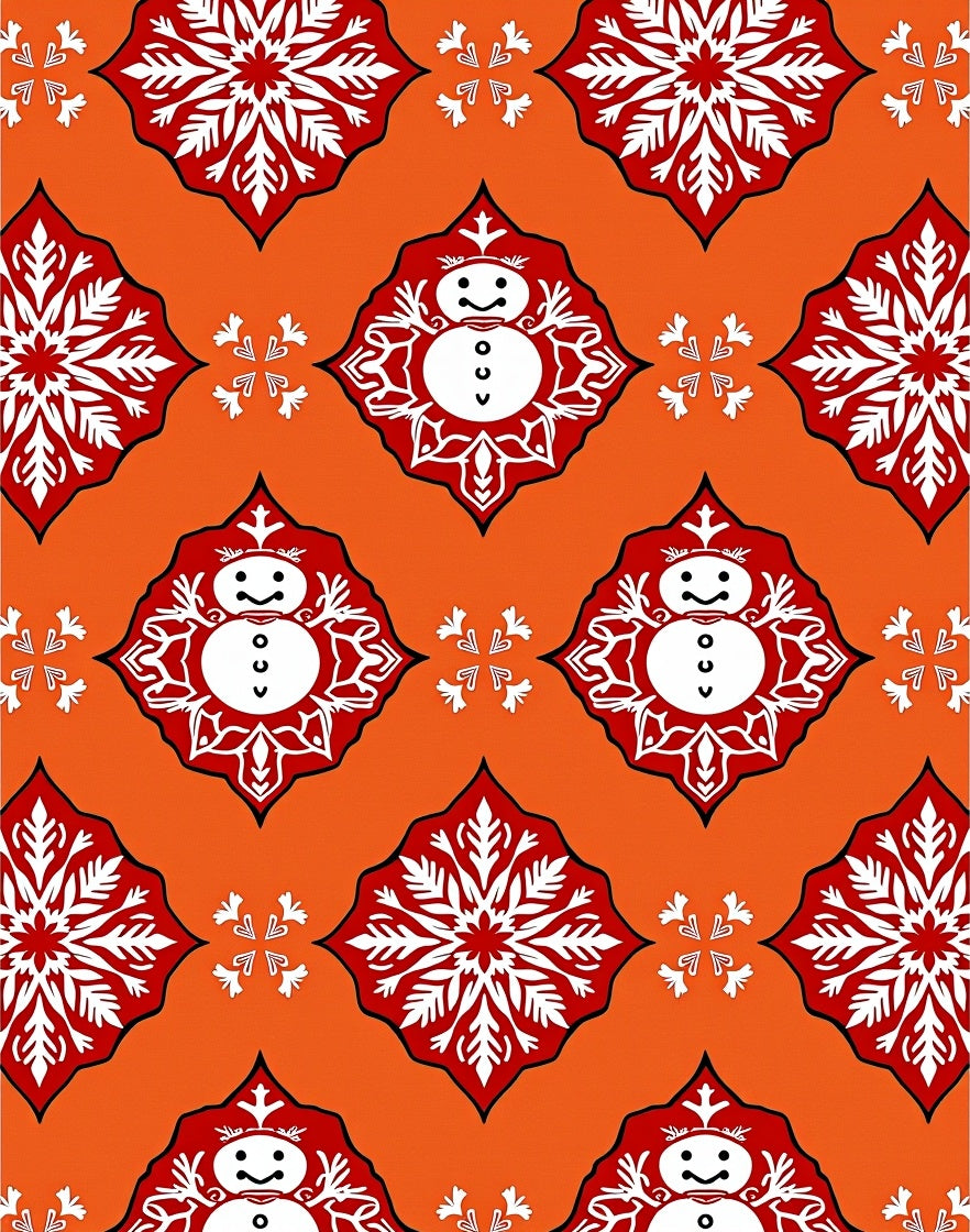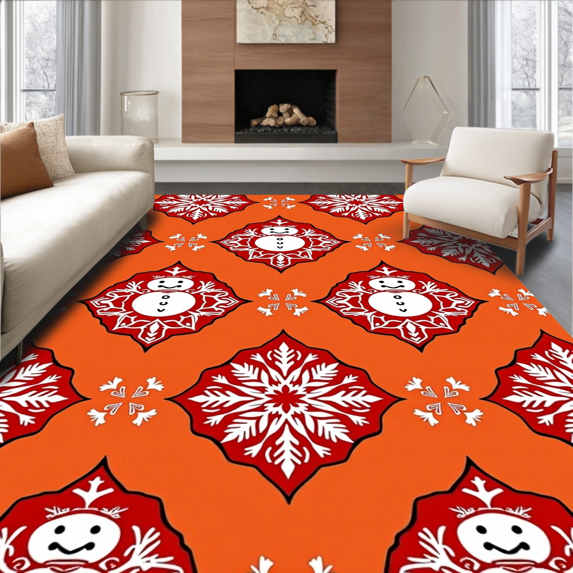 Cheerful Snowman and Intricate Snowflake Ensemble Seasonal Floor Covering(Orange)