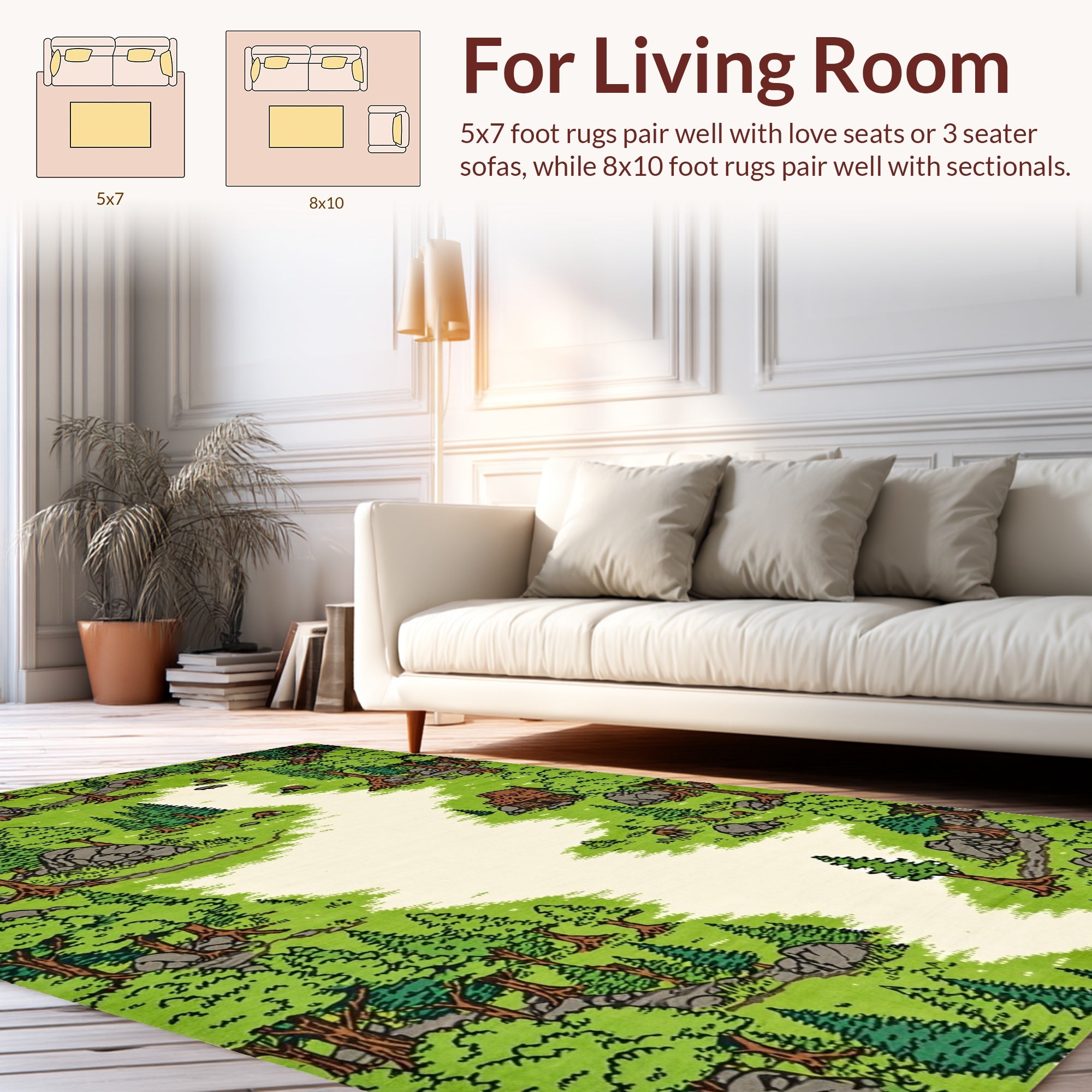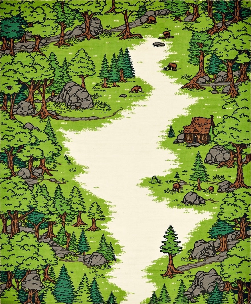 Flatwoven High Traffic Area Rug, Cheerful Woodland Creatures Illustration, Non Slip, Stain Resistant, Washable Area Rugs for Living Room, Bedroom (Green) Overview: