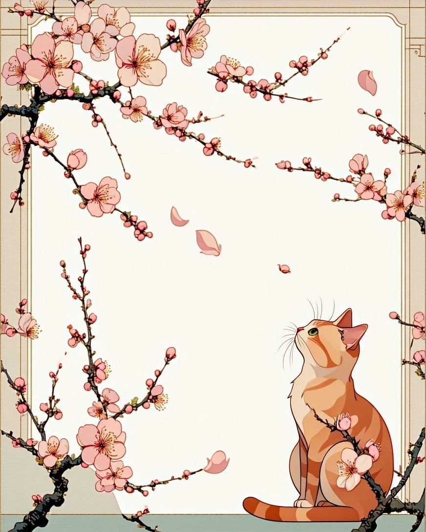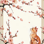 Cherry Blossom Cat Garden with Delicate Flowers and Sweet Feline Outline(Pink)