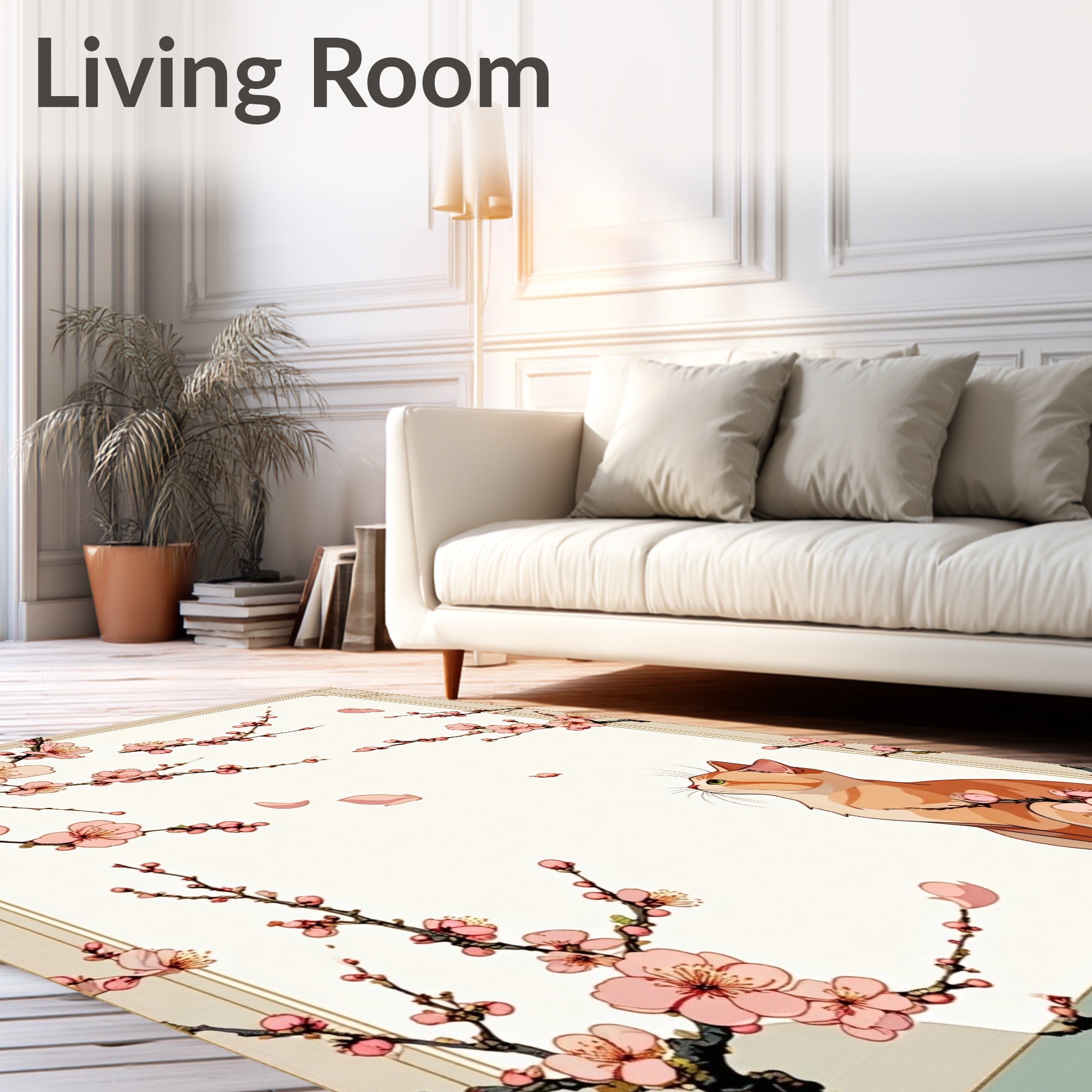 Flatwoven High Traffic Area Rug, Cherry Blossom Cat Garden with Delicate Flowers and Sweet Feline Outline, Non Slip, Stain Resistant, Washable Area Rugs for Living Room, Bedroom (Pink) Overview: