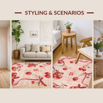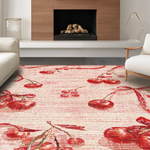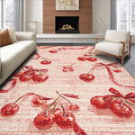 Ultra Soft Area Rug, Non Slip, Stain Resistant, Washable Area Rugs for Living Room, Bedroom, Cherry Ribbon Bowknot and Red Fruit Seamless Pattern Rug(Red) Overview:
