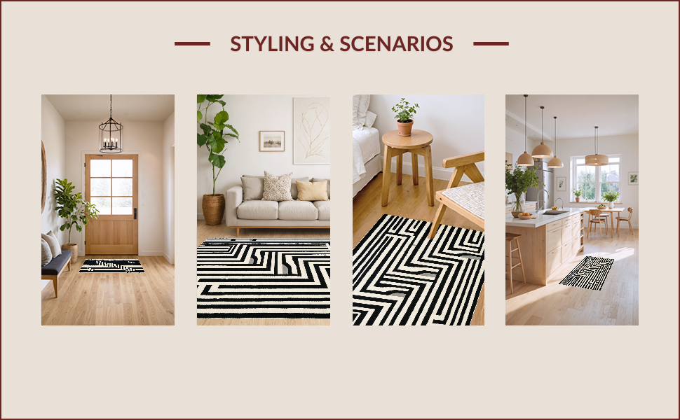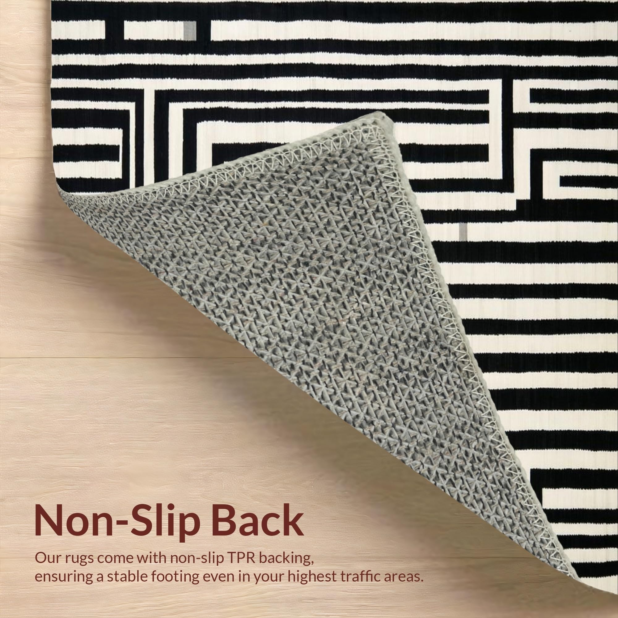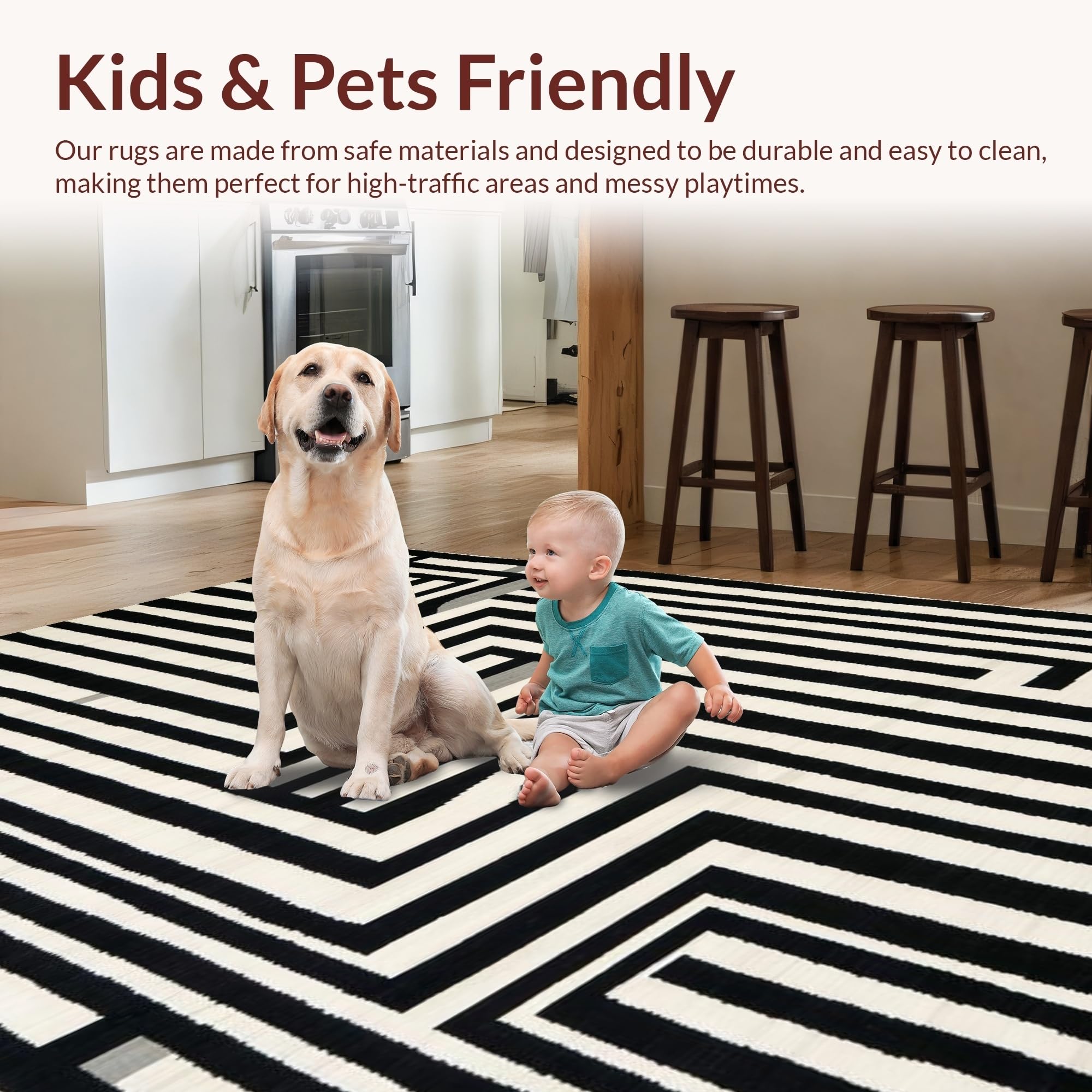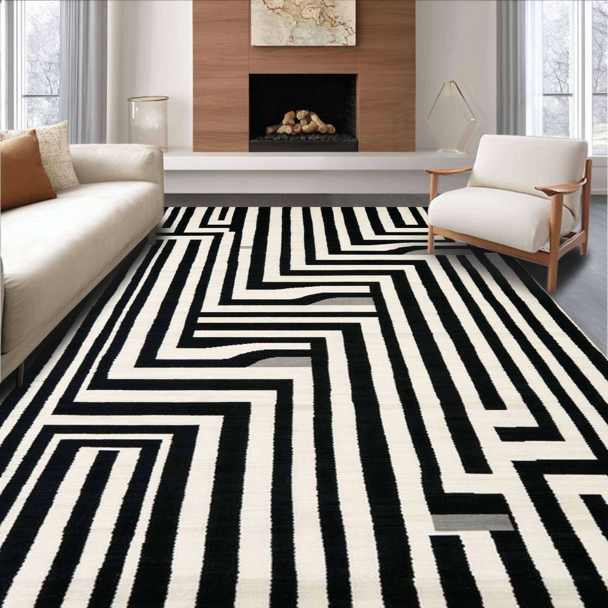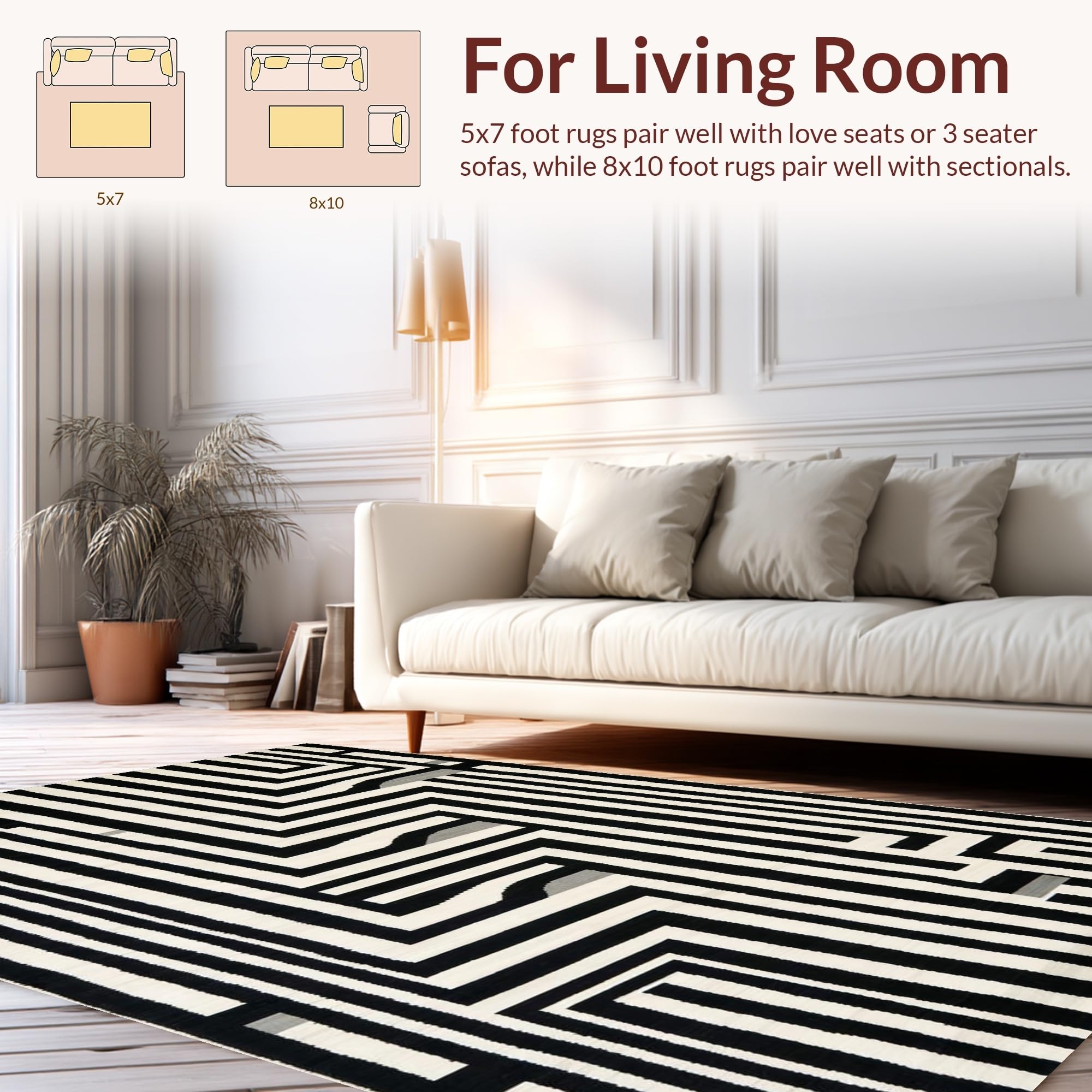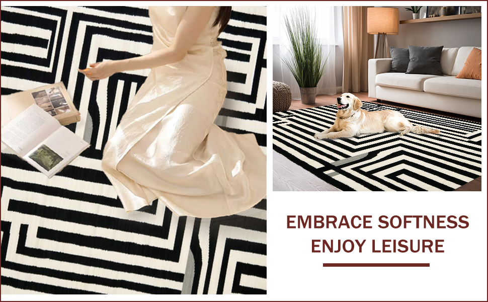 Ultra Soft Area Rug, Non Slip, Stain Resistant, Washable Area Rugs for Living Room, Bedroom, Chic Abstract Animal Print Aesthetic(Black) Overview:
