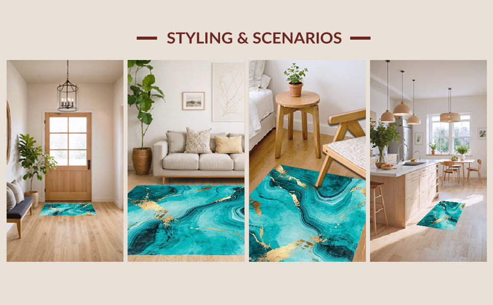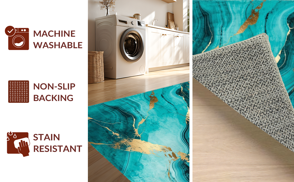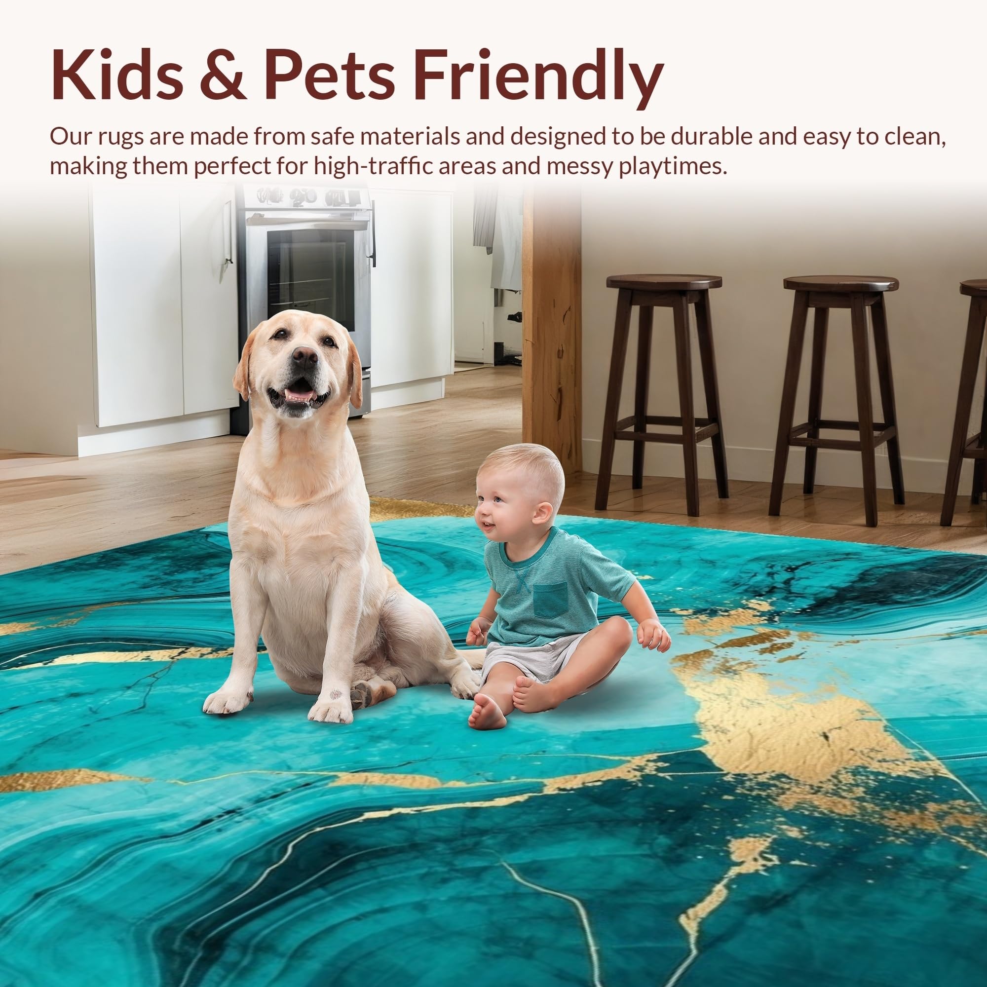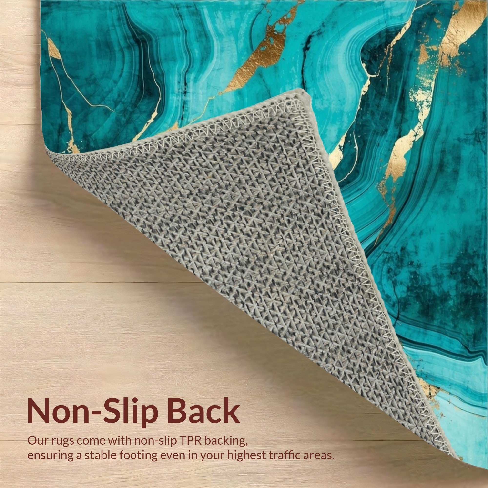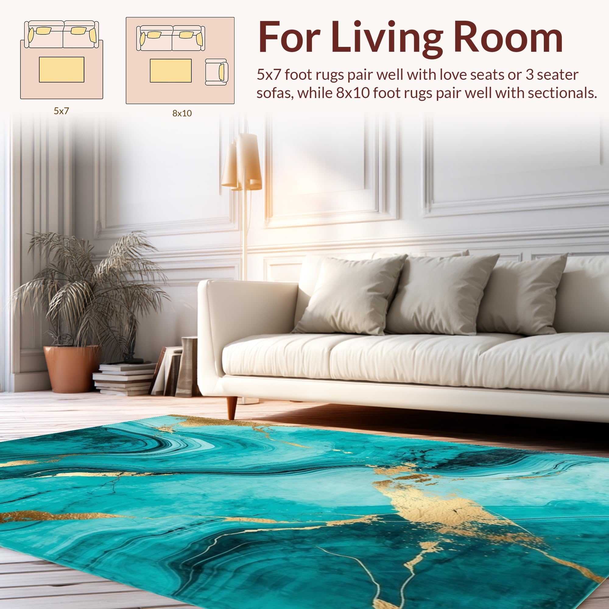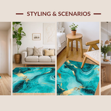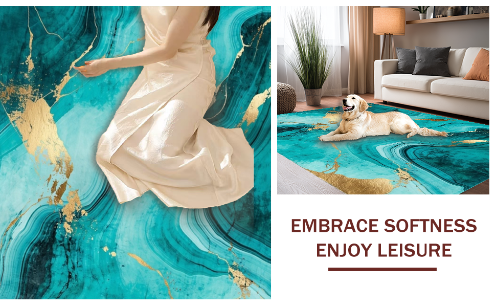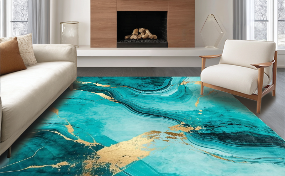 Ultra Soft Area Rug, Non Slip, Stain Resistant, Washable Area Rugs for Living Room, Bedroom, Chic Abstract Artful Turquoise(Blue) Overview: