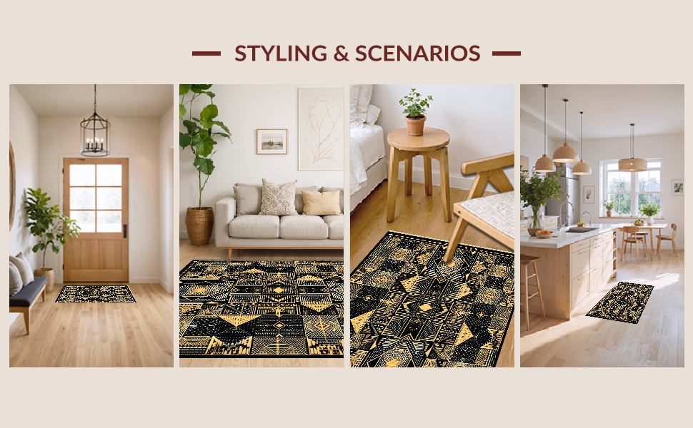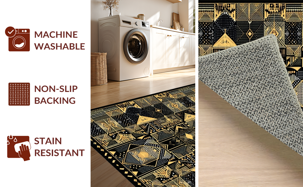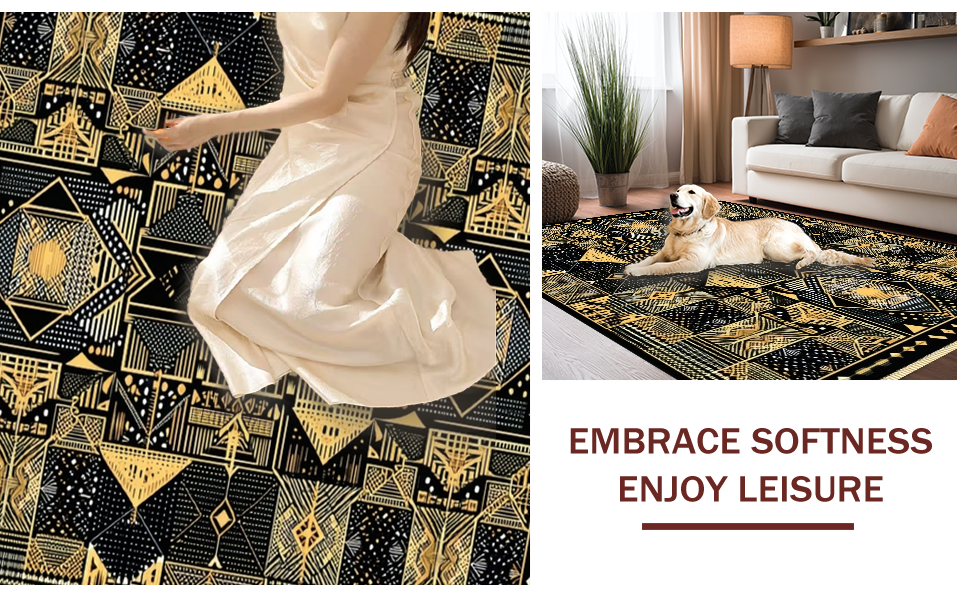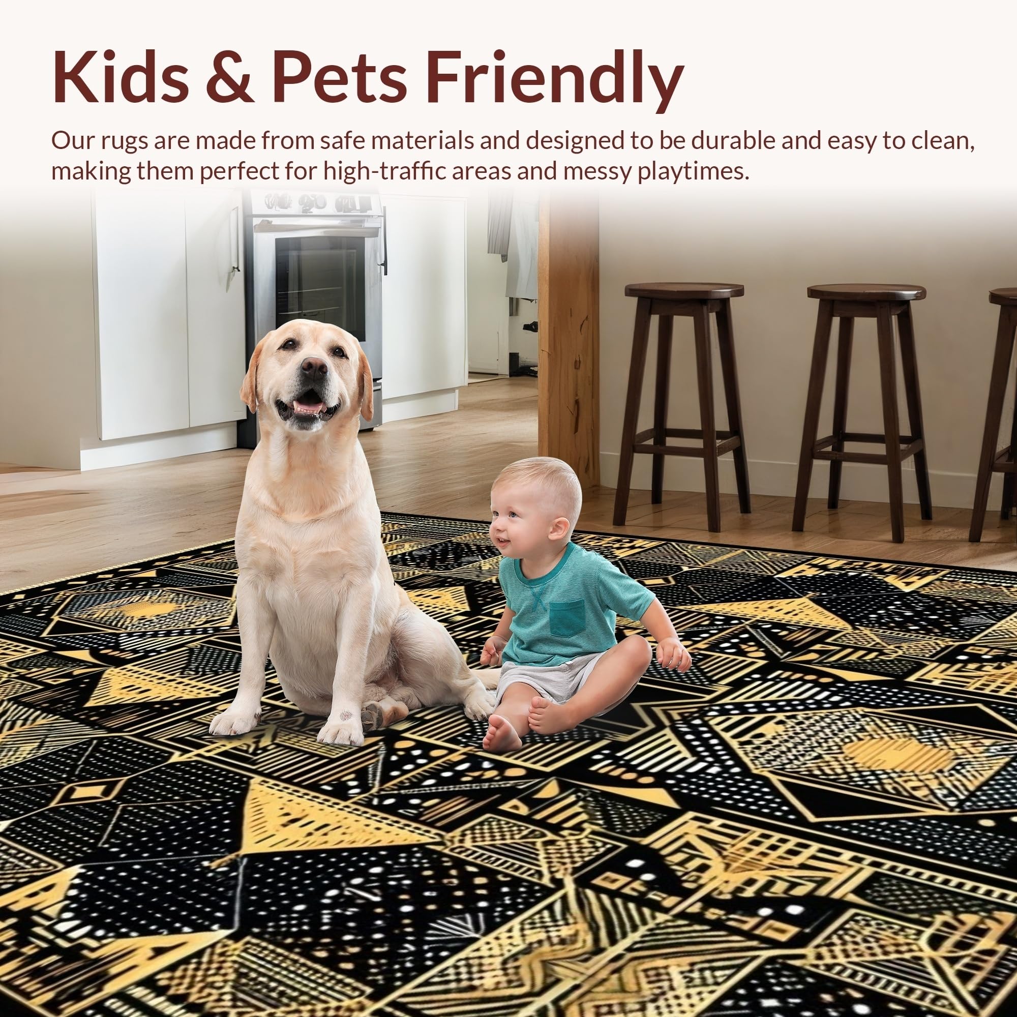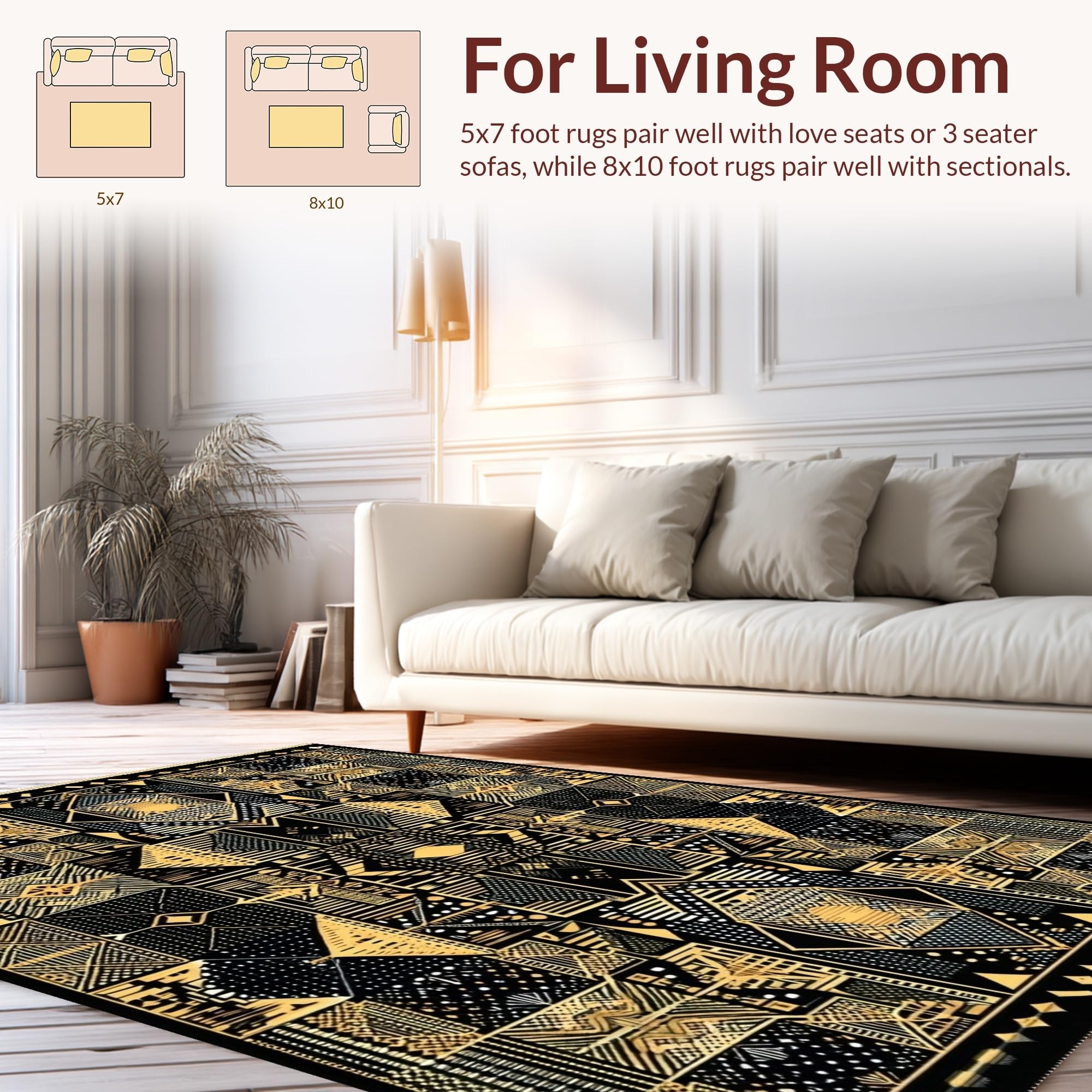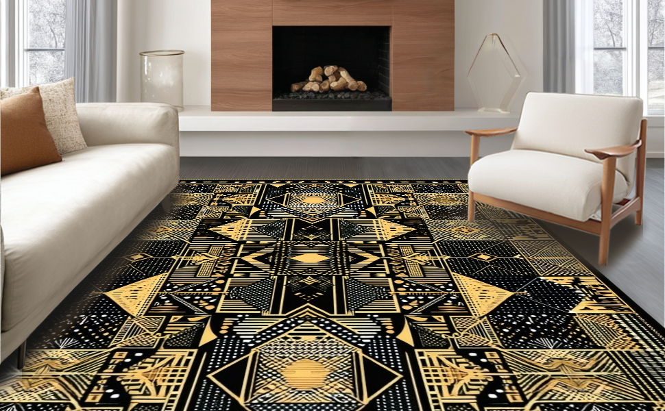 Ultra Soft Area Rug, Non Slip, Stain Resistant, Washable Area Rugs for Living Room, Bedroom, Chic Abstract Black and Gold Motif(Black) Overview: