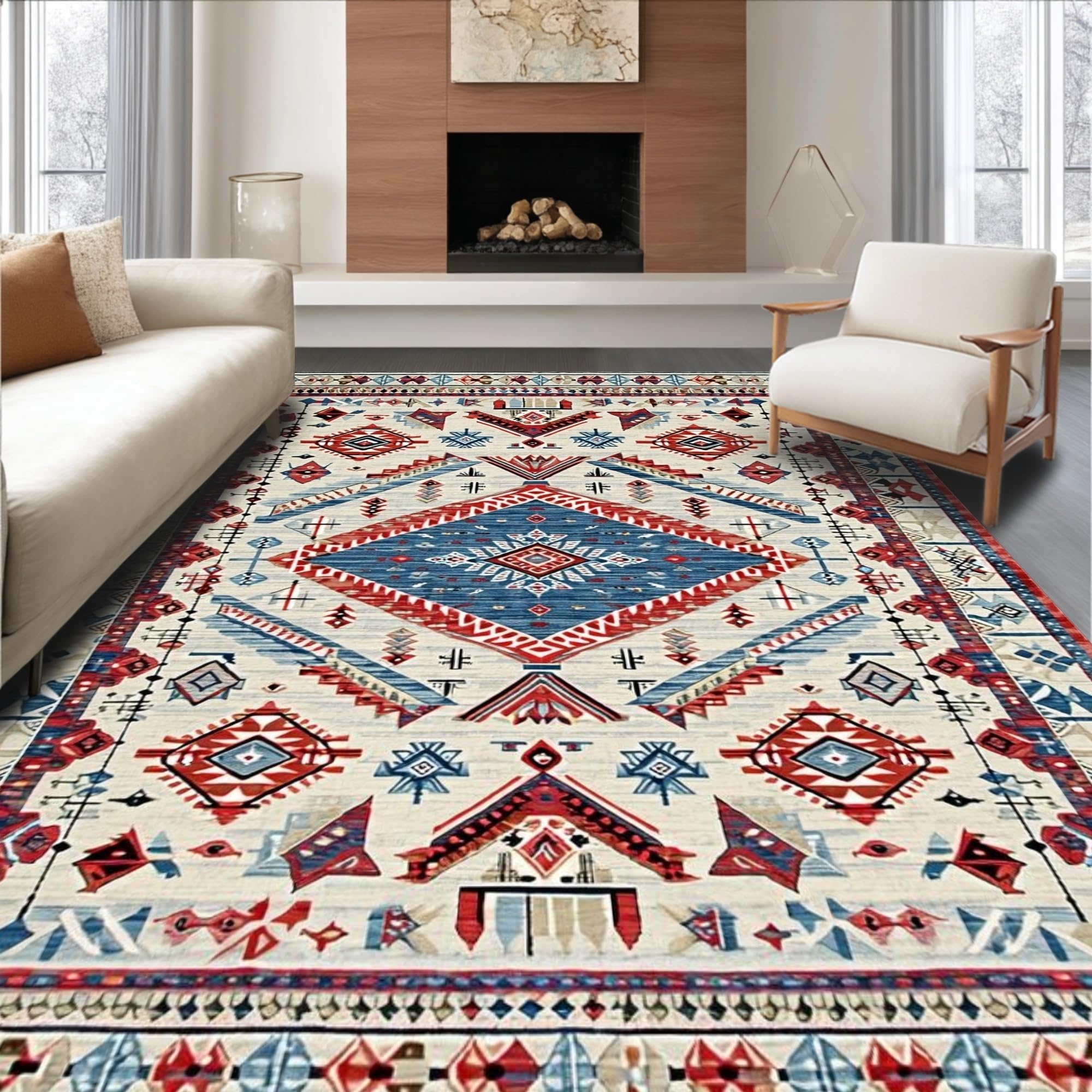 Ultra Soft Area Rug, Non Slip, Stain Resistant, Washable Area Rugs for Living Room, Bedroom, Chic Abstract Colorful Composition(White) Overview: