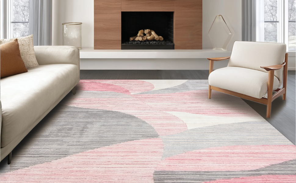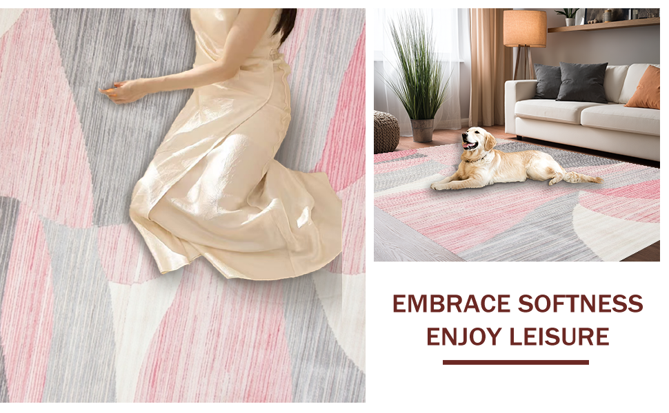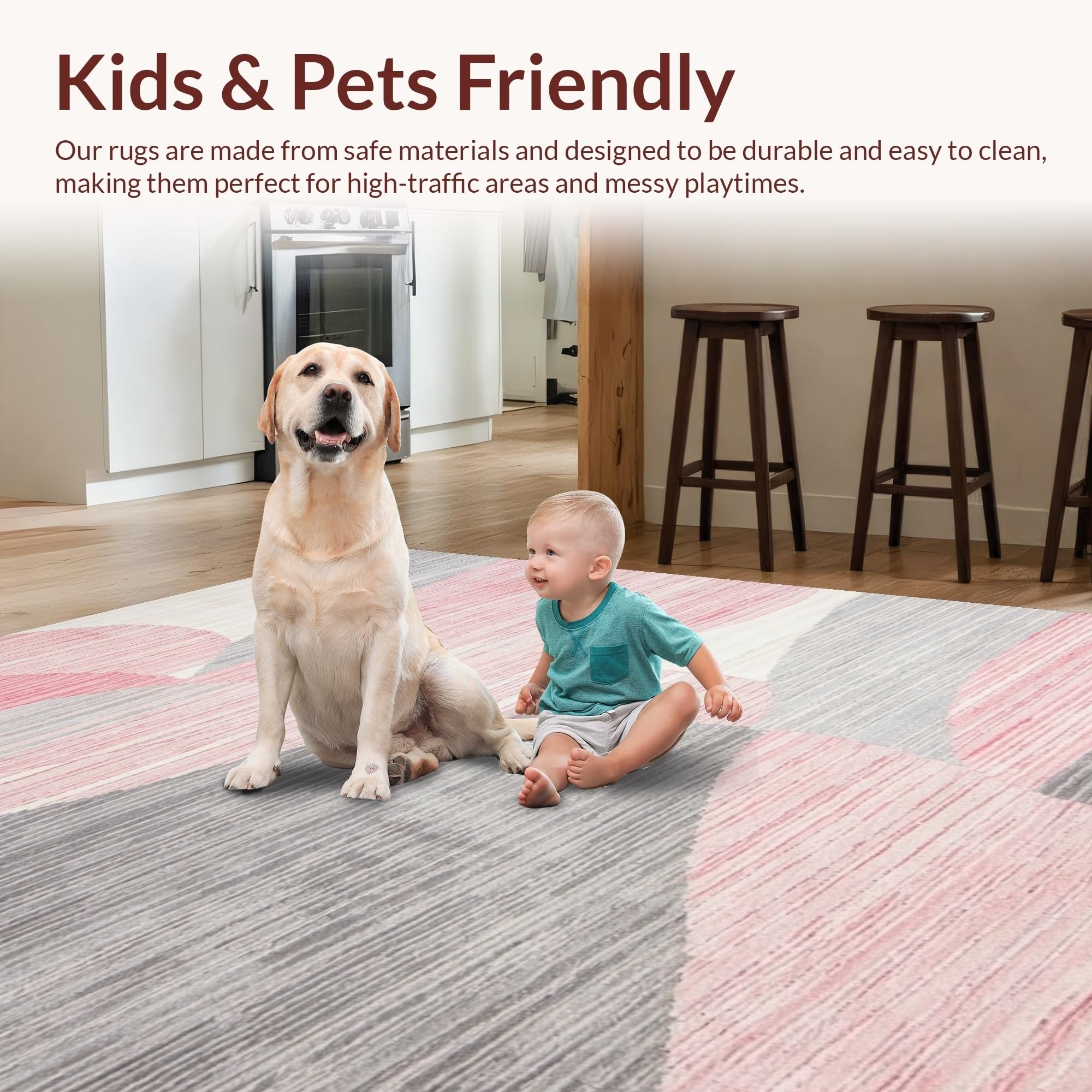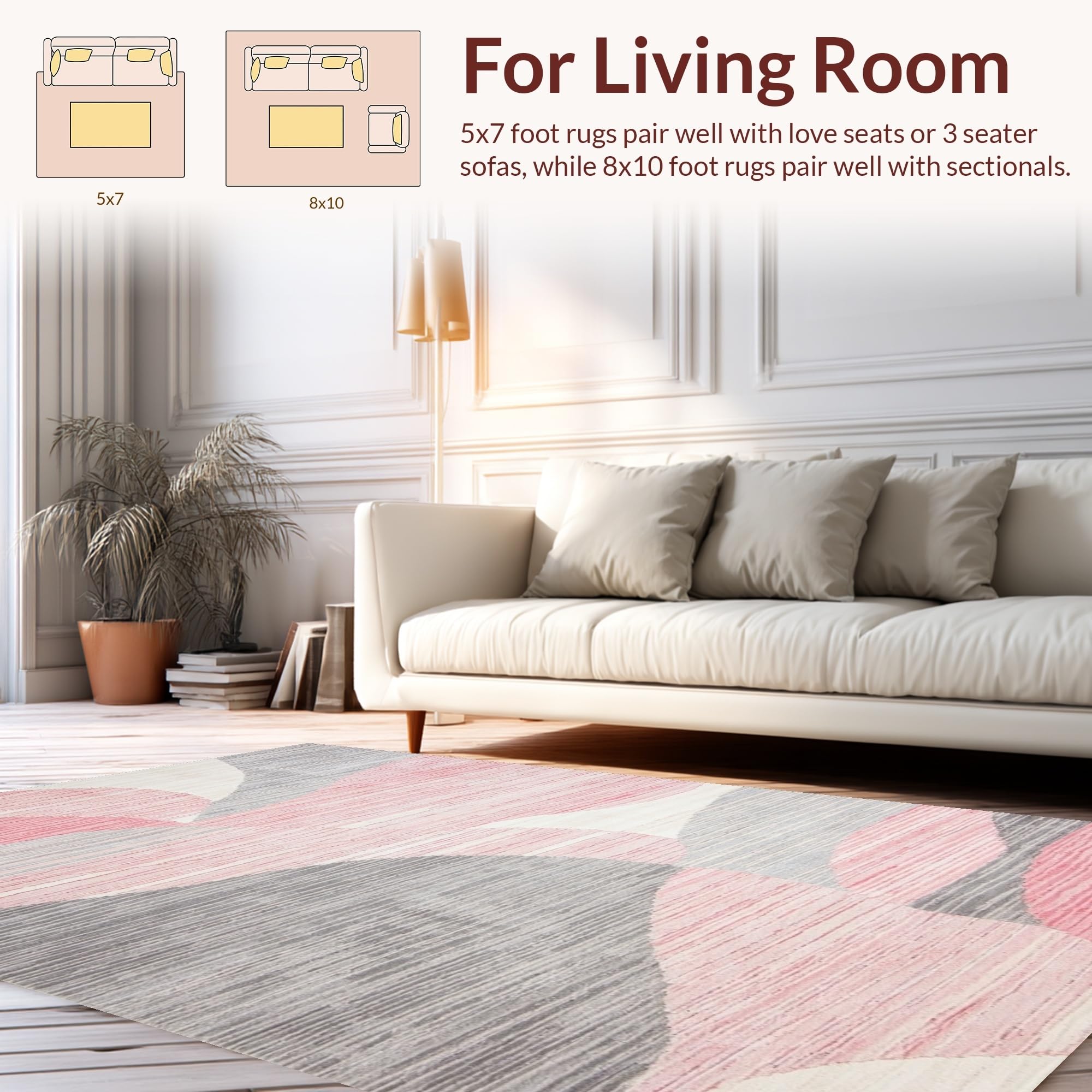 Ultra Soft Area Rug, Non Slip, Stain Resistant, Washable Area Rugs for Living Room, Bedroom, Chic Abstract Floral Inspiration(Pink) Overview: