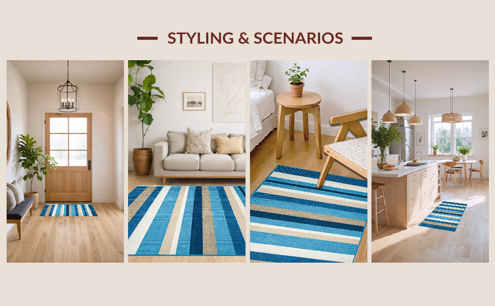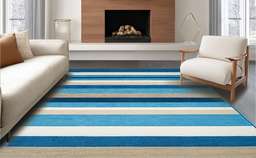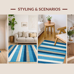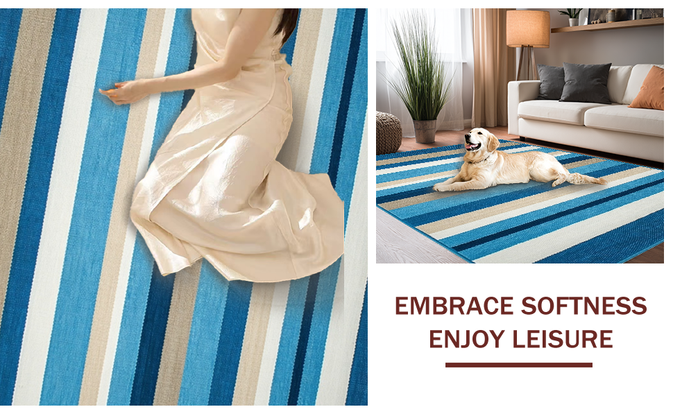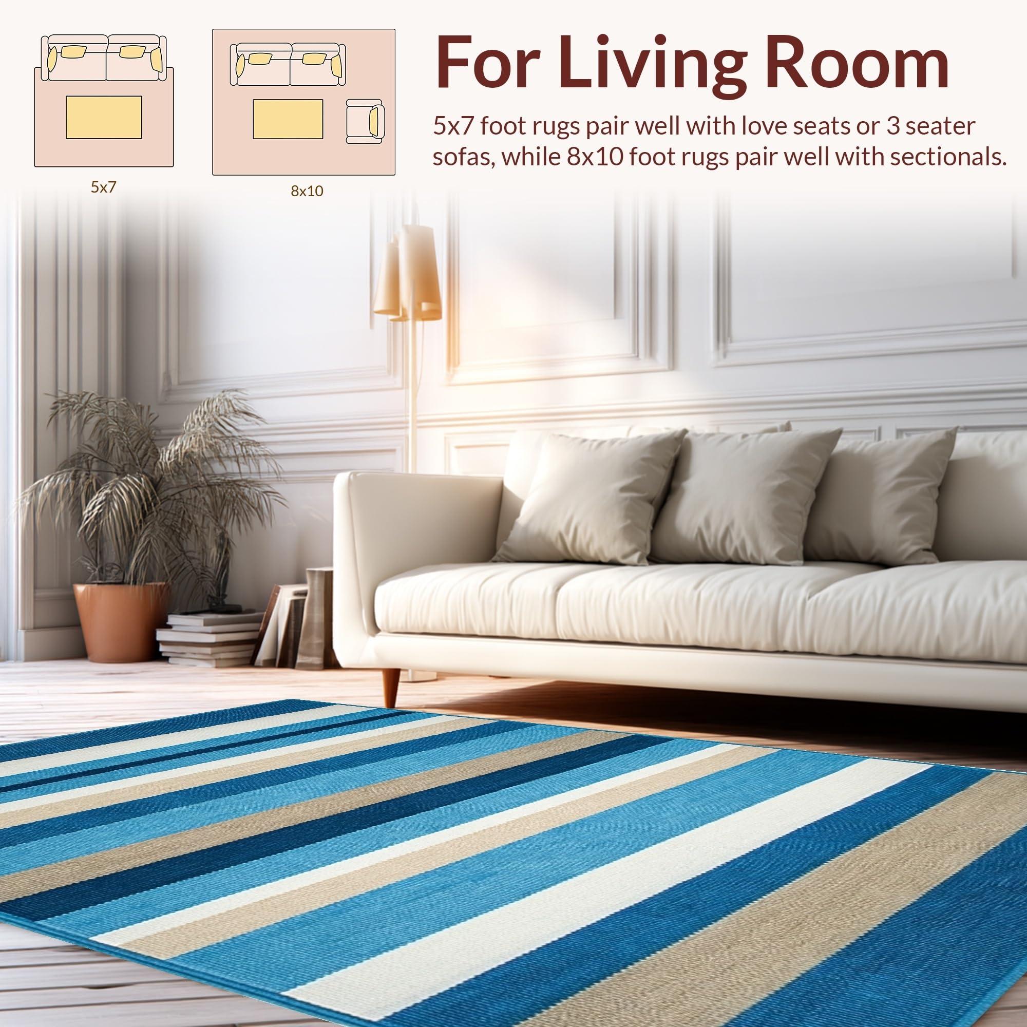 Ultra Soft Area Rug, Non Slip, Stain Resistant, Washable Area Rugs for Living Room, Bedroom, Chic Abstract Linear Aesthetic(Blue) Overview: