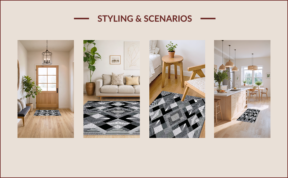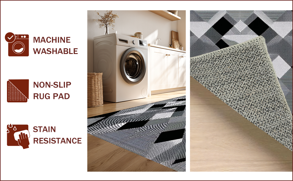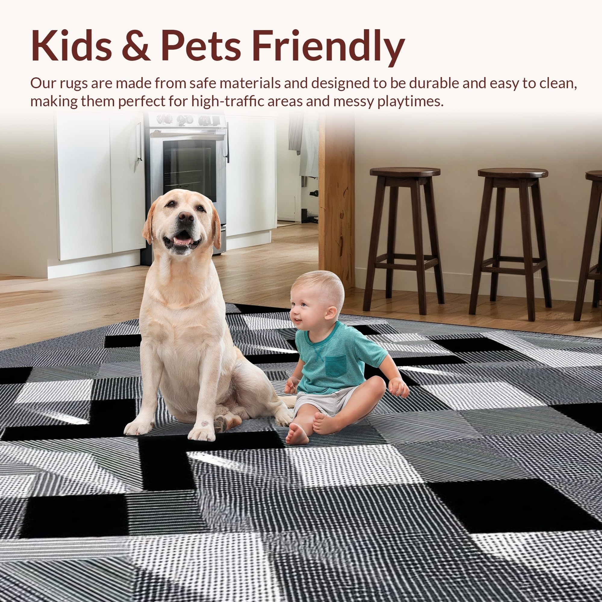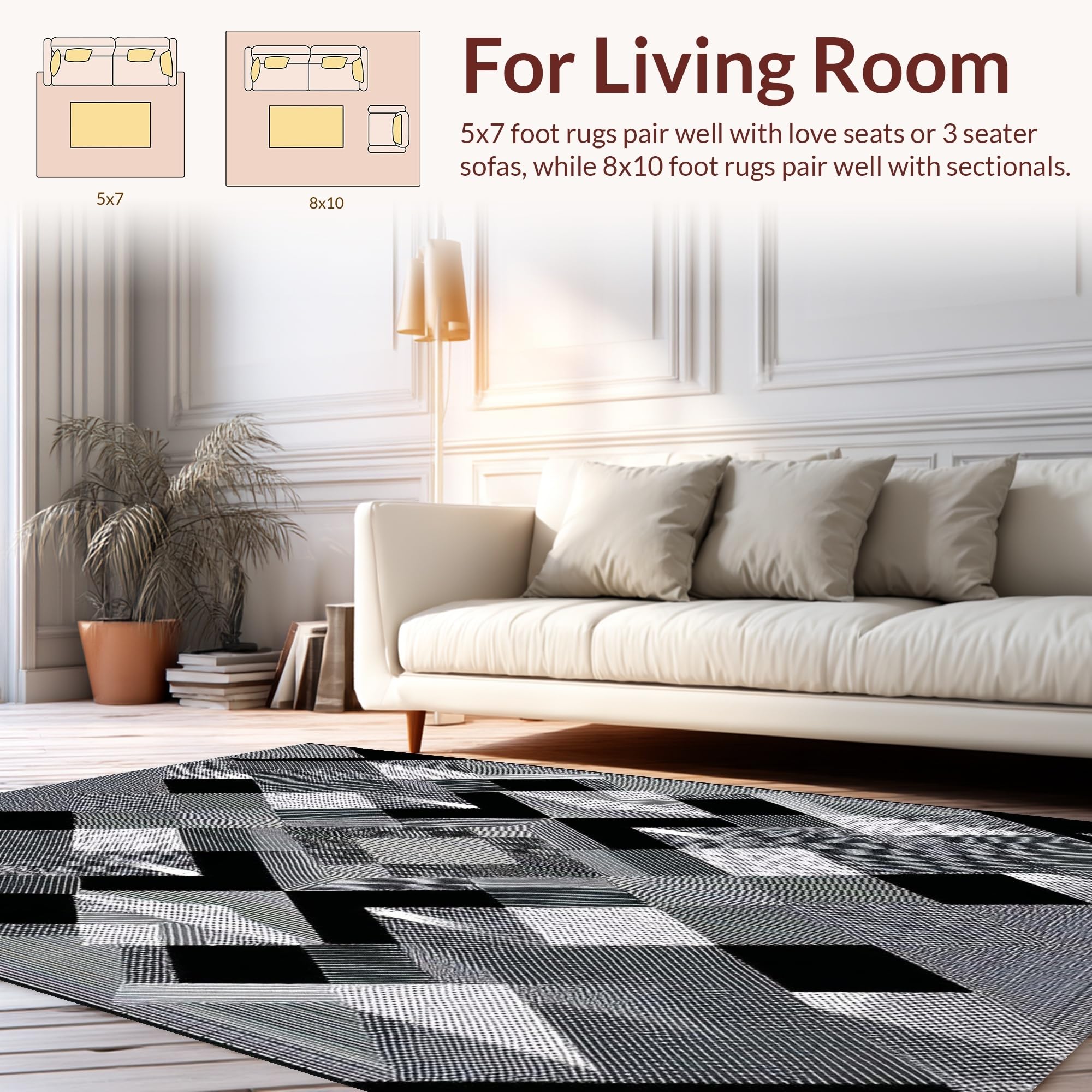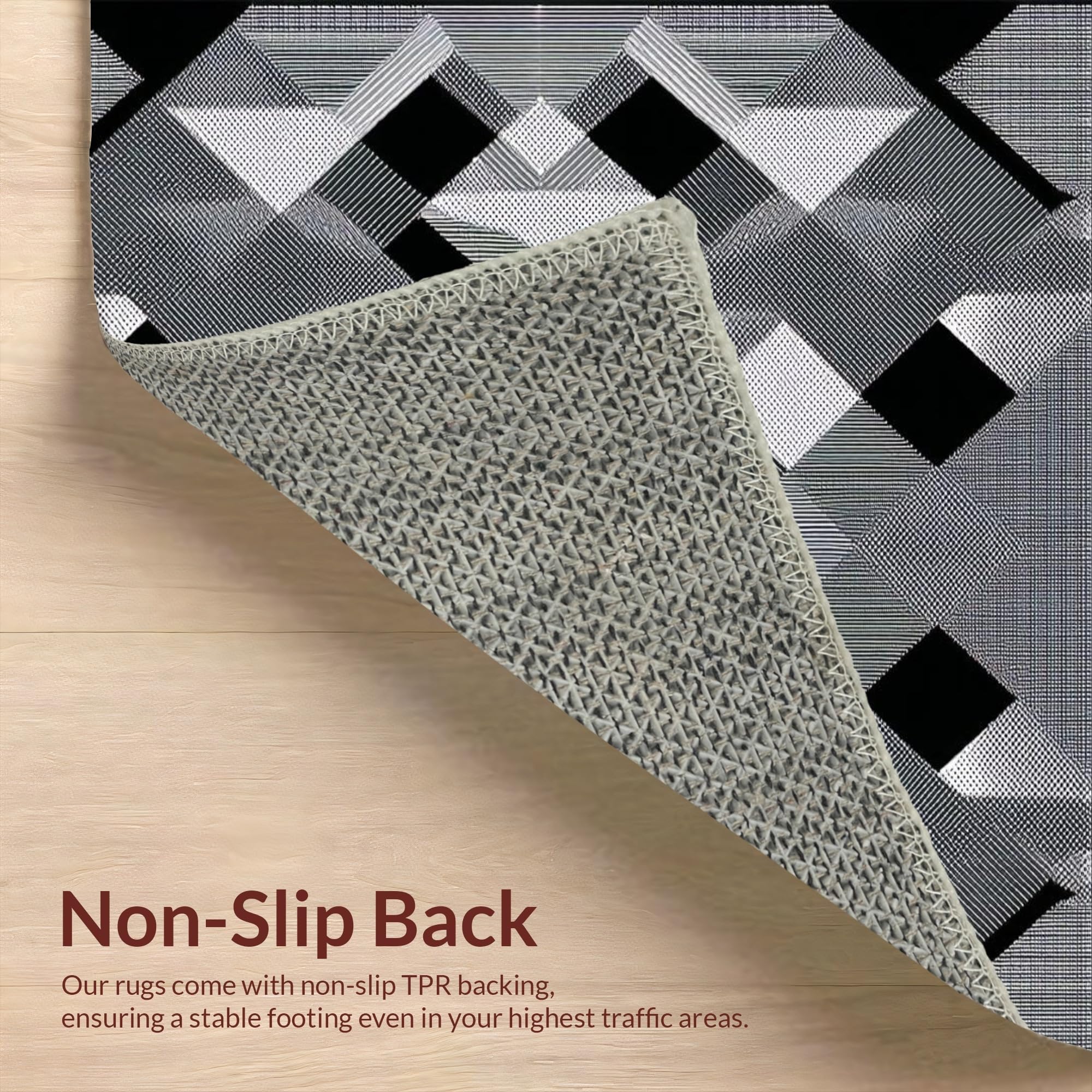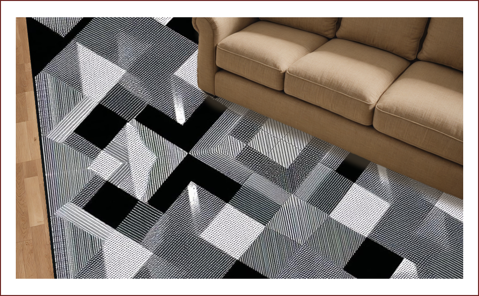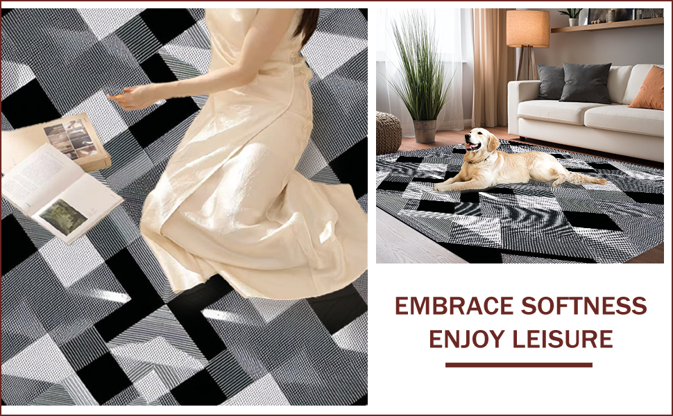 Ultra Soft Area Rug, Non Slip, Stain Resistant, Washable Area Rugs for Living Room, Bedroom, Chic Abstract Monochrome Composition(Black) Overview: