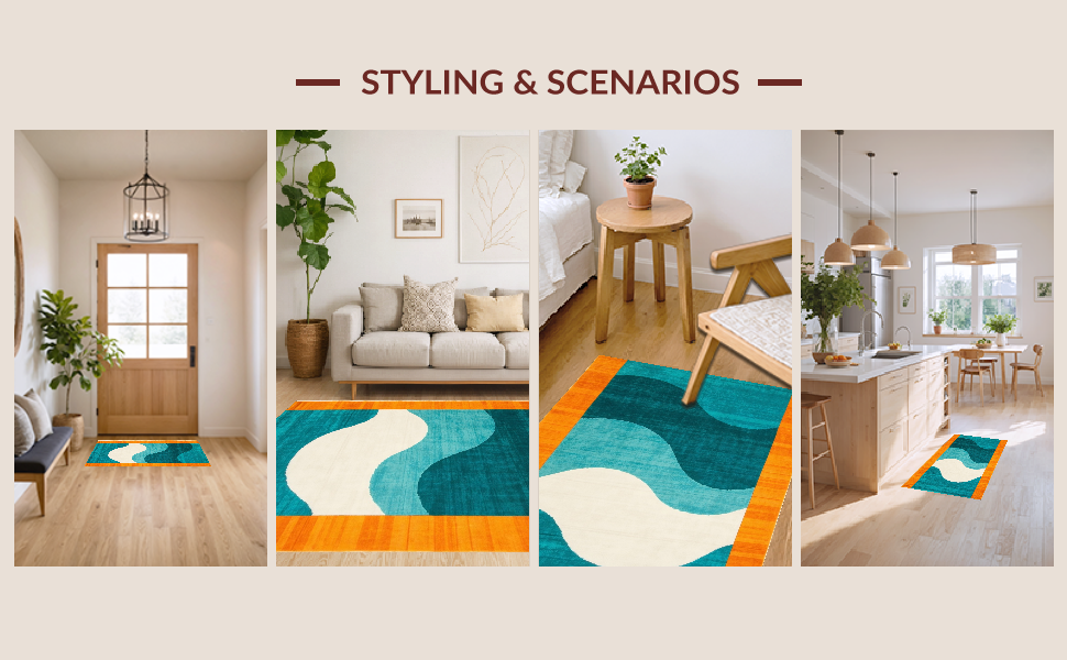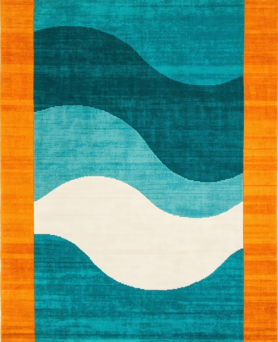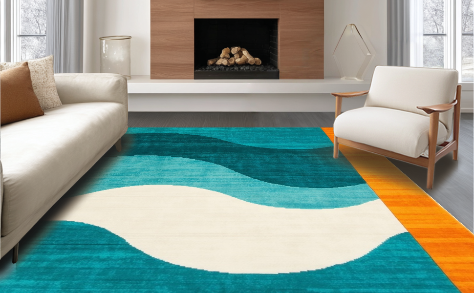 Ultra Soft Area Rug, Non Slip, Stain Resistant, Washable Area Rugs for Living Room, Bedroom, Chic Abstract Stripe Design(Blue) Overview: