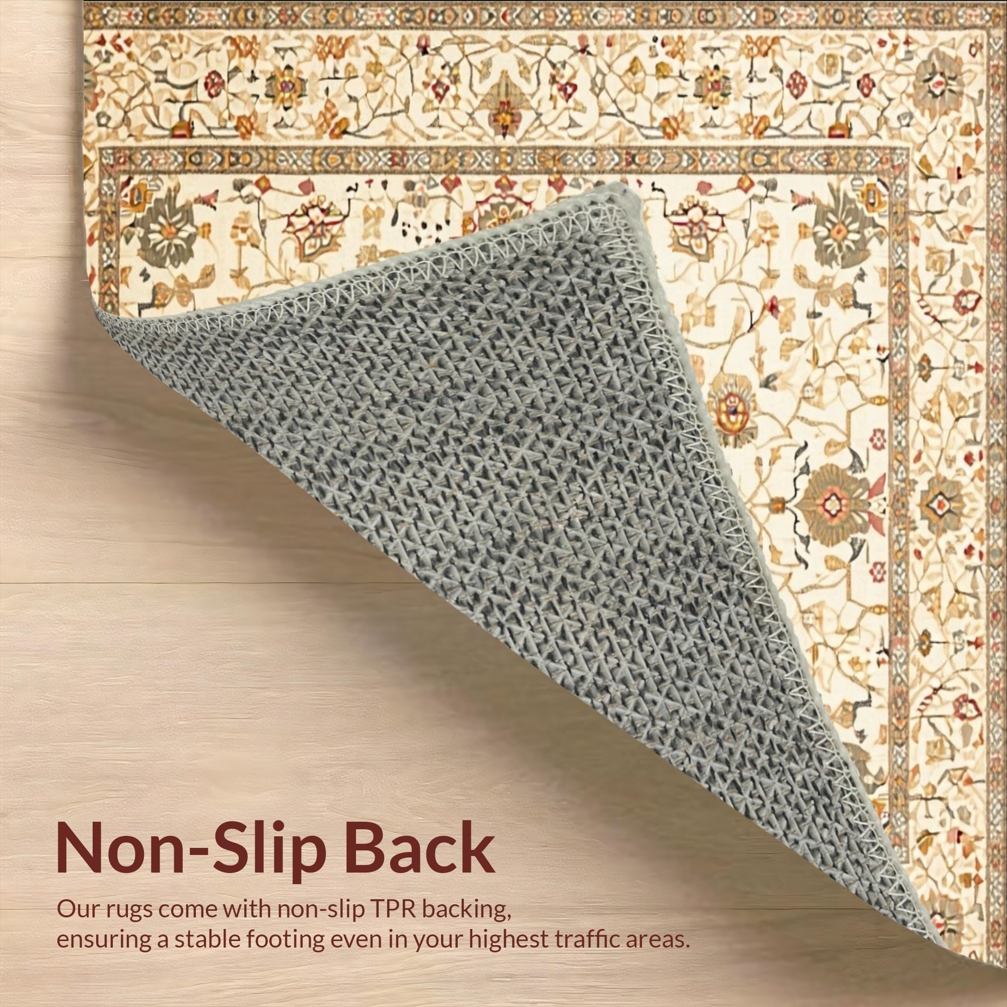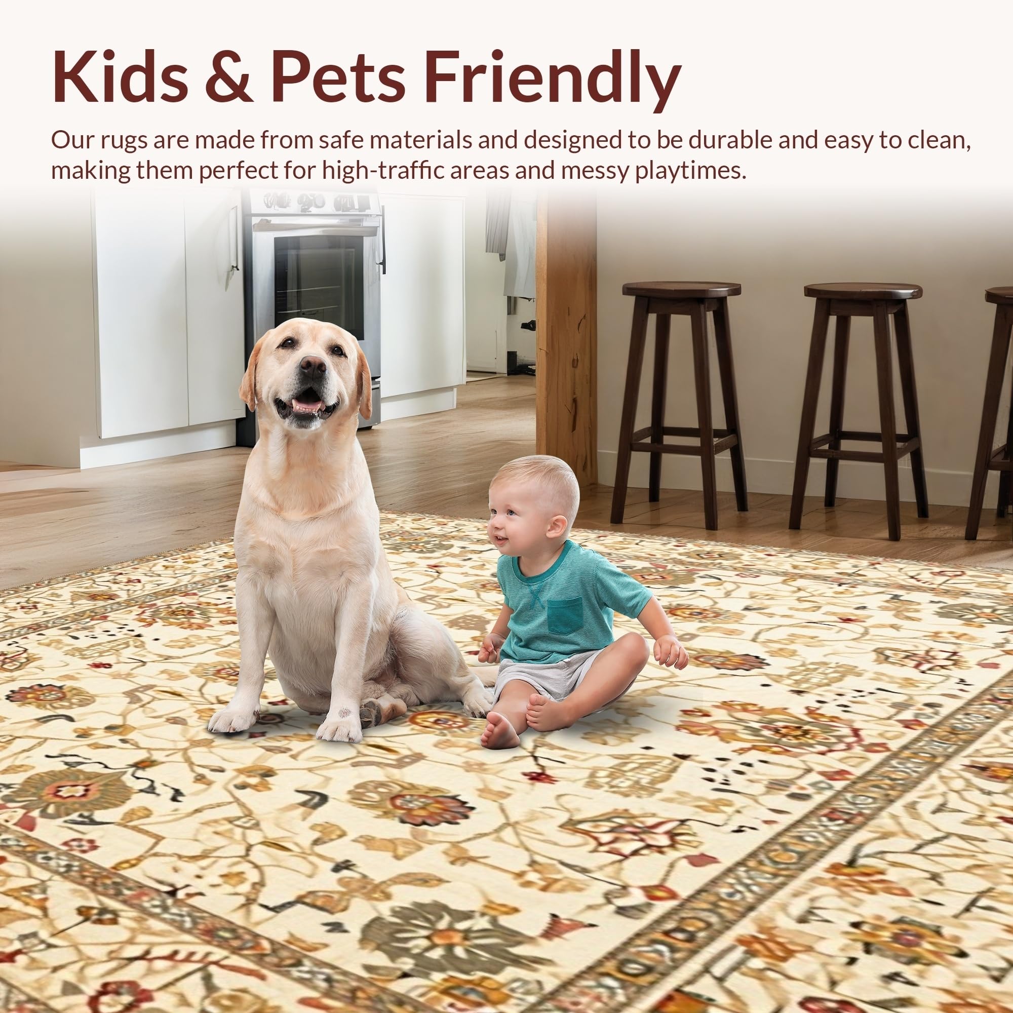 Ultra Soft Area Rug, Non Slip, Stain Resistant, Washable Area Rugs for Living Room, Bedroom, Chic Area with Abstract Animal and Elegant Floral Accents(Beige) Overview: