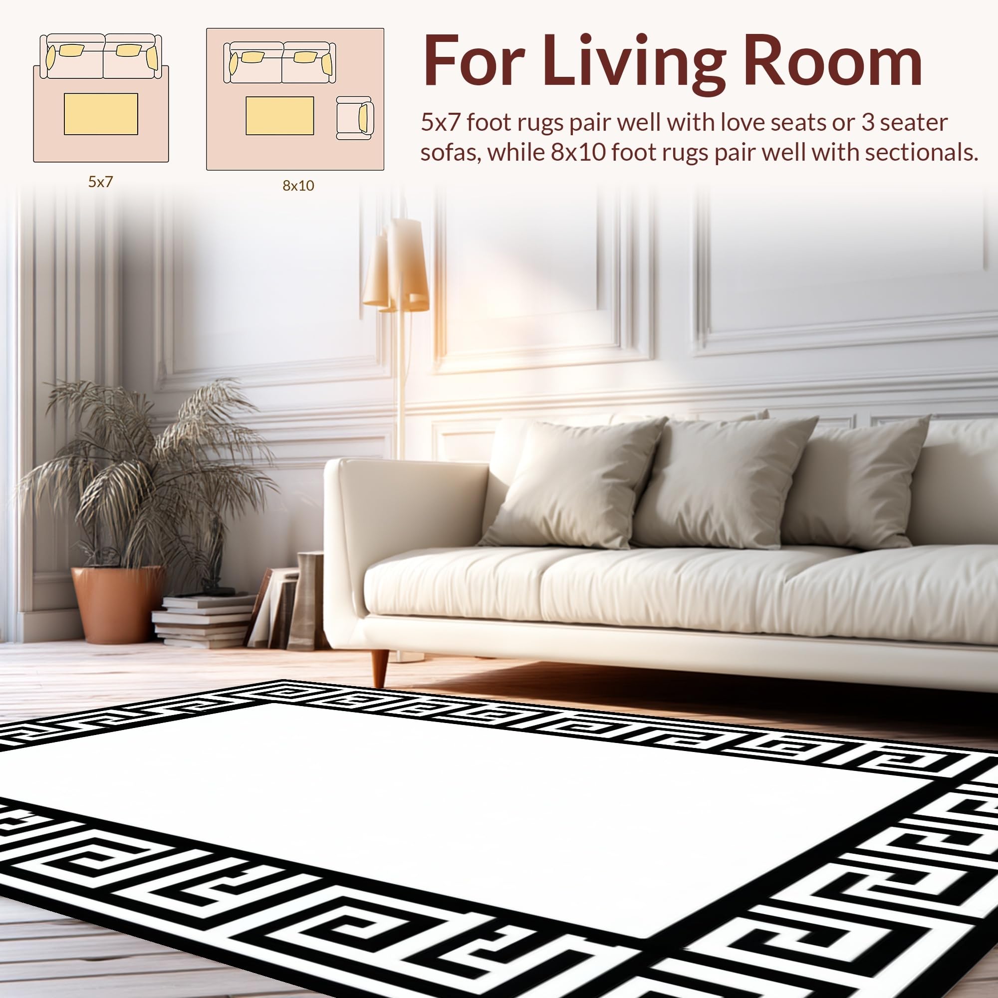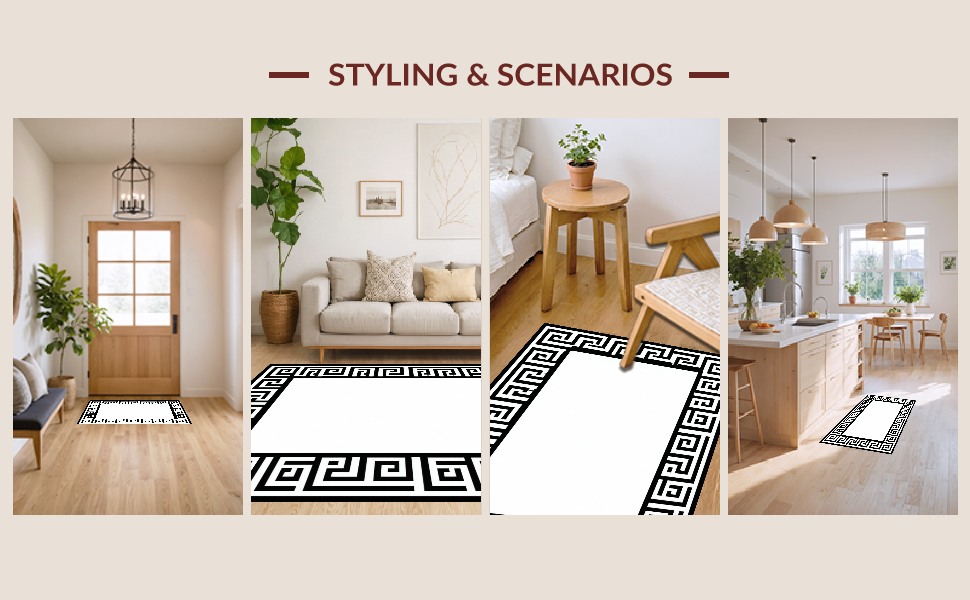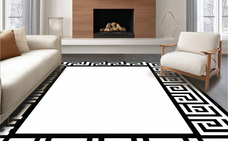 Ultra Soft Area Rug, Non Slip, Stain Resistant, Washable Area Rugs for Living Room, Bedroom, Chic Black and Ivory Striped Elegance(Black) Overview: