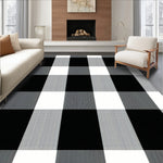 Flatwoven High Traffic Area Rug, Chic Black and Stripes, Non Slip, Stain Resistant, Washable Area Rugs for Living Room, Bedroom (Black) Overview: