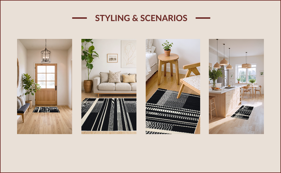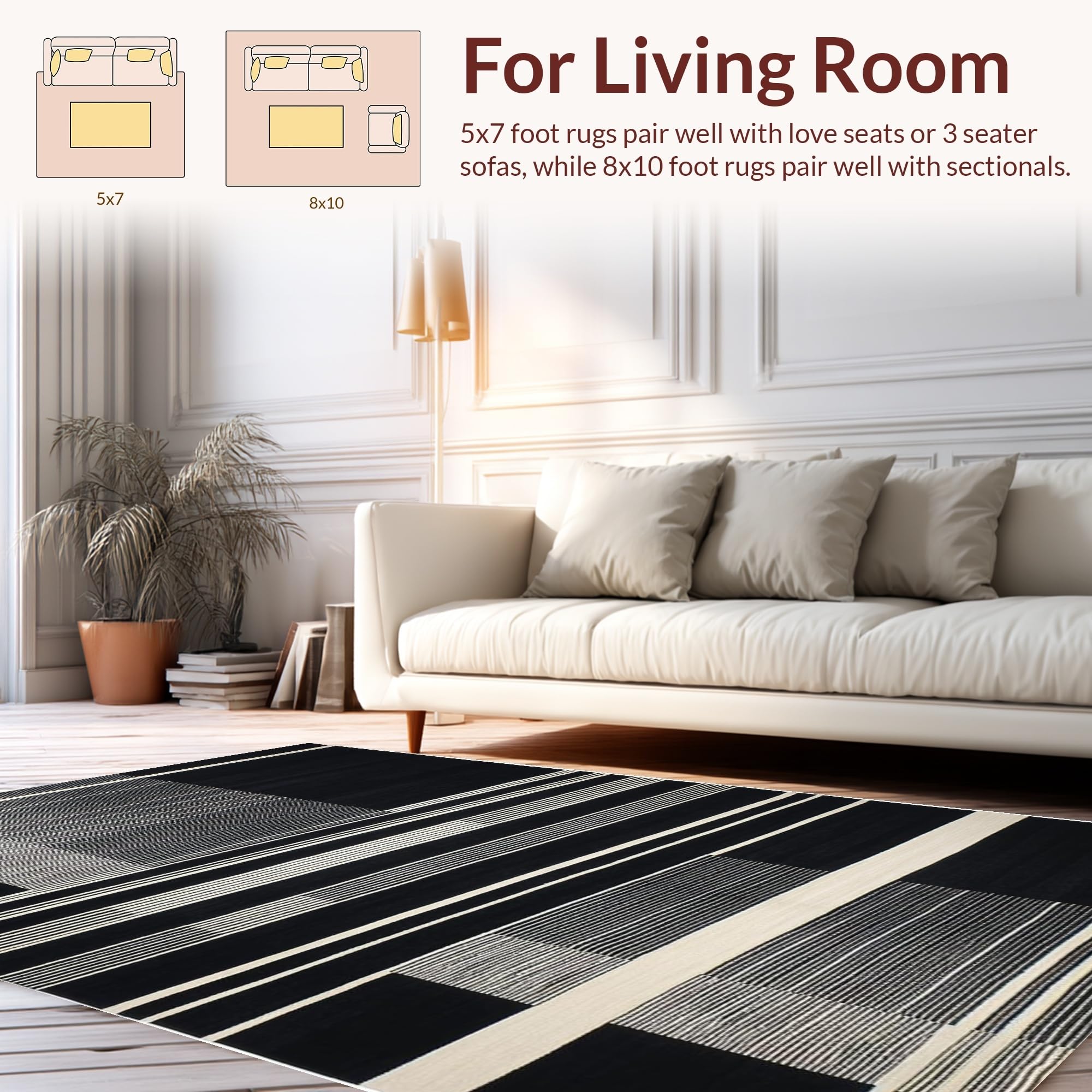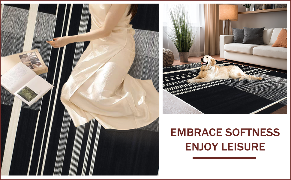 Ultra Soft Area Rug, Non Slip, Stain Resistant, Washable Area Rugs for Living Room, Bedroom, Chic Black and White Zebra Aesthetic(Black) Overview: