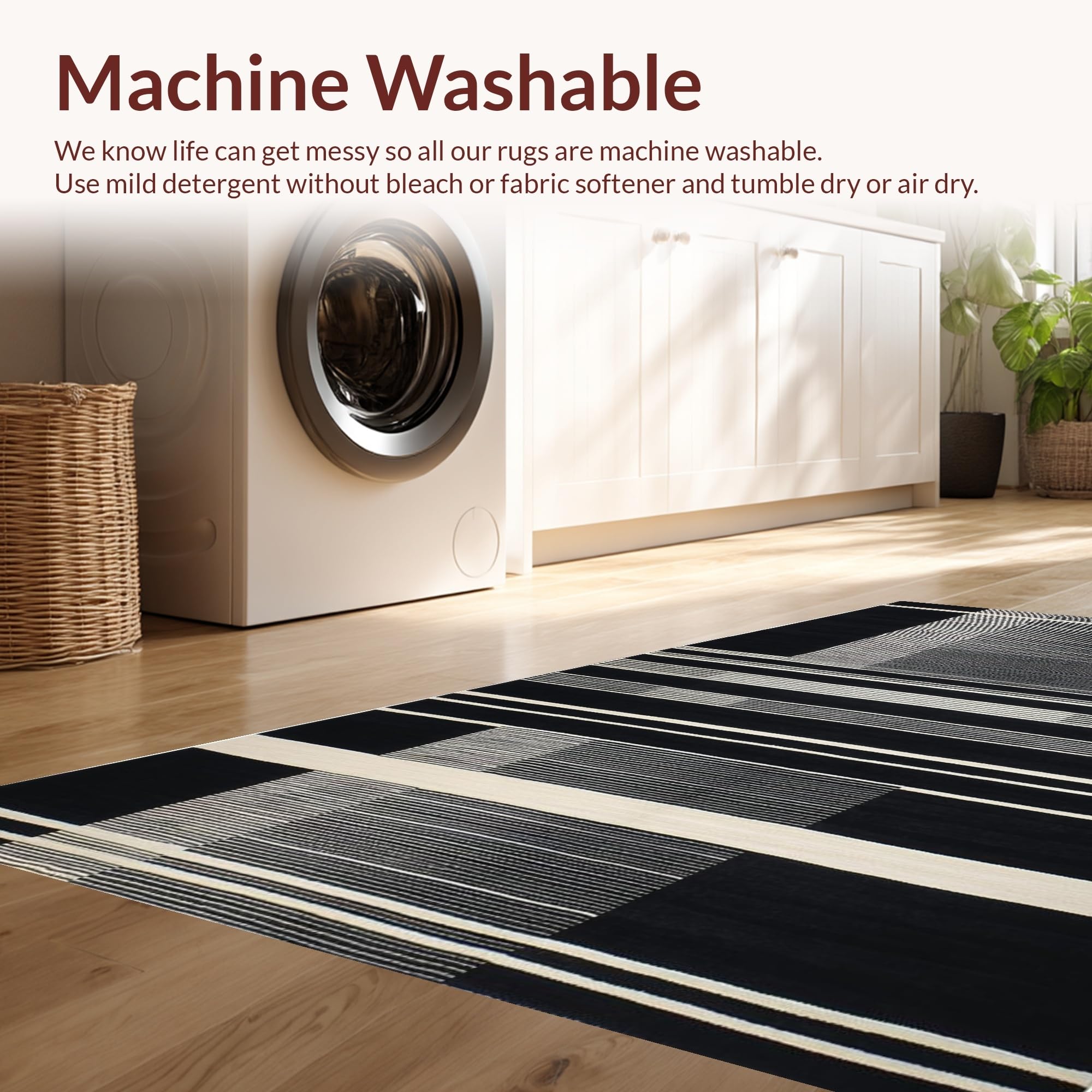 - Machine Washable: Our rugs can be easily thrown in the wash machine.