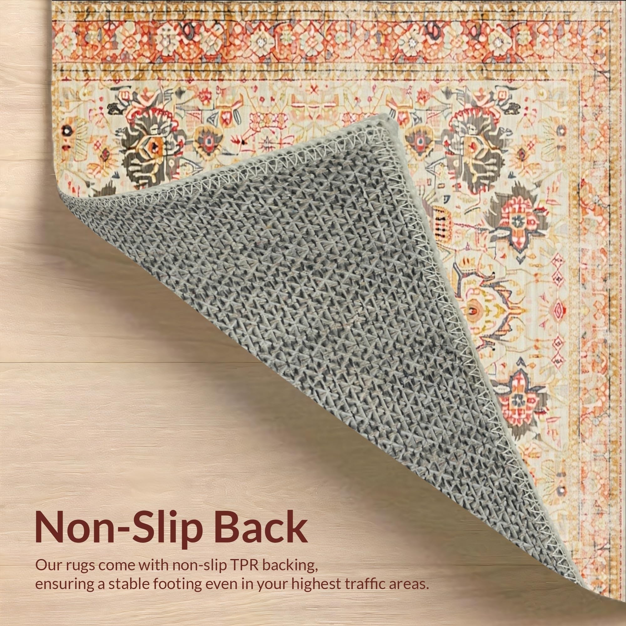 Ultra Soft Area Rug, Non Slip, Stain Resistant, Washable Area Rugs for Living Room, Bedroom, Chic Boho Inspired Area With Elegant Floral(Beige) Overview: