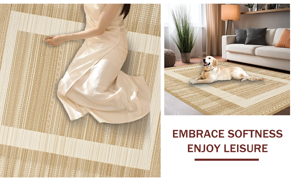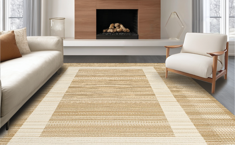 Ultra Soft Area Rug, Non Slip, Stain Resistant, Washable Area Rugs for Living Room, Bedroom, Chic Coastal Jute Motif(Beige) Overview: