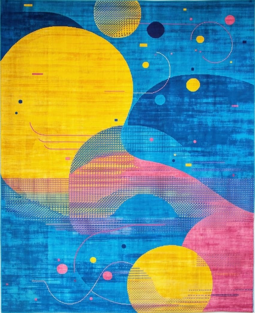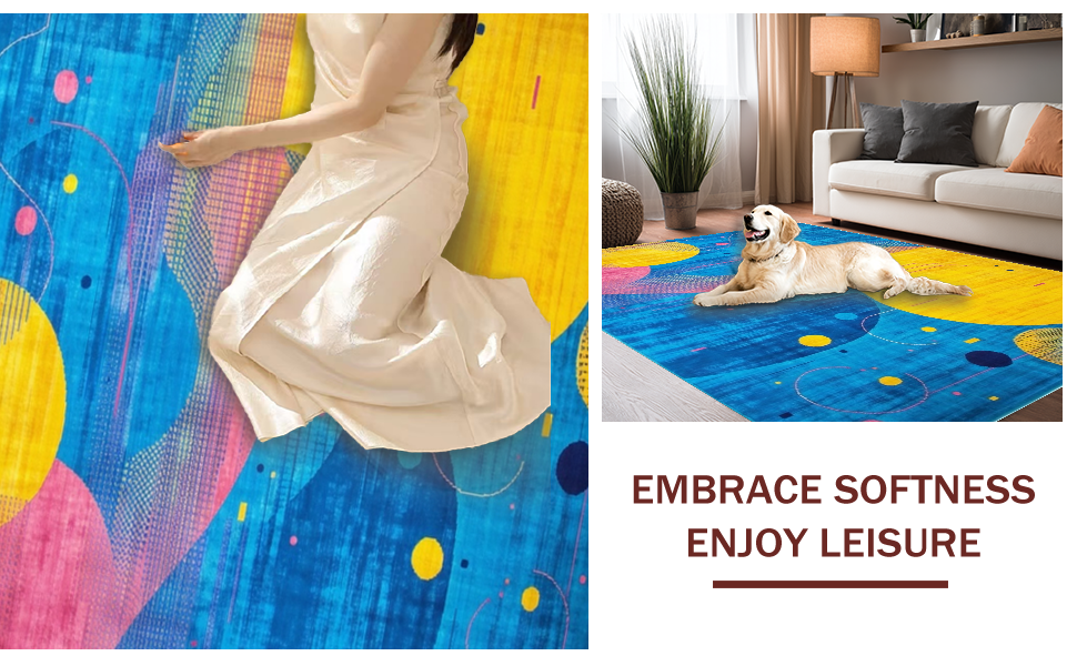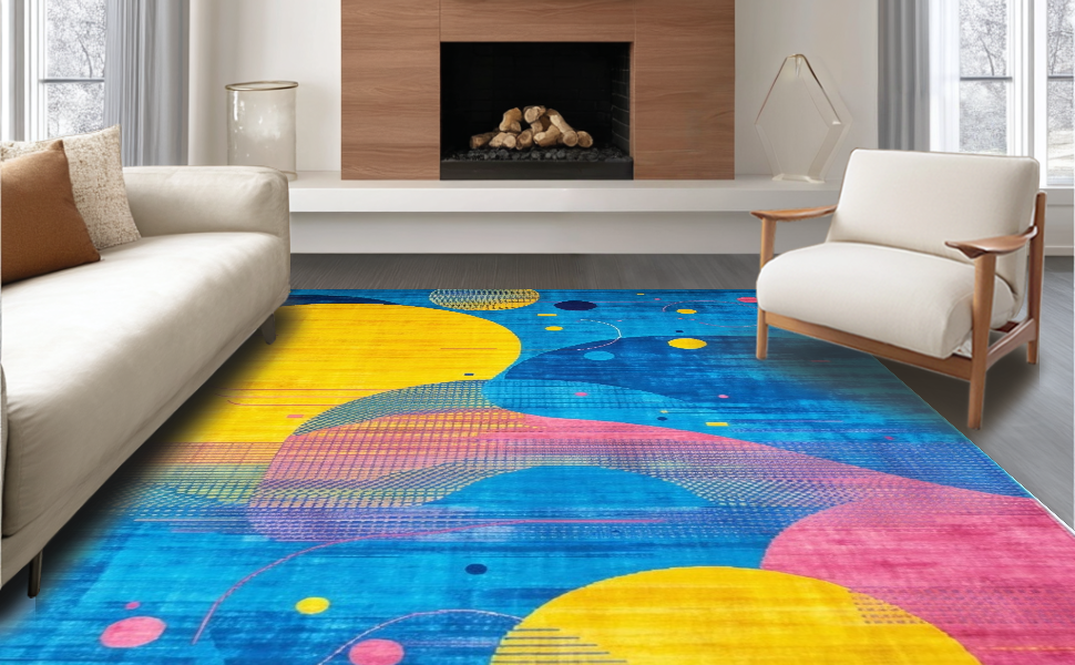 Ultra Soft Area Rug, Non Slip, Stain Resistant, Washable Area Rugs for Living Room, Bedroom, Chic Color Blocked Composition(Blue) Overview: