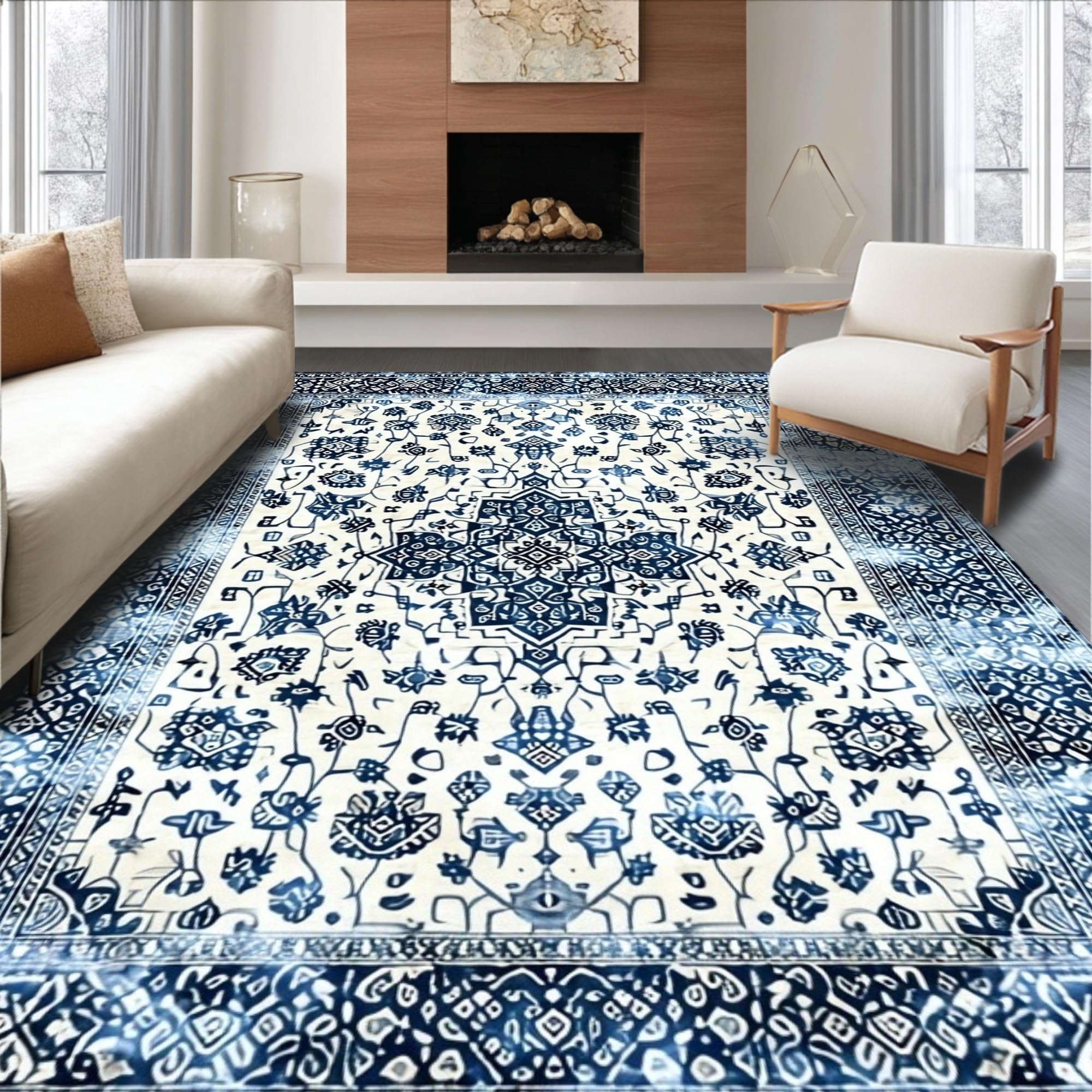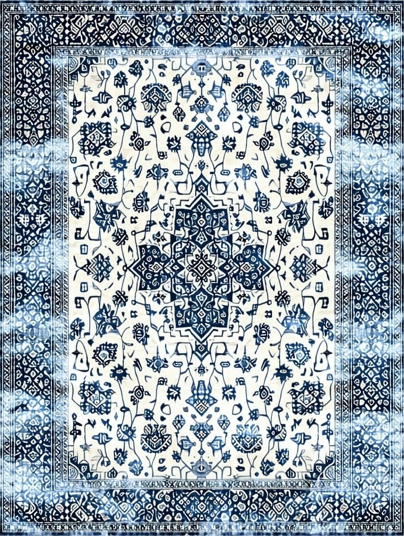 Ultra Soft Area Rug, Non Slip, Stain Resistant, Washable Area Rugs for Living Room, Bedroom, Chic Color-Blocked Floral Motif(White) Overview: