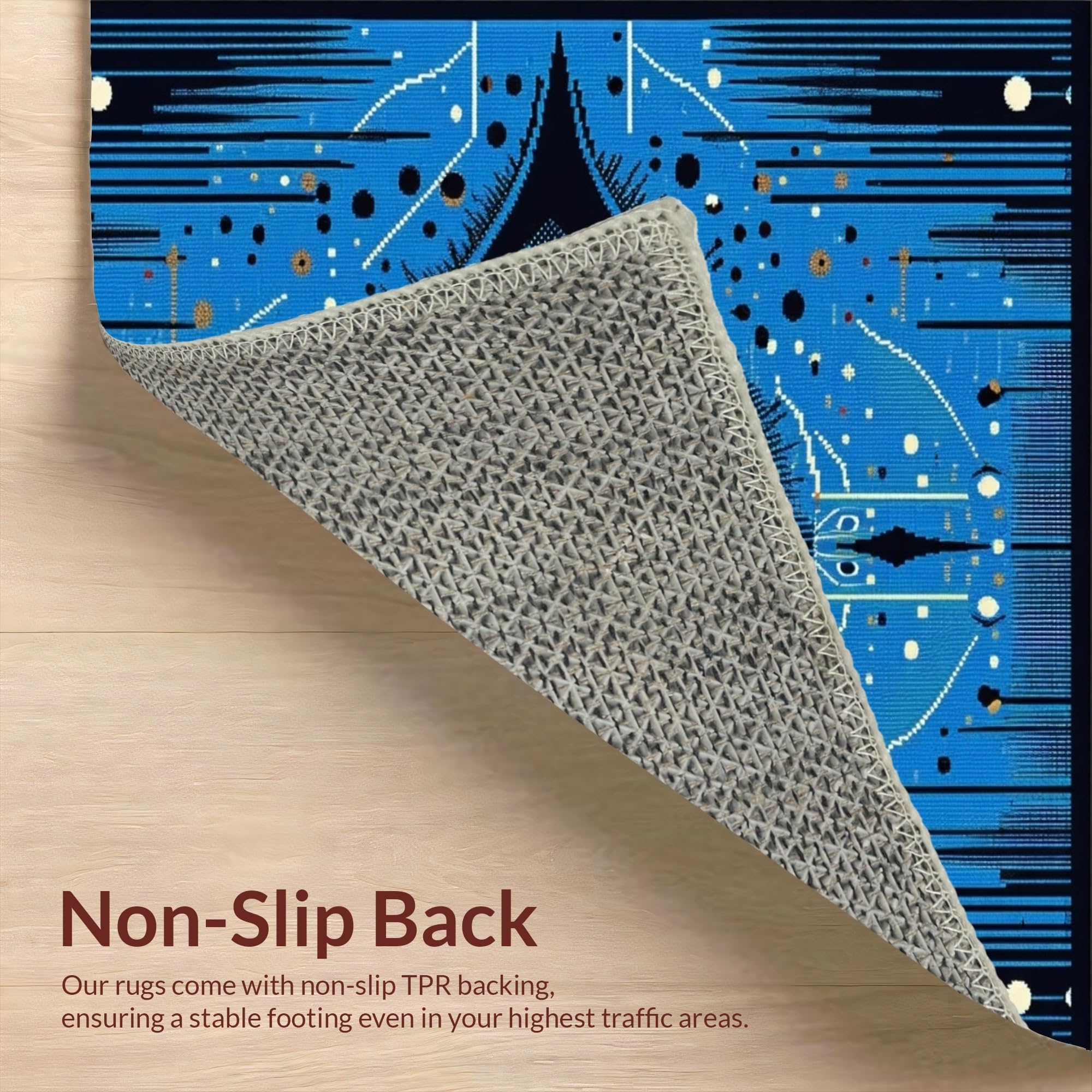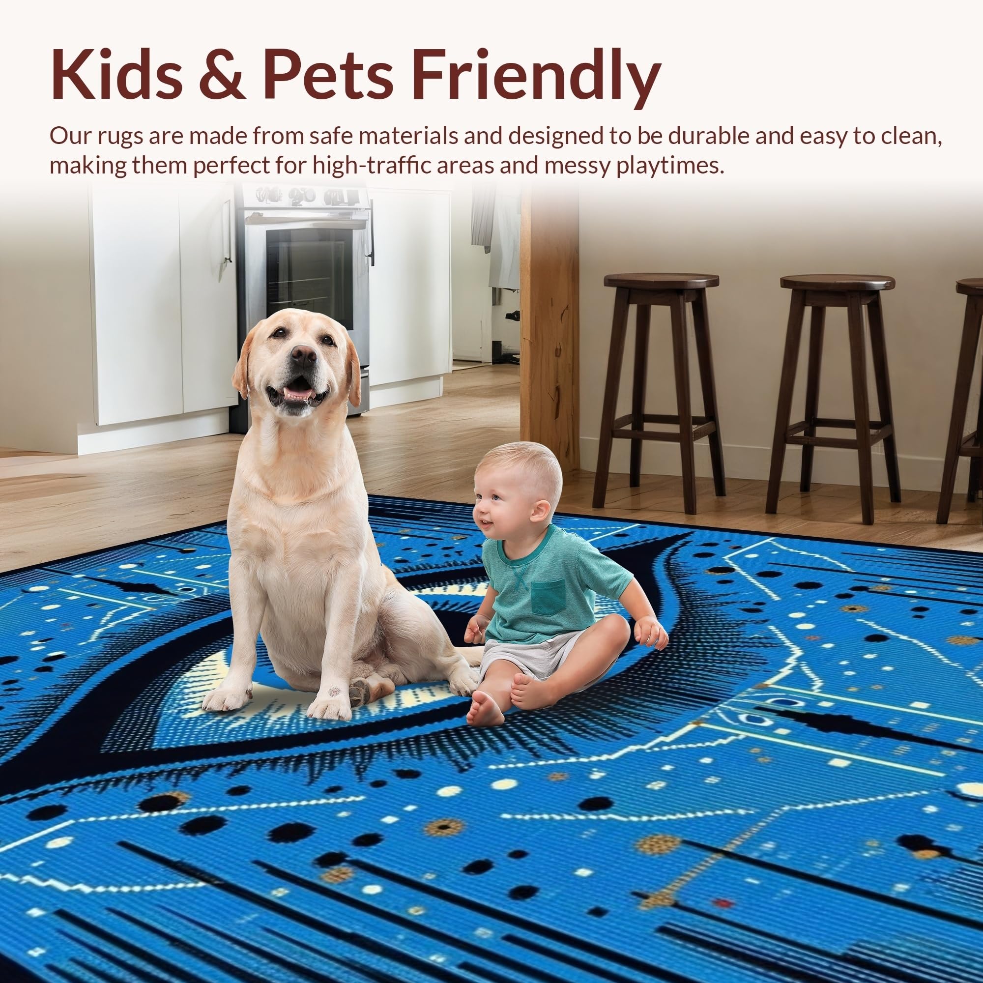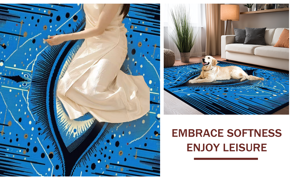 Ultra Soft Area Rug, Non Slip, Stain Resistant, Washable Area Rugs for Living Room, Bedroom, Chic Colorful Tiled Artwork(Blue) Overview: