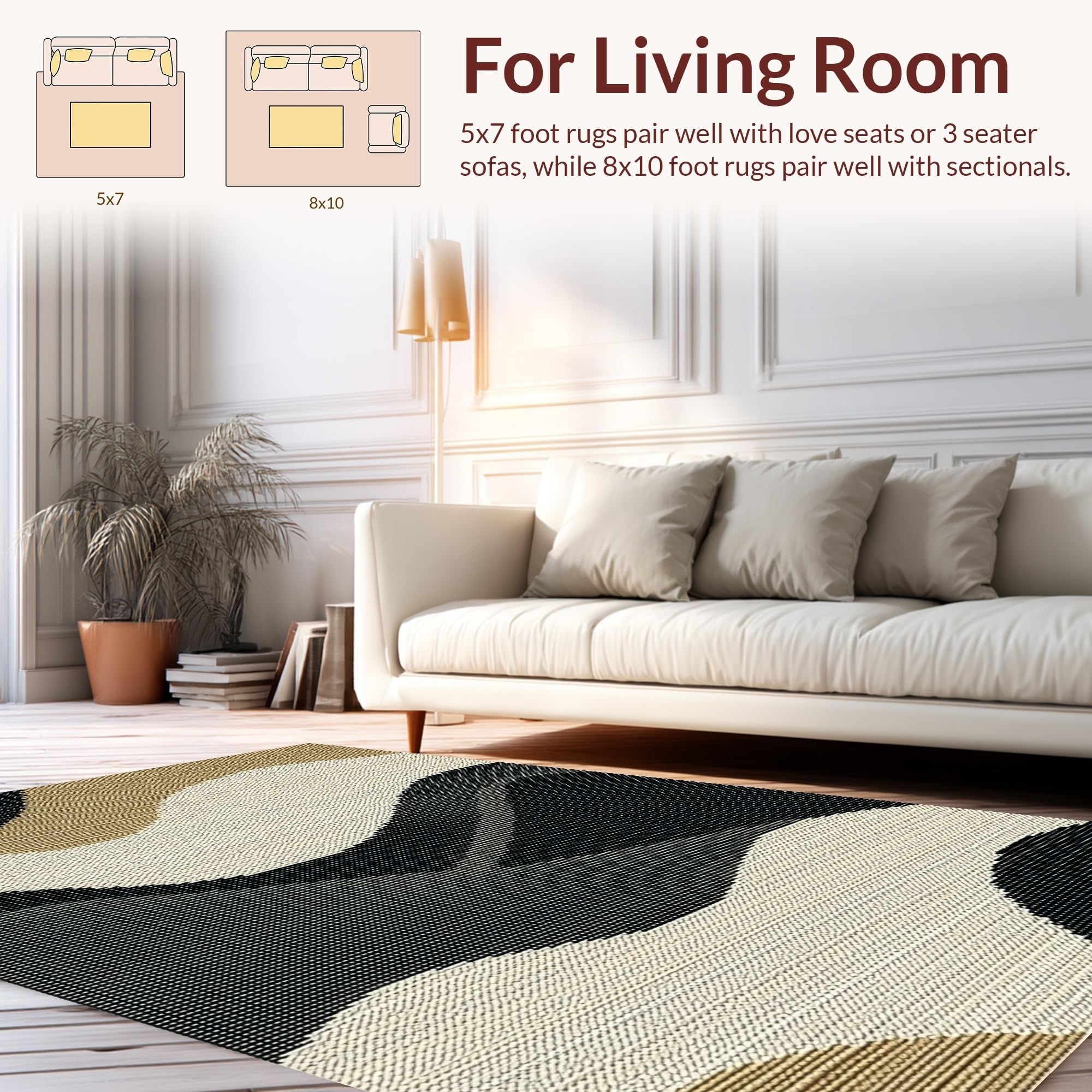 Ultra Soft Area Rug, Non Slip, Stain Resistant, Washable Area Rugs for Living Room, Bedroom, Chic Contemporary Coastal Theme(Beige) Overview: