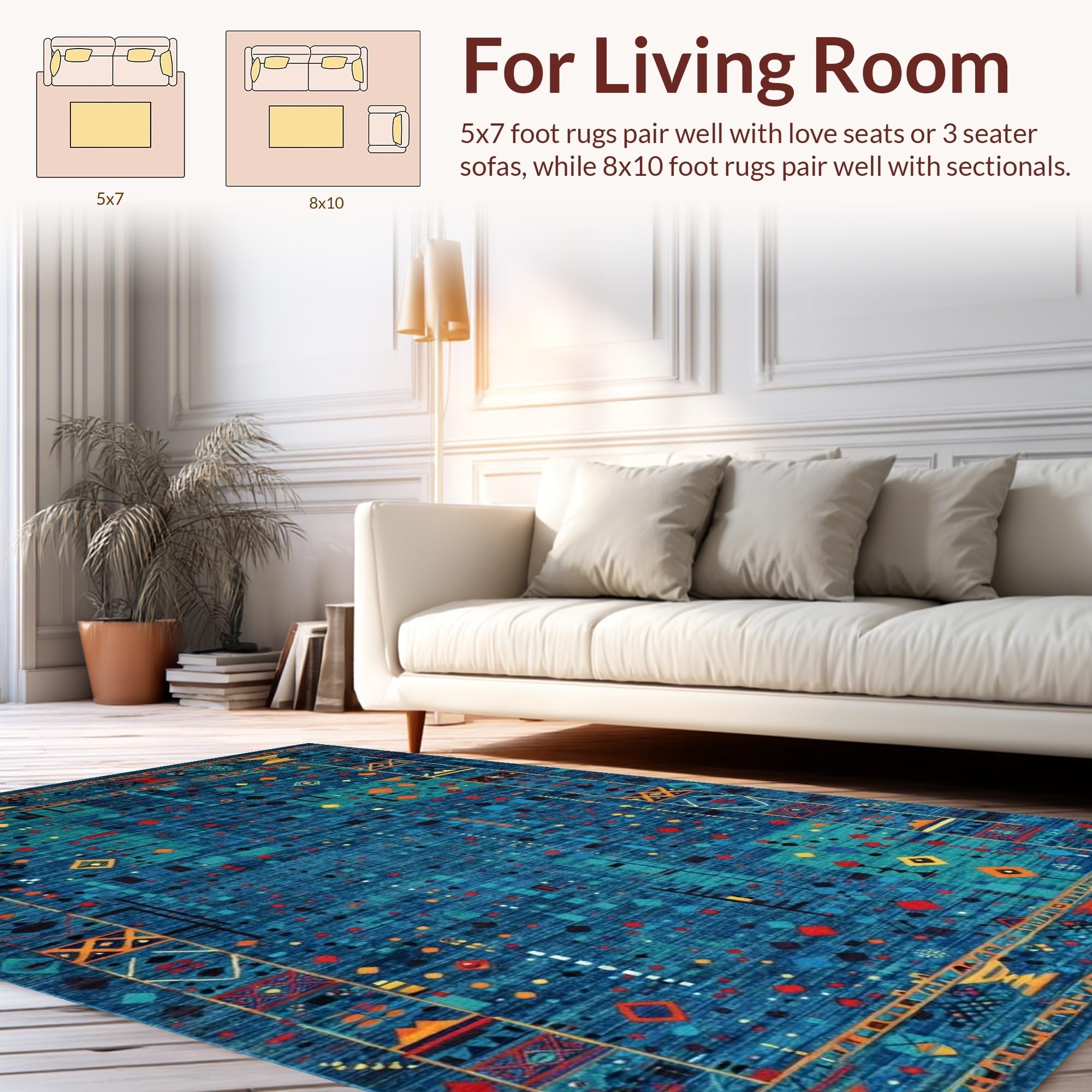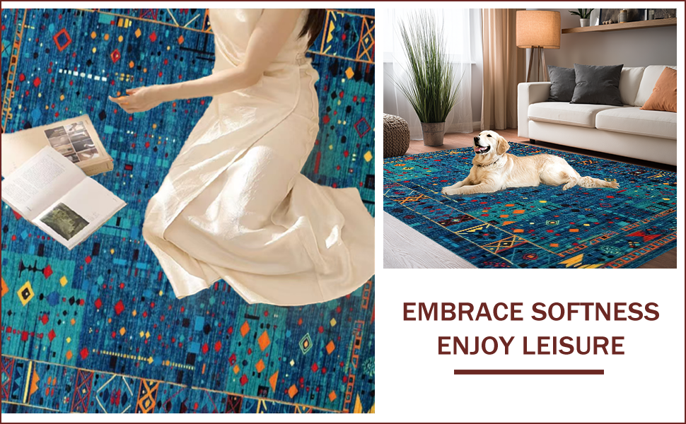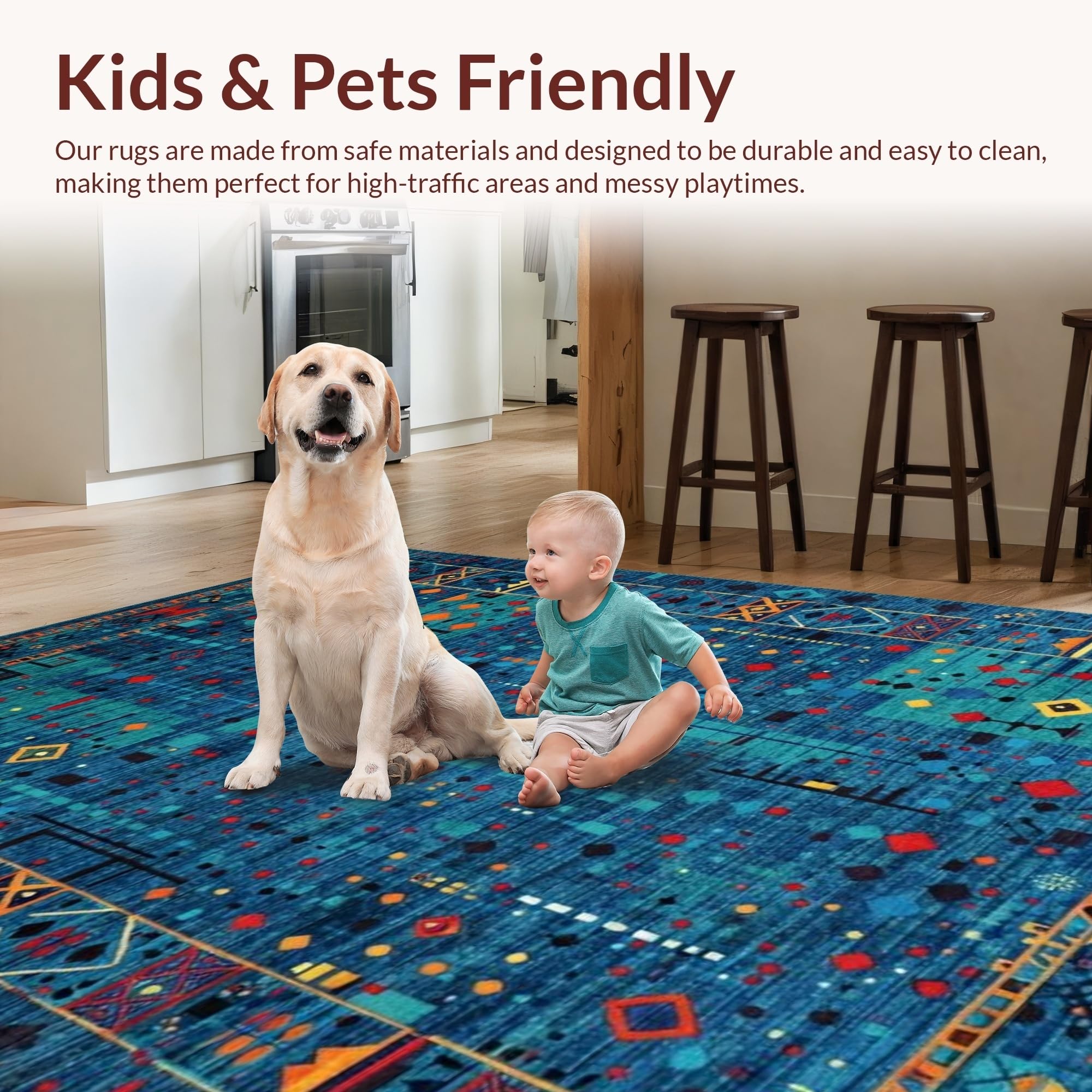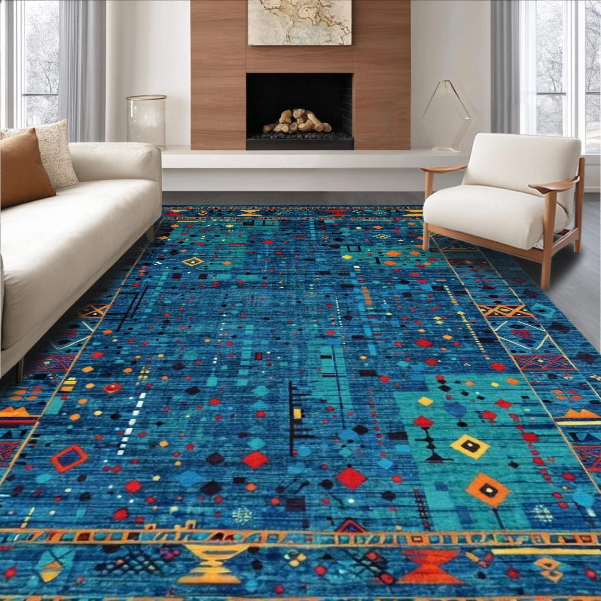 Ultra Soft Area Rug, Non Slip, Stain Resistant, Washable Area Rugs for Living Room, Bedroom, Chic Contemporary Color Splash(Blue) Overview: