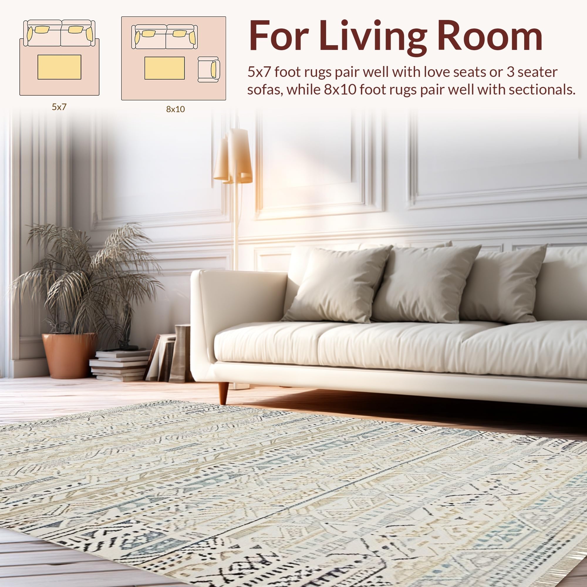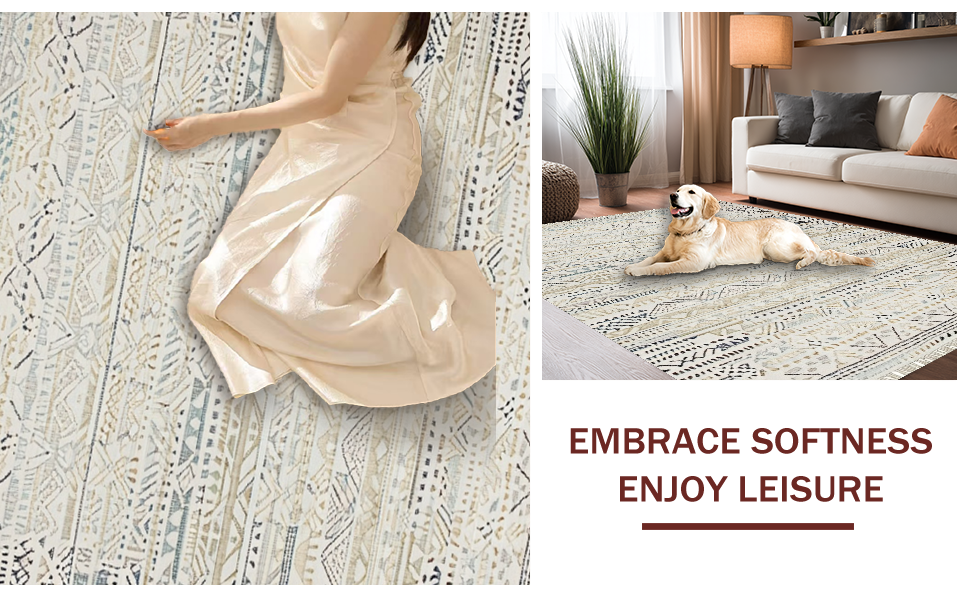 Ultra Soft Area Rug, Non Slip, Stain Resistant, Washable Area Rugs for Living Room, Bedroom, Chic Contemporary Curved Patterns(Beige) Overview: