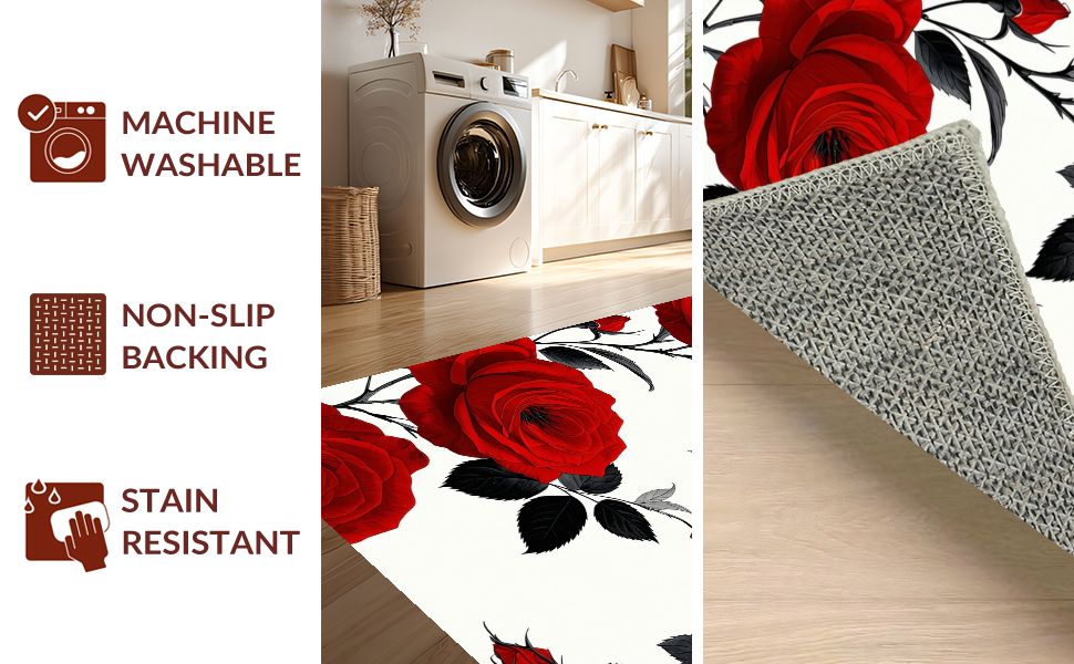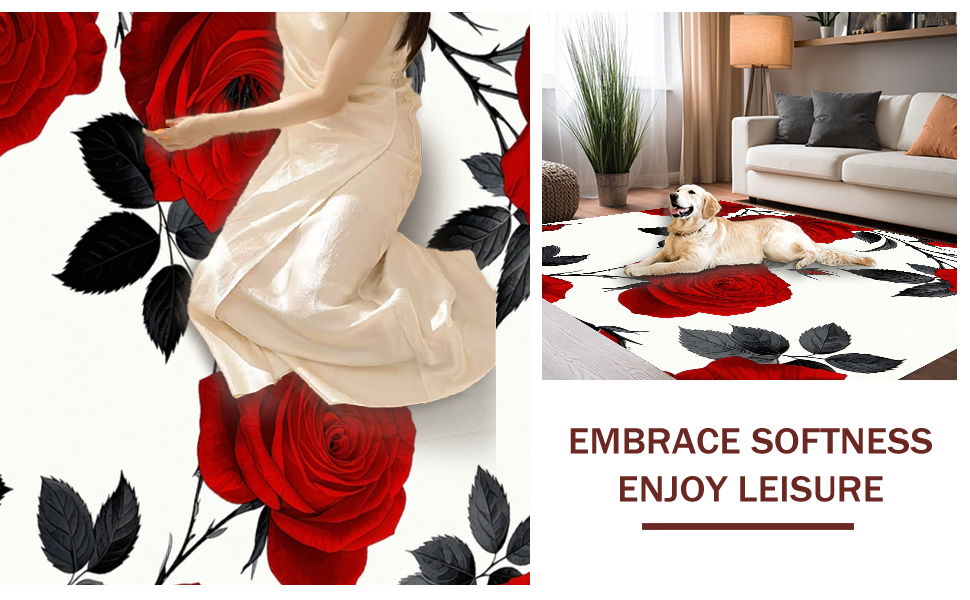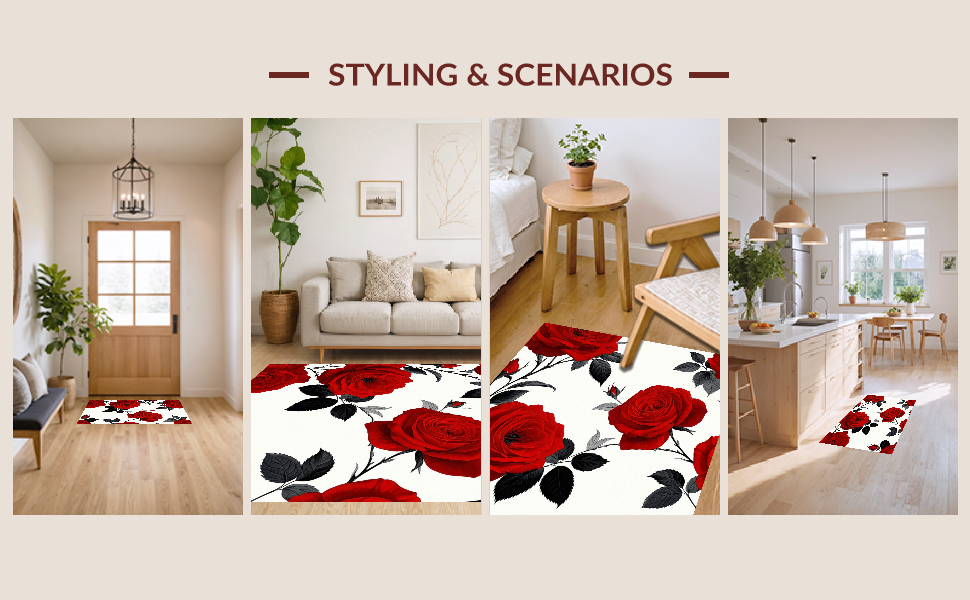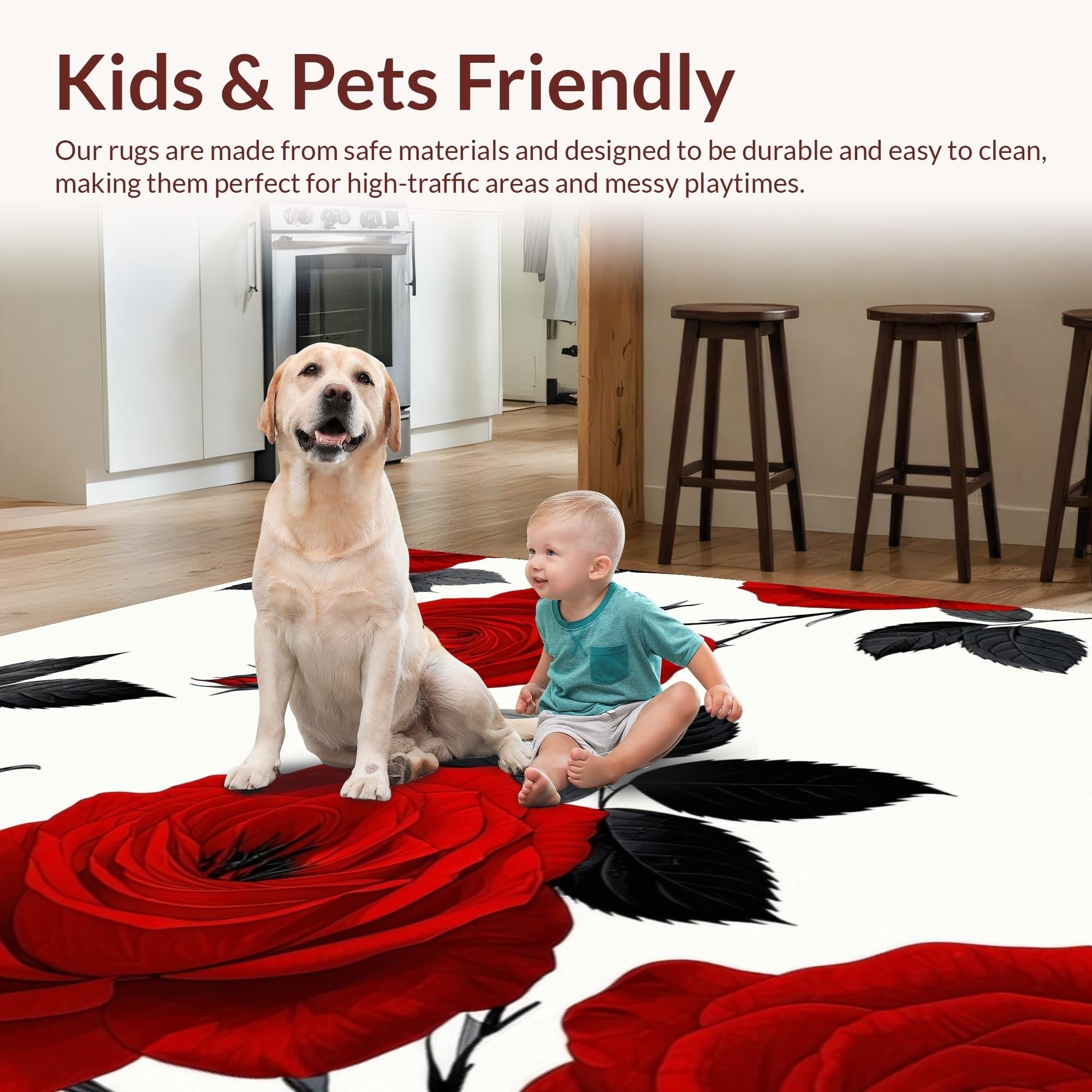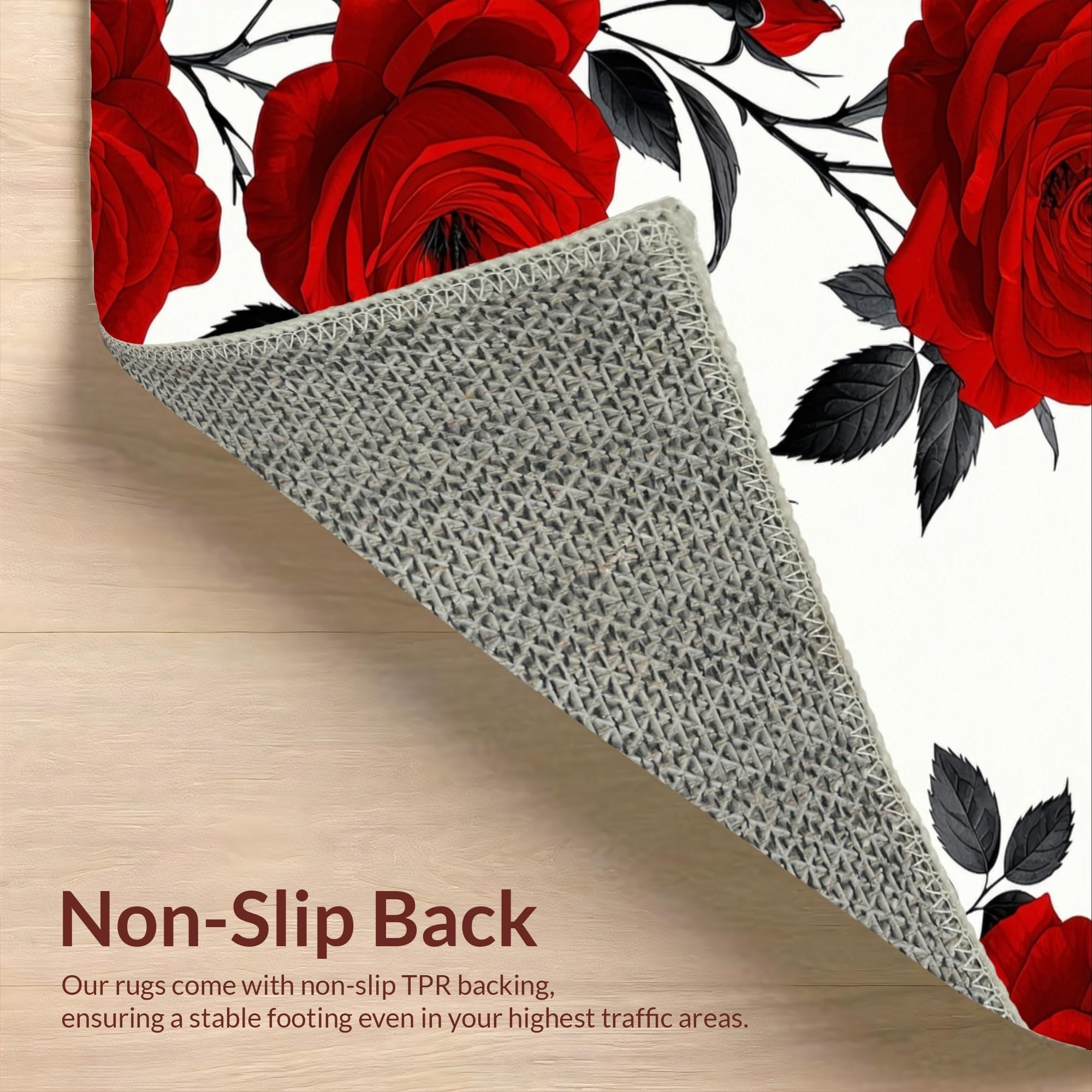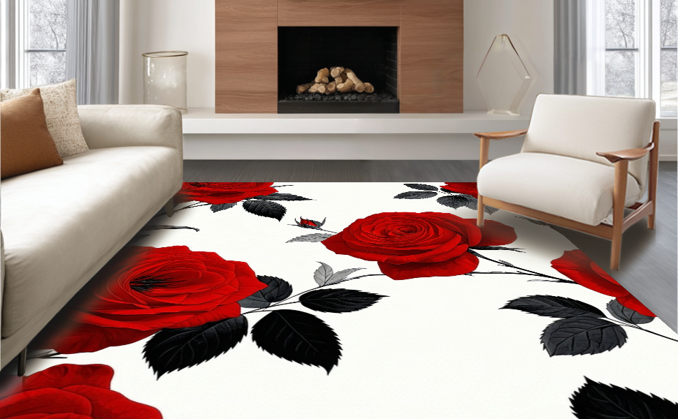 Ultra Soft Area Rug, Non Slip, Stain Resistant, Washable Area Rugs for Living Room, Bedroom, Chic Contemporary Floral Design(Red) Overview: