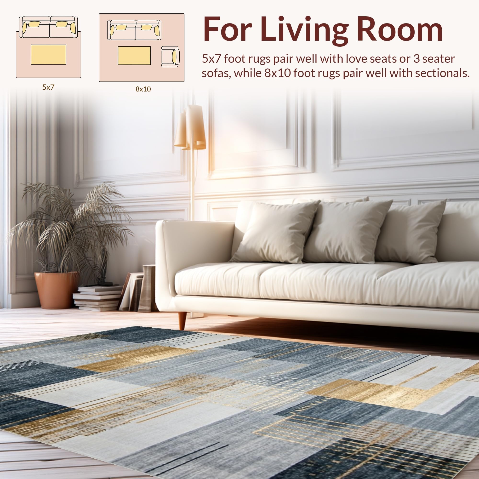Ultra Soft Area Rug, Non Slip, Stain Resistant, Washable Area Rugs for Living Room, Bedroom, Chic Contemporary Patterned Elegance(Gray) Overview: