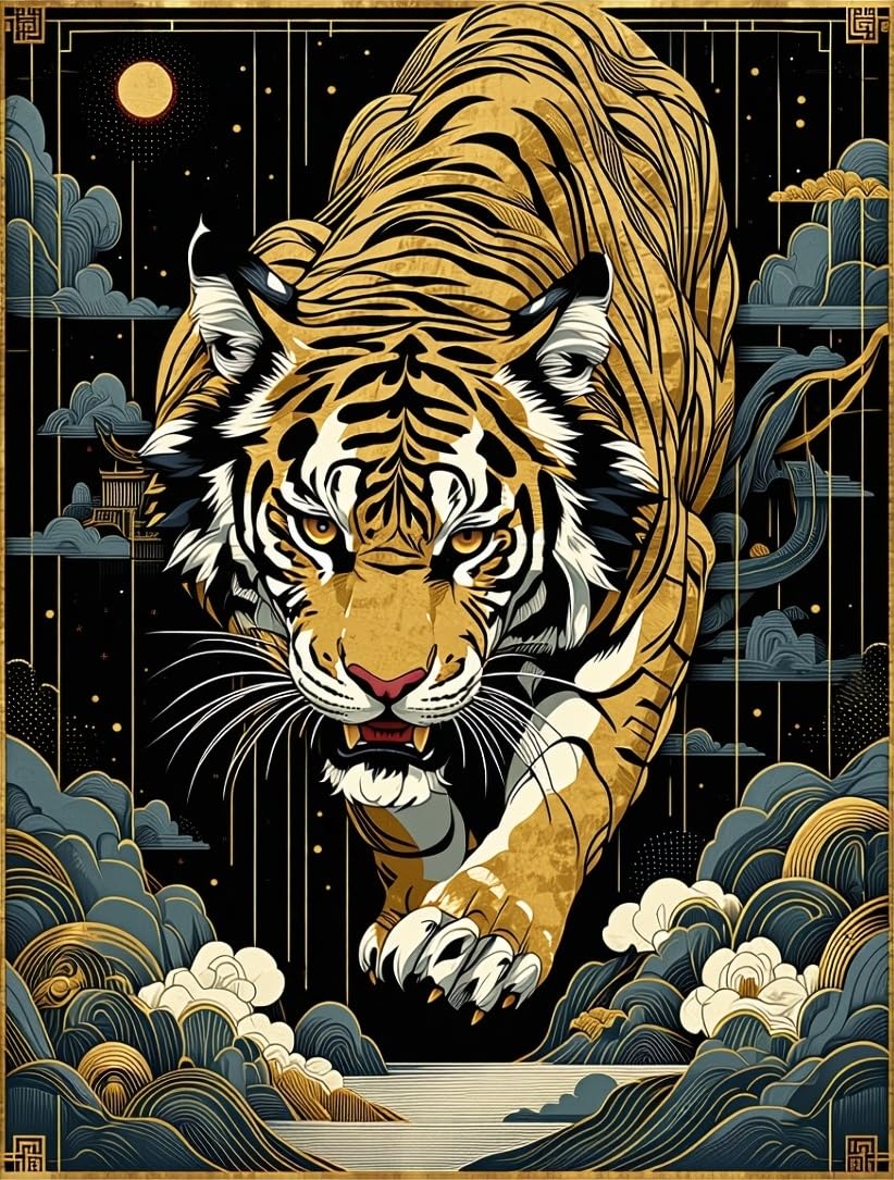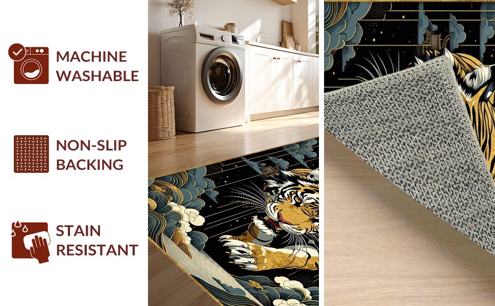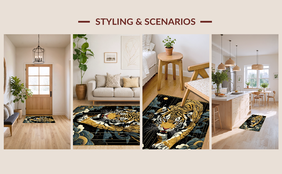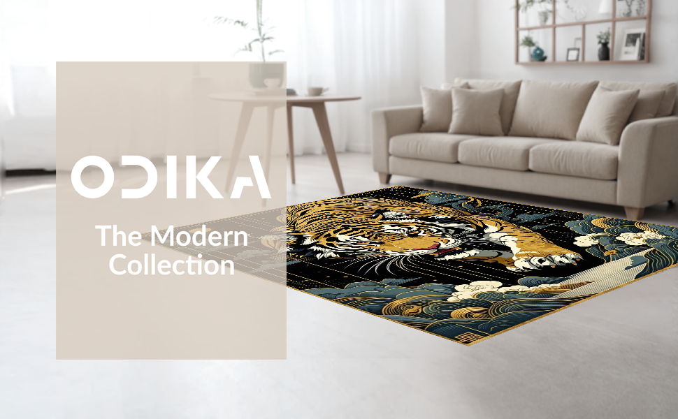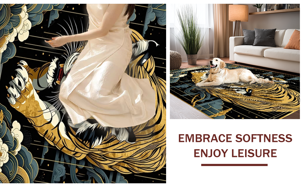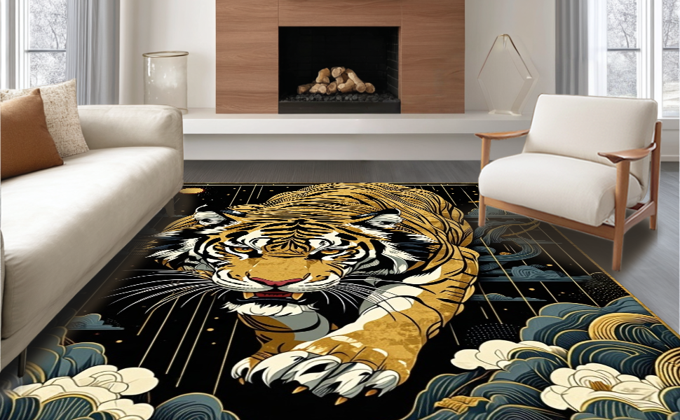 Ultra Soft Area Rug, Non Slip, Stain Resistant, Washable Area Rugs for Living Room, Bedroom, Chic Contemporary Tiger Theme(Gold) Overview: