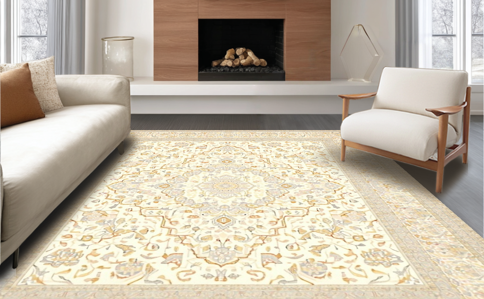 Ultra Soft Area Rug, Non Slip, Stain Resistant, Washable Area Rugs for Living Room, Bedroom, Chic Cream Lattice Arrangement(Beige) Overview: