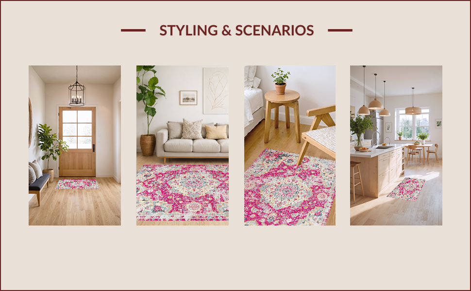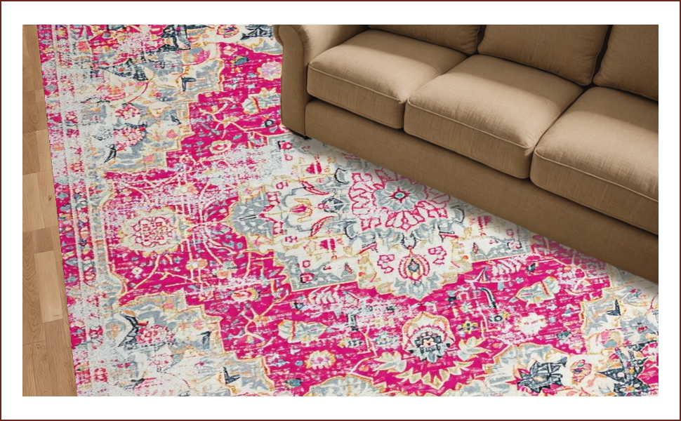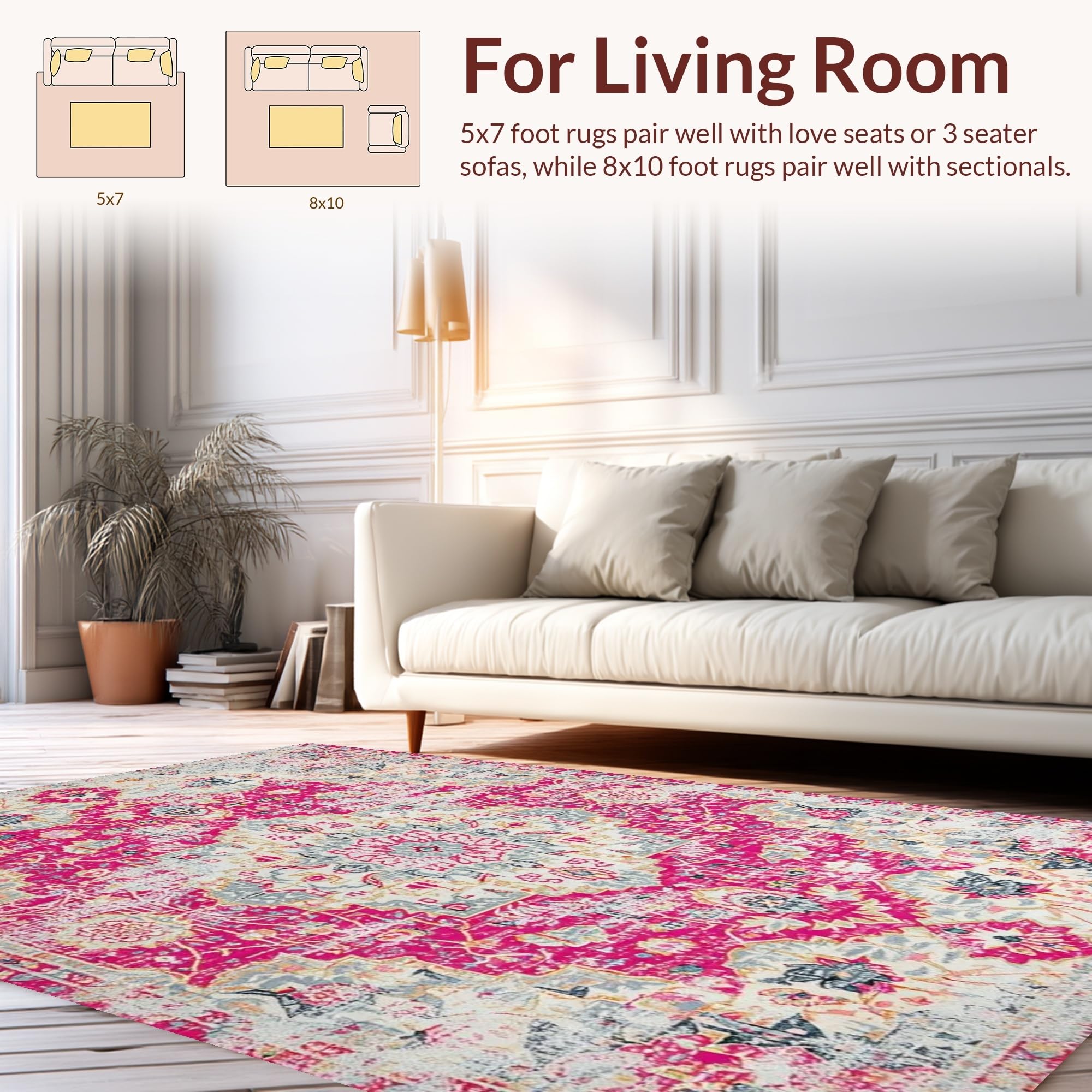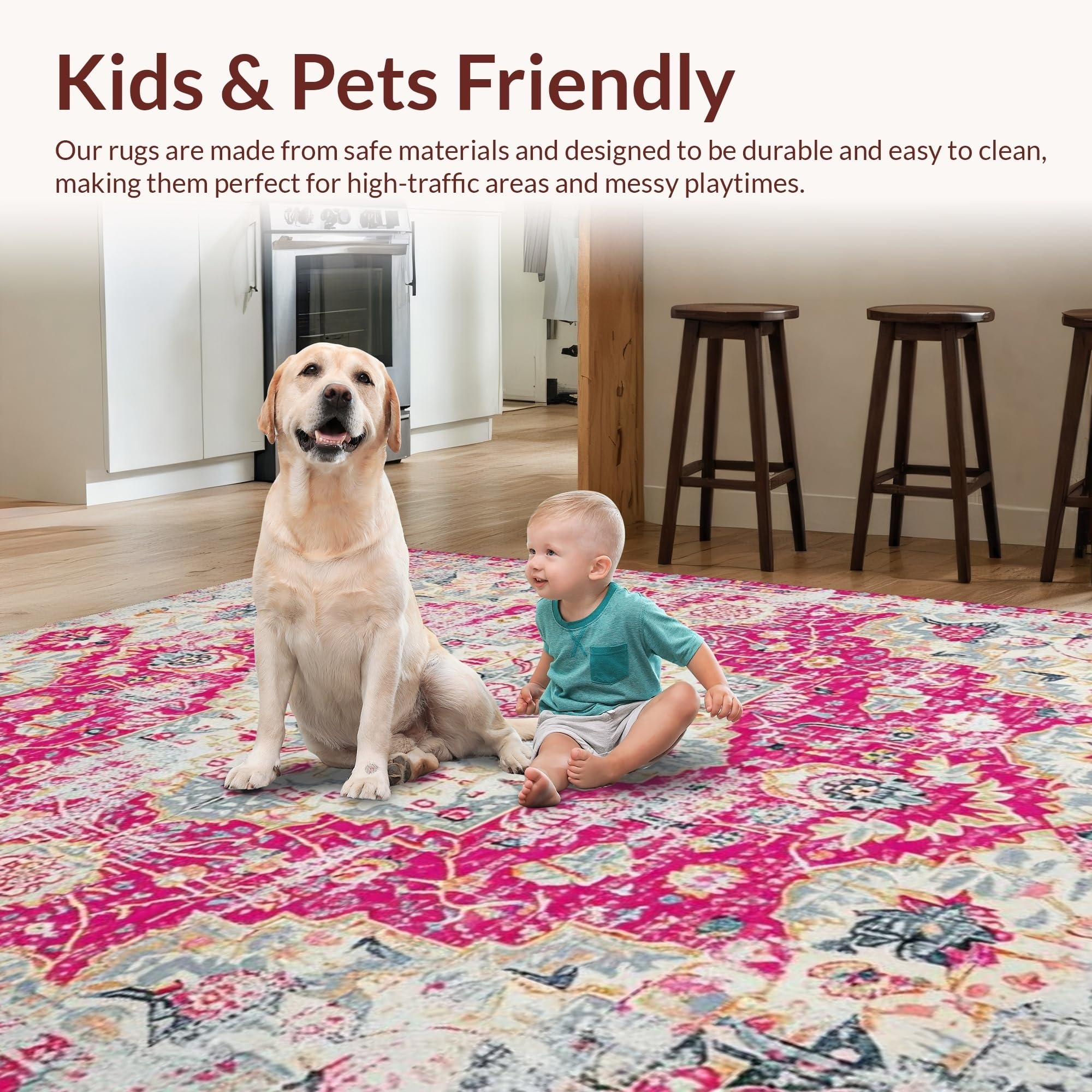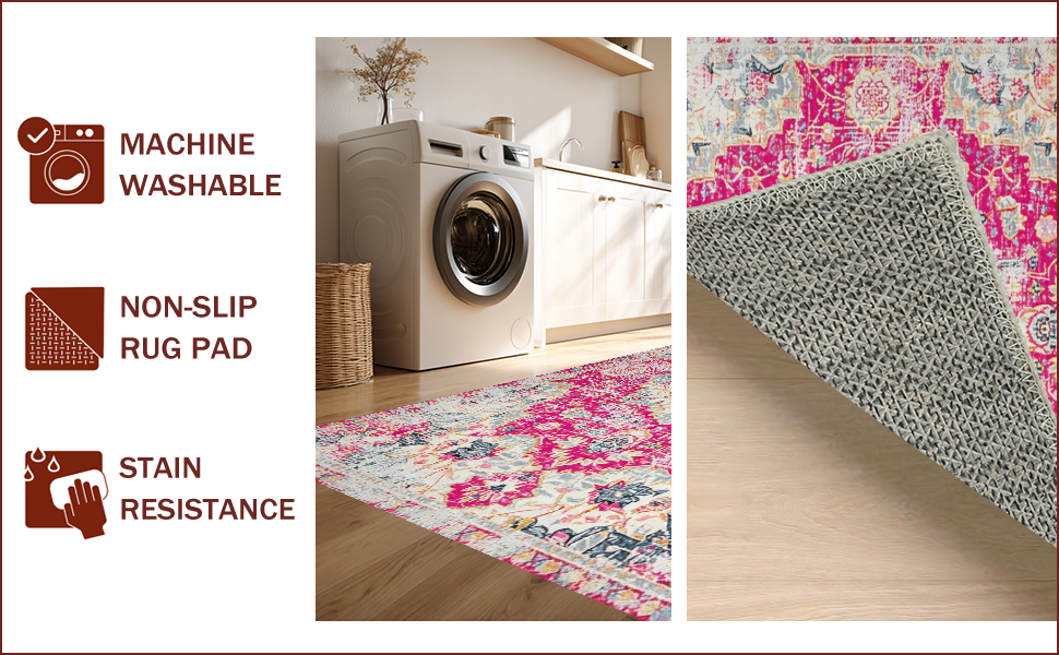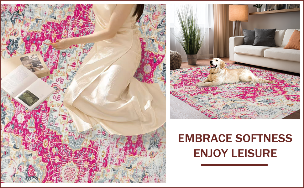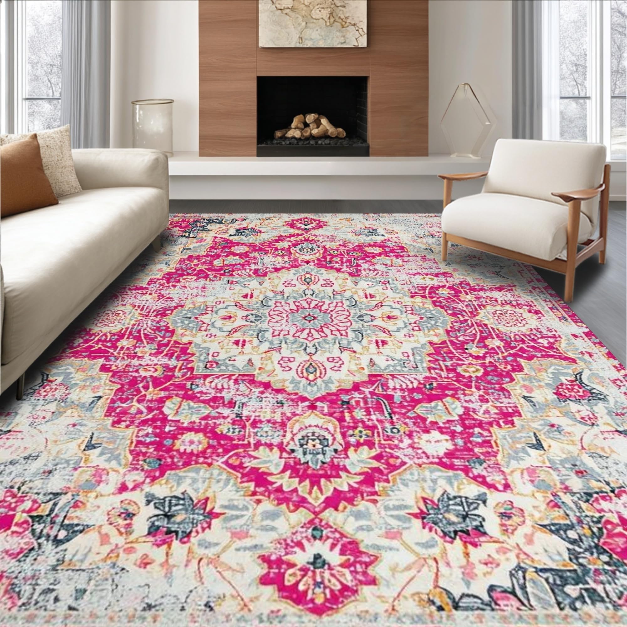 Ultra Soft Area Rug, Non Slip, Stain Resistant, Washable Area Rugs for Living Room, Bedroom, Chic Distressed Abstract Motif(Pink) Overview: